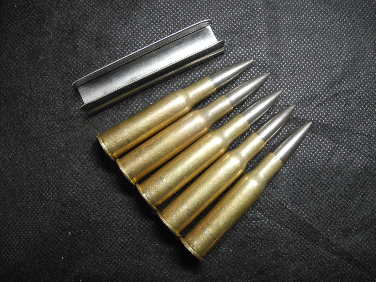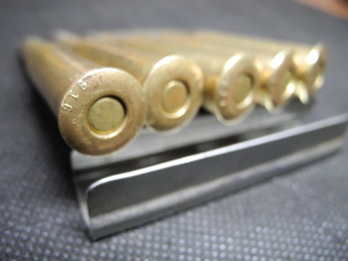 Представляются вашему вниманию макеты патронов 7,62х54R с мельхиоровой пулей образца 1908 года, в оригинальной поздней обойме.