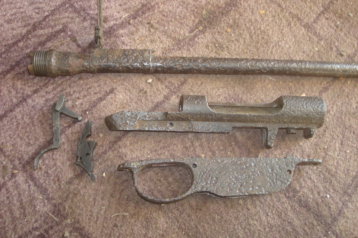 Некомплект, все резьбы рабочие. Внутри винты просматриваются хорошо, патронник без глубоких раковин. Проверить, понятно, не на чем. Где-то еще пара болтиков от подавателя магазинной коробки. Найду, докину в лот.