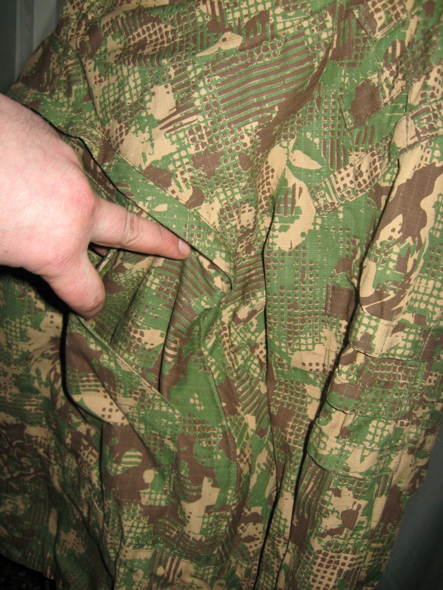 выполнен раздельно и состоит из просторных штанов и камуфляжной куртки-рубахи. Его можно надевать как поверх основной летней формы, так и вместо неё в особо жаркие дни.