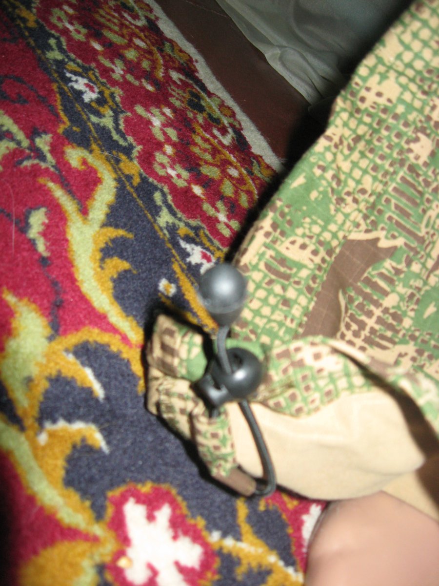 Куртка из ткани рип-стоп оснащена горизонтальной змейкой для лёгкого доступа к внутреннему слою формы. Просторный капюшон частично закрывает лицо, что очень позитивно сказывается на общих маскировочных свойствах данного костюма. При необходимости капюшон легко регулируется под анатомические особенности конкретного бойца (по высоте, охвату). Чтобы полностью открыть лицо можно расстегнуть дополнительные пуговицы на подбородке. На плечах предусмотрены планки интерфейса MOLLE. Штаны просторного кроя на удобной затяжке в районе пояса и резинках снизу.