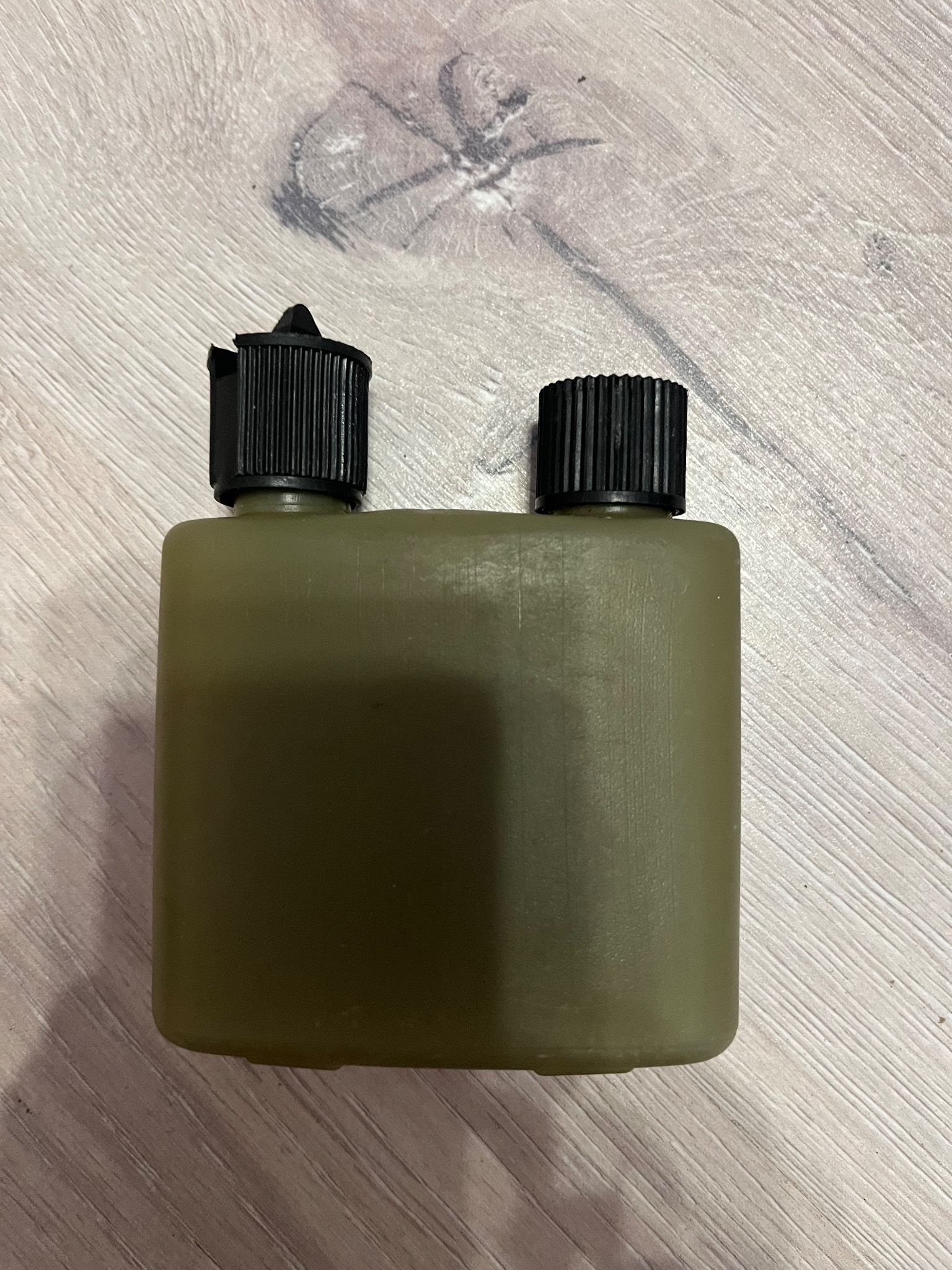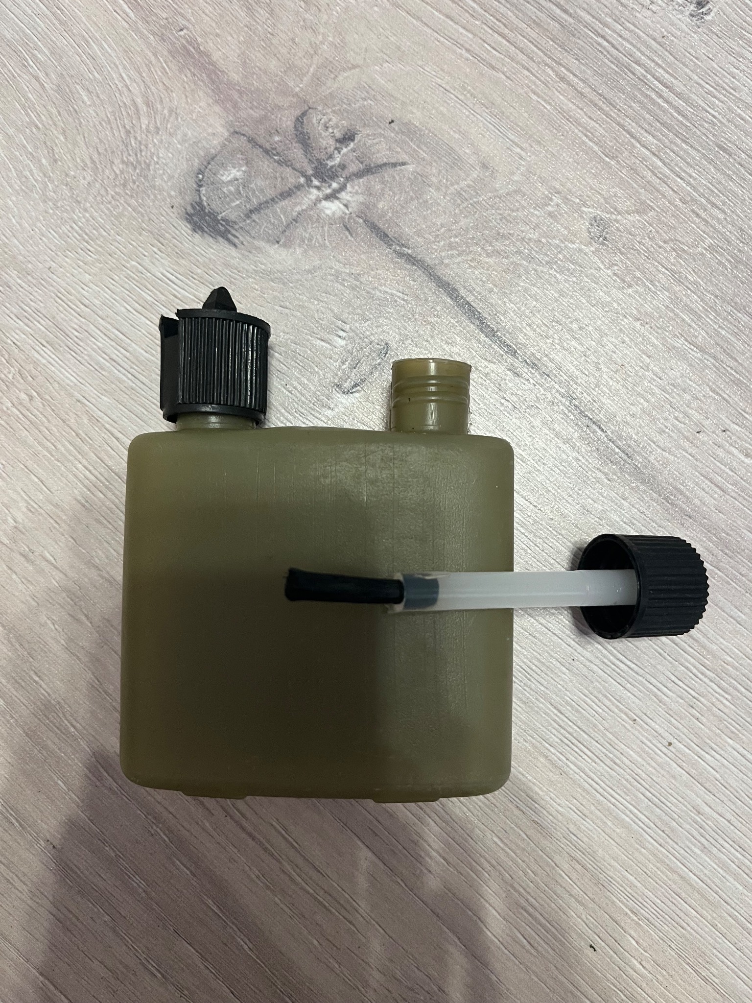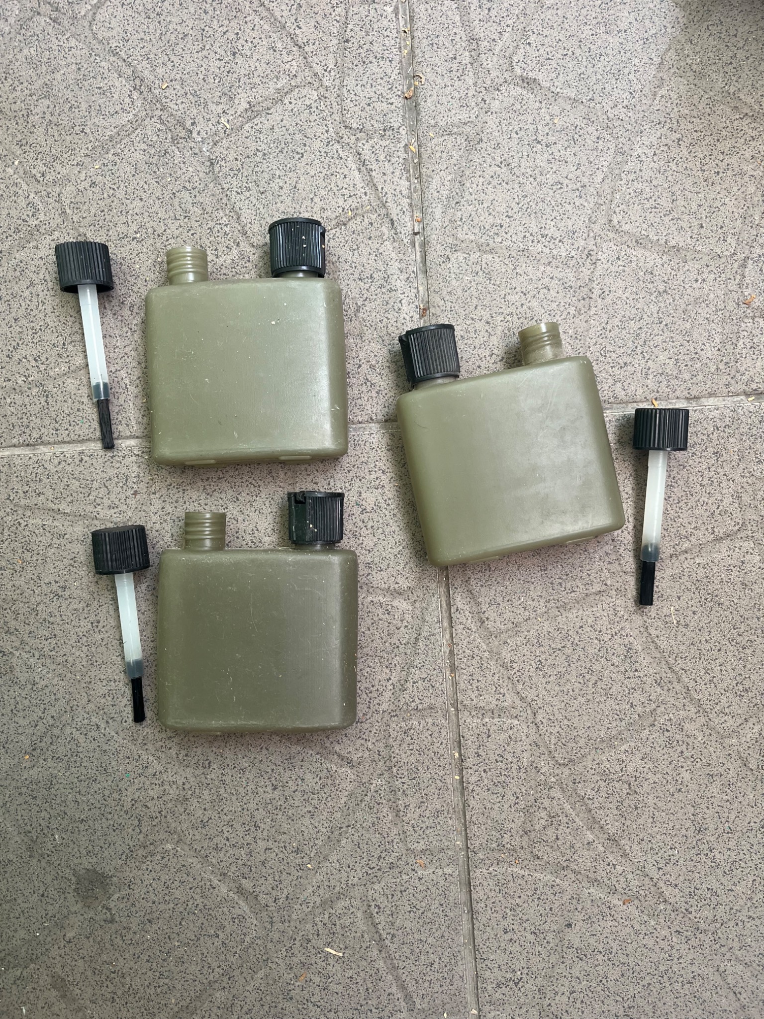 Масленка из оригинального набора для чистки оружия ВС Великобритании. В одной из крышек стоит дозатор подачи масла, в другой кисточка.
