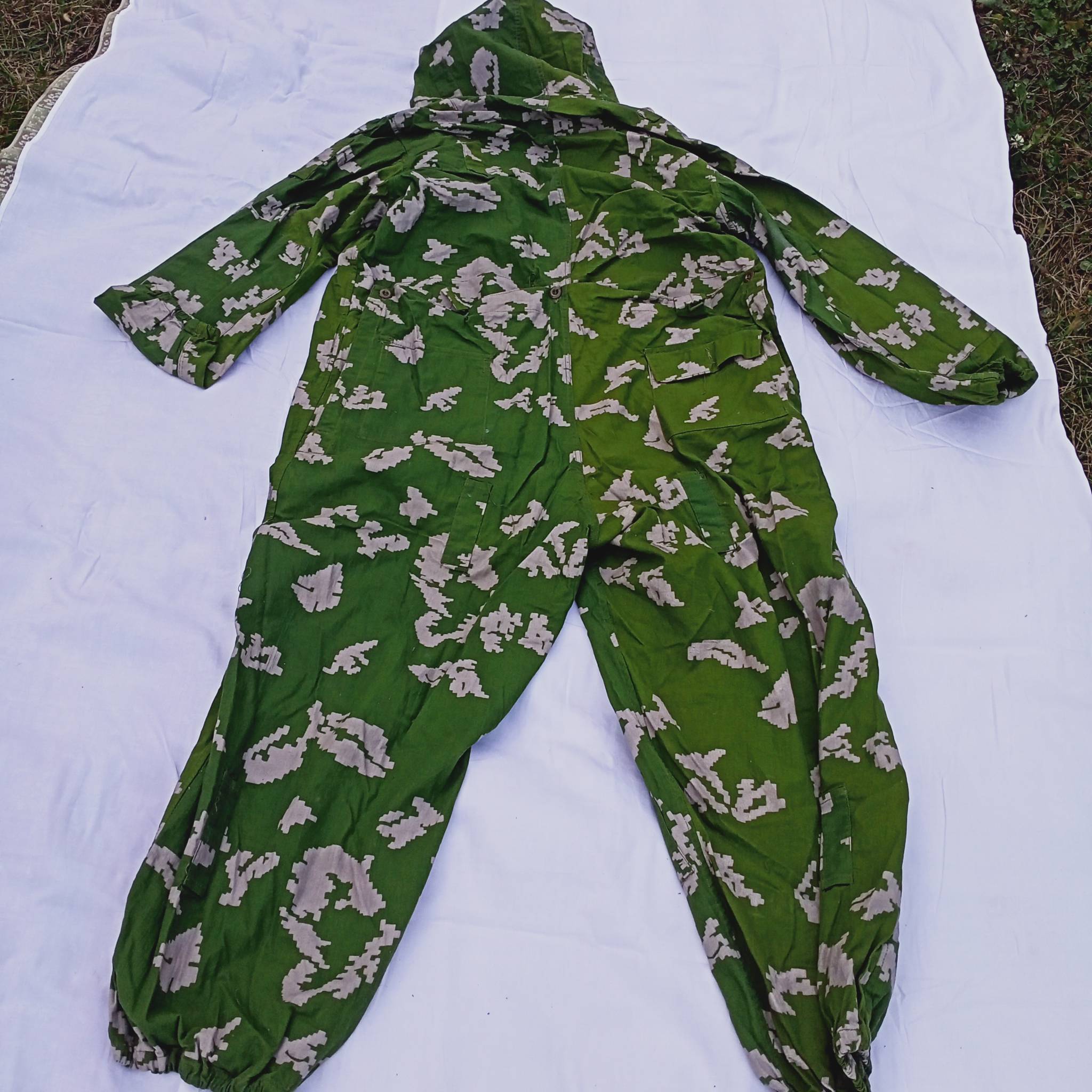 - комбинезон двухсторонний (яркий цвет для маскировки днём, и внутренняя бледная сторона для ночной маскировки);