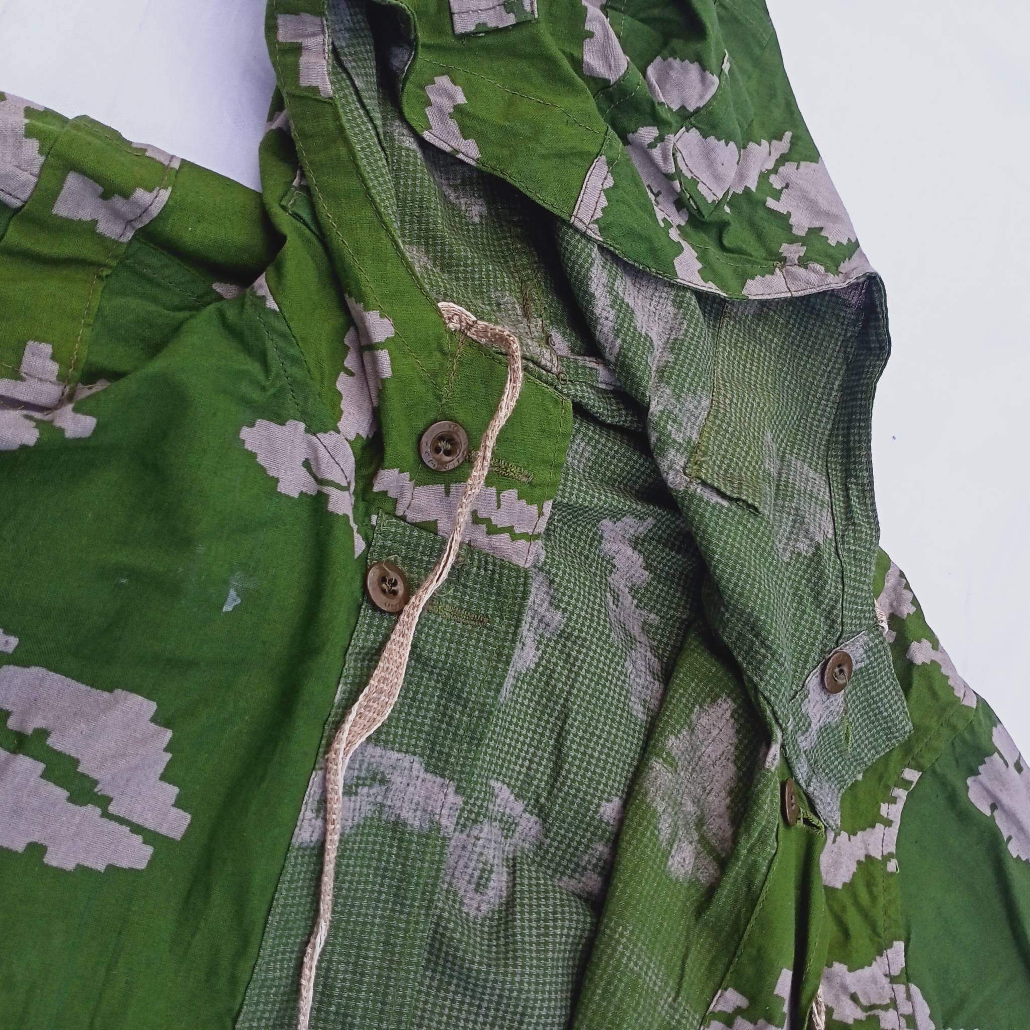 Оригинальный, двухсторонний, маскировочный комбинезон "Березка" использовался в советской армии. Материал комбинезона - 100% хлопок. Такой комбинезон можно стирать в машинке при низкой температуре. Костюм легкий, хорошо пропускает воздух, сохраняя температуру тела оптимальной. Замечательно справится с защитной функцией, маскировочной, а также в качестве удобного и очень практичного одеяния при времяпровождении на природе.