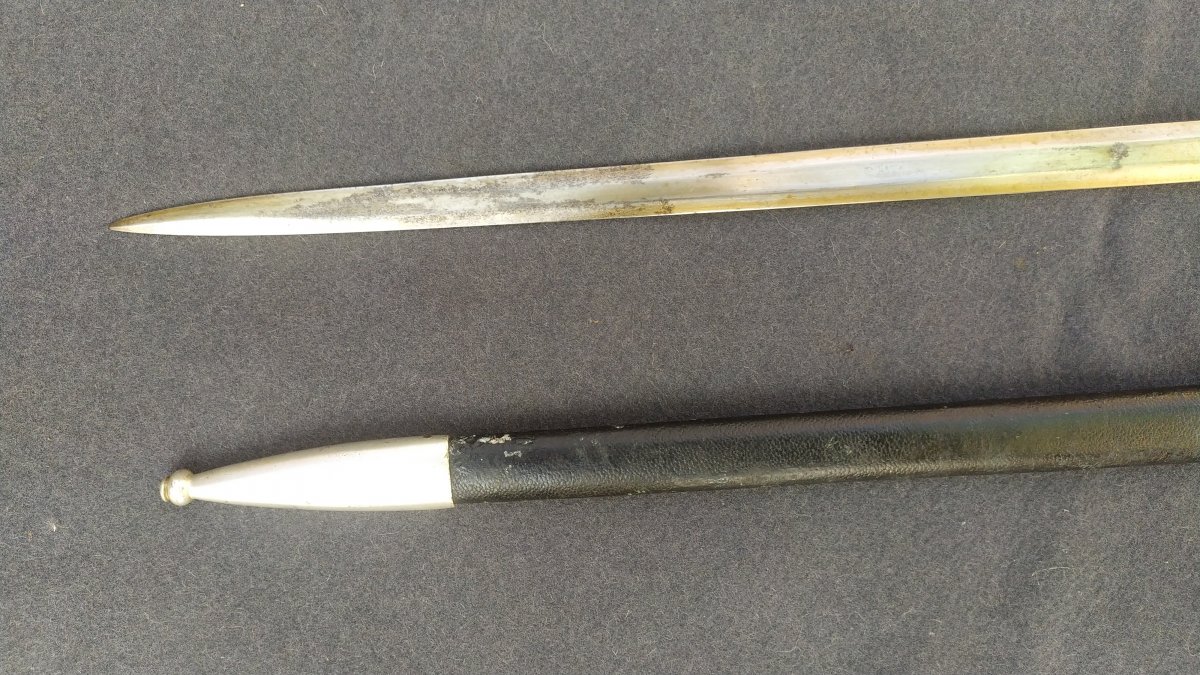 Второй вариант.Без вмешательств и реставраций.Неклейменный.Все в родном сборе.На стакане ножен отсутствует один болтик .Алюминиевая часть подвеса тоже есть в наличии.