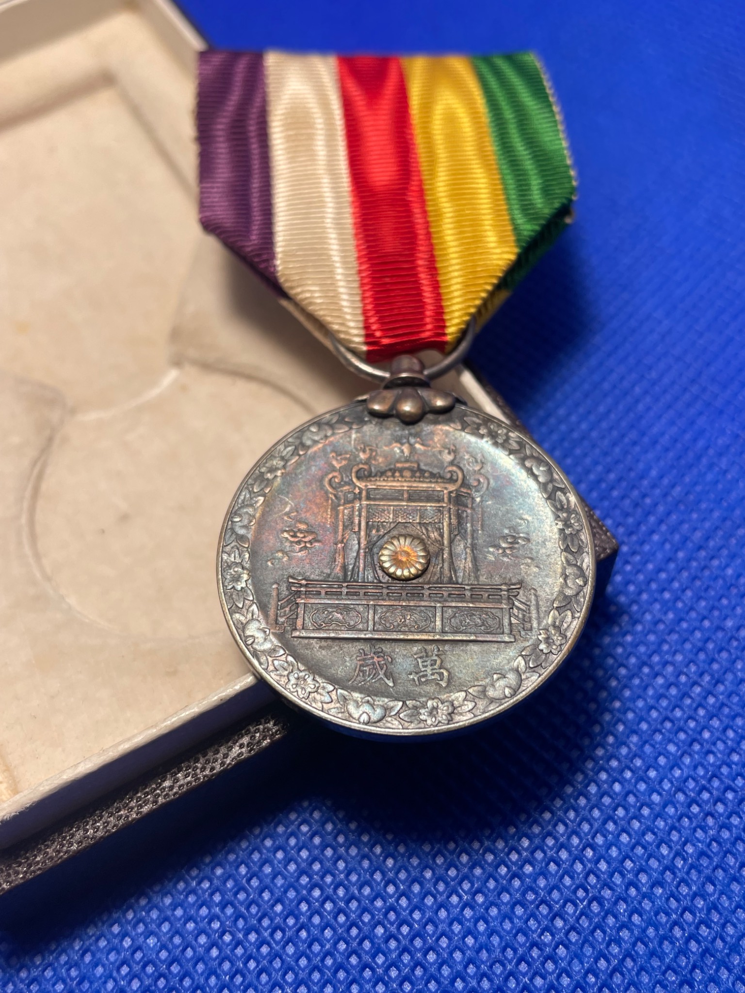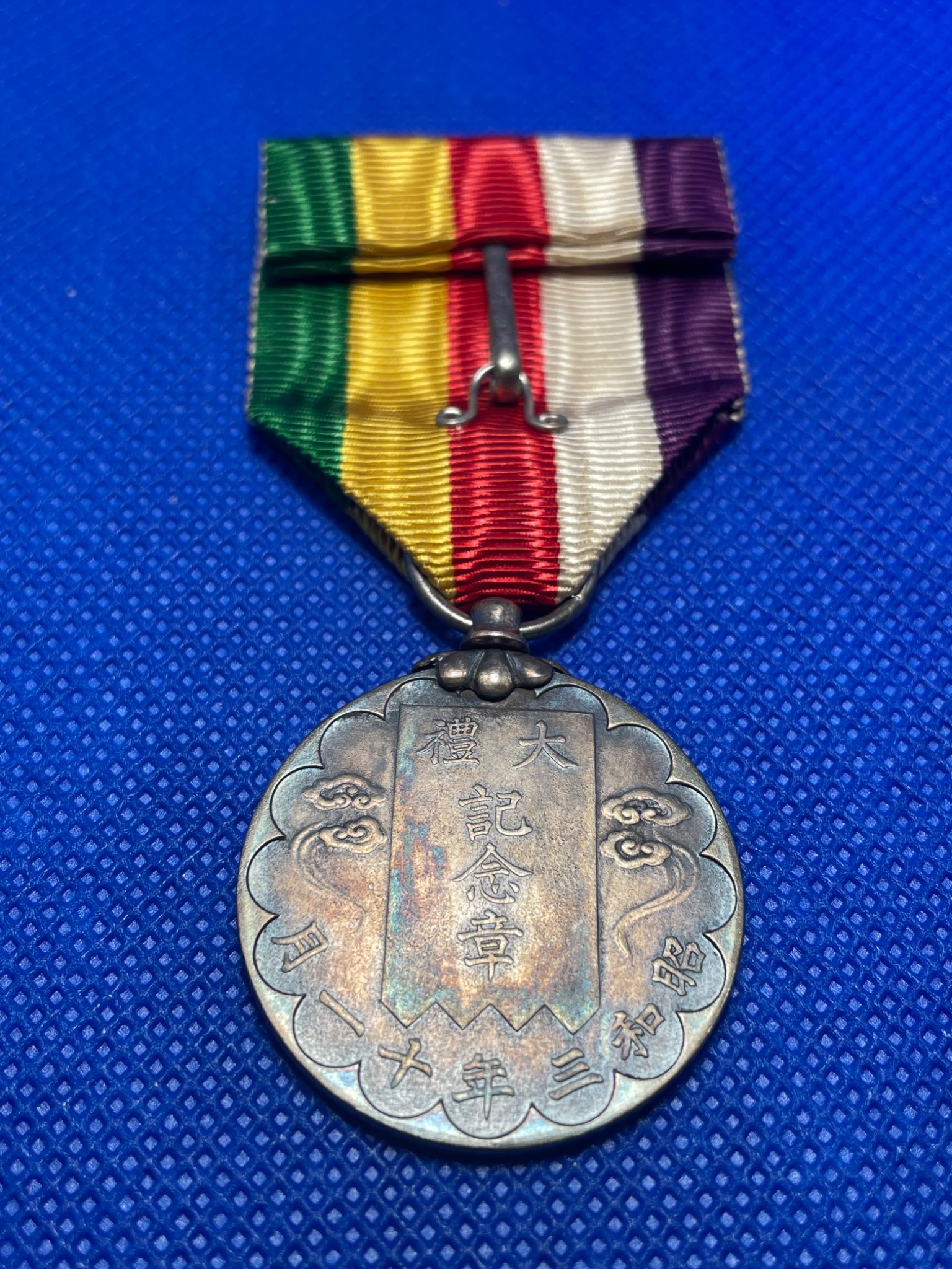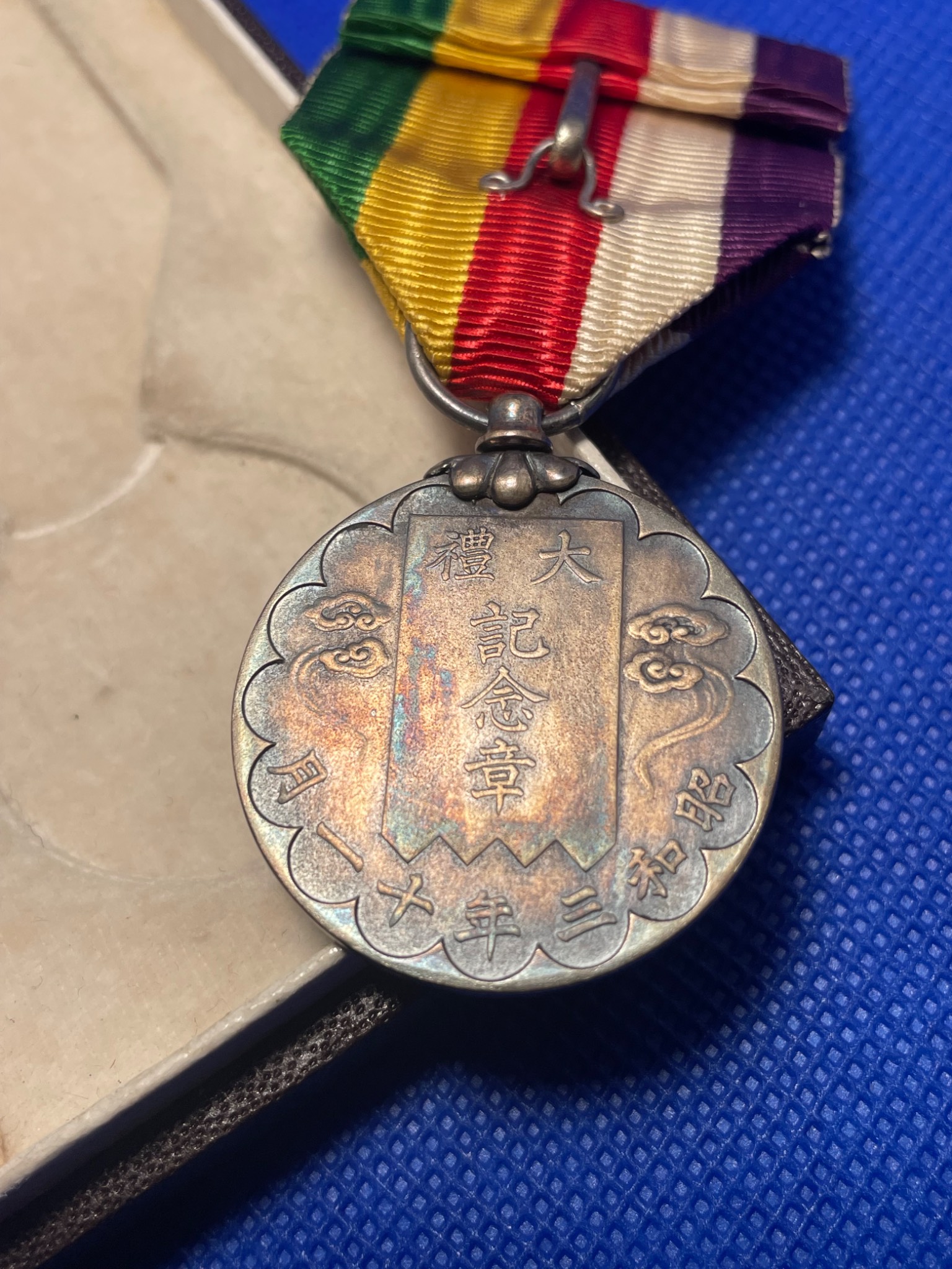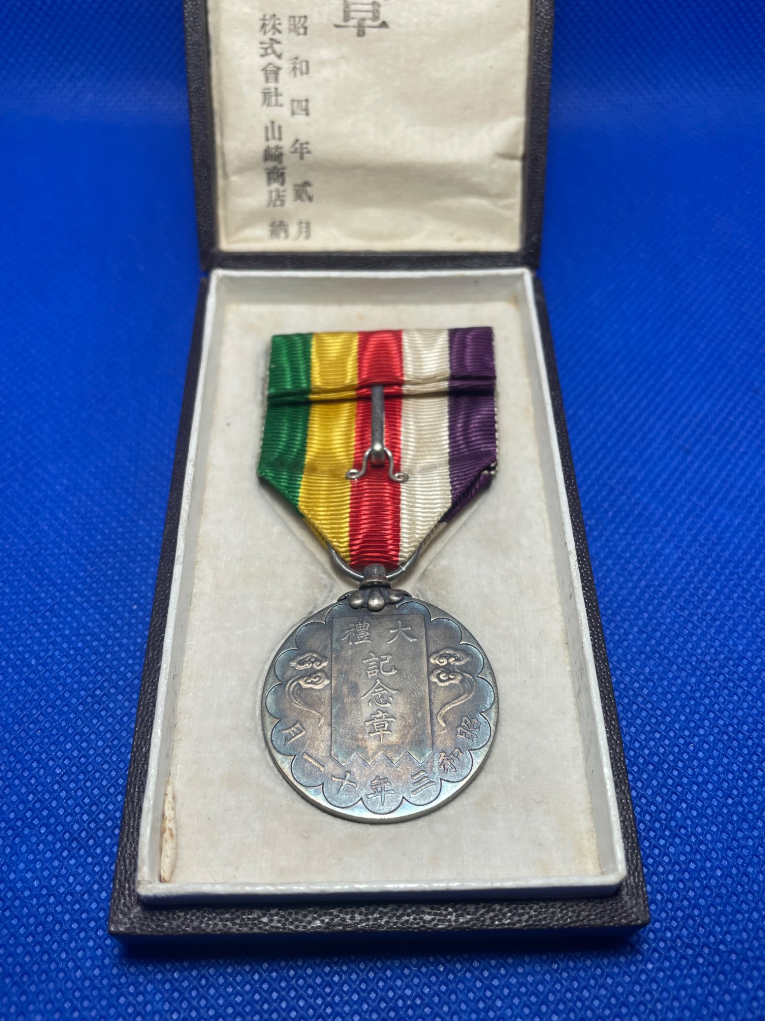 Японія. Медаль інтронізації імператора Хірохіто. 1 серпня 1928 рік. Матеріал: срібло 950. Діаметр: 30 мм. Колекційний екземпляр в чудовій патині. Оригінальний футляр в стані ЛЮКС.