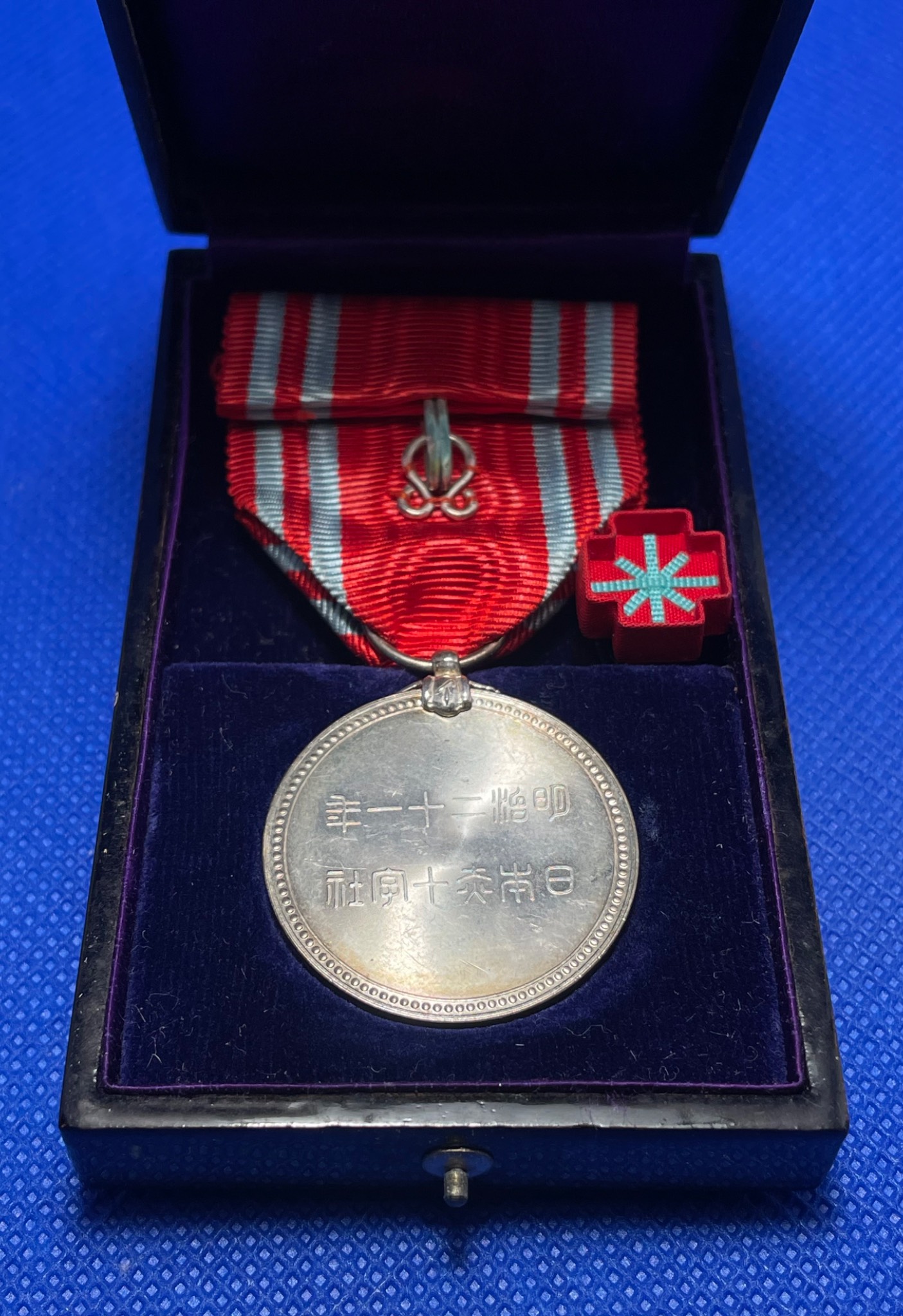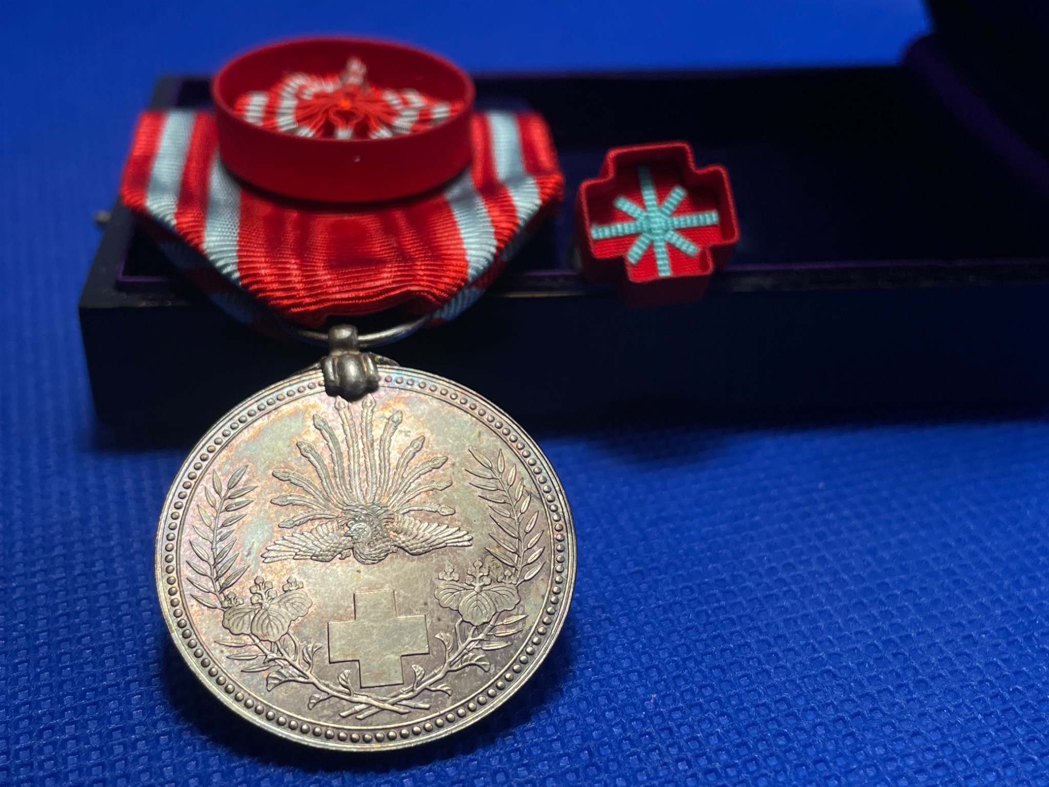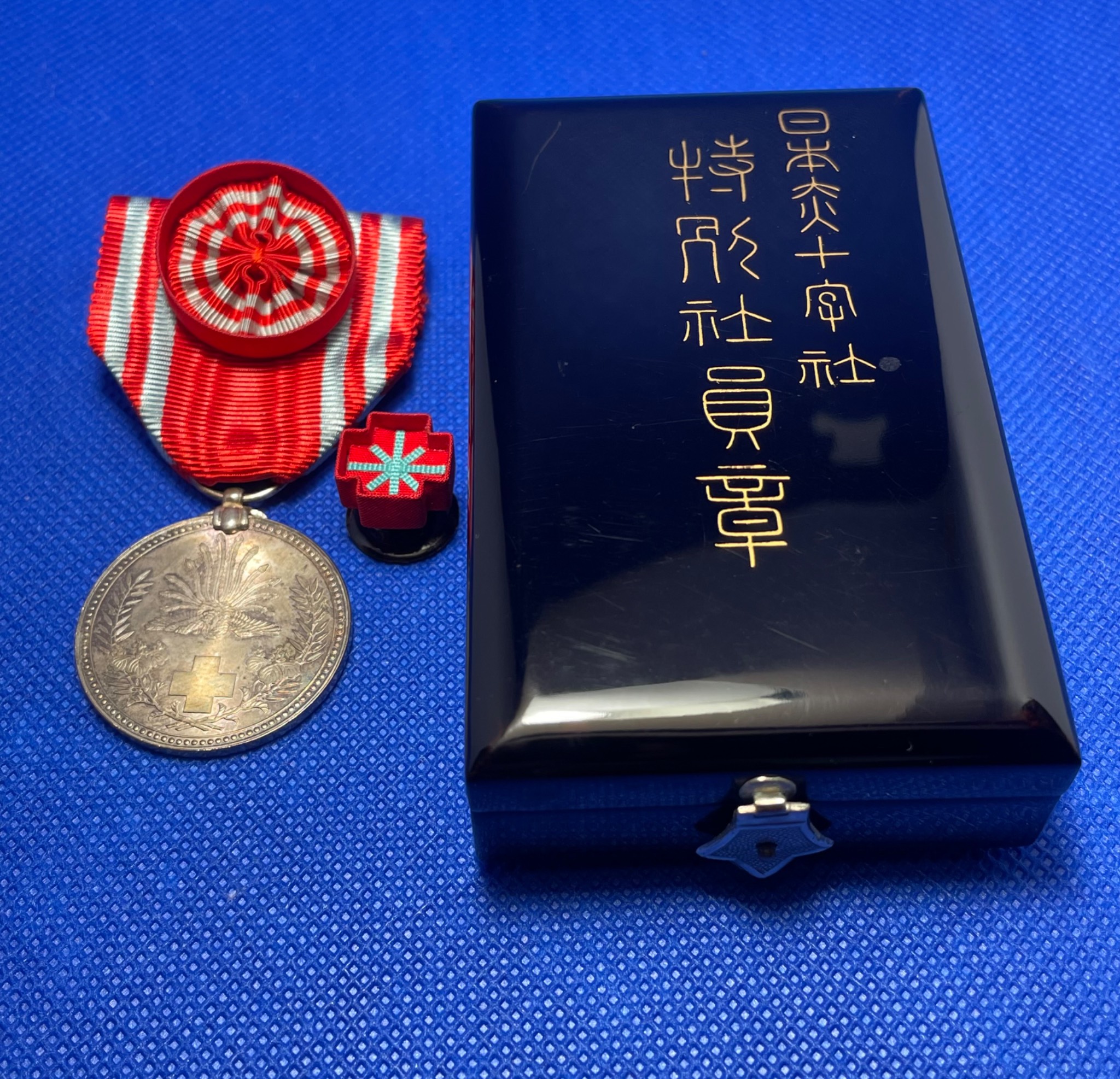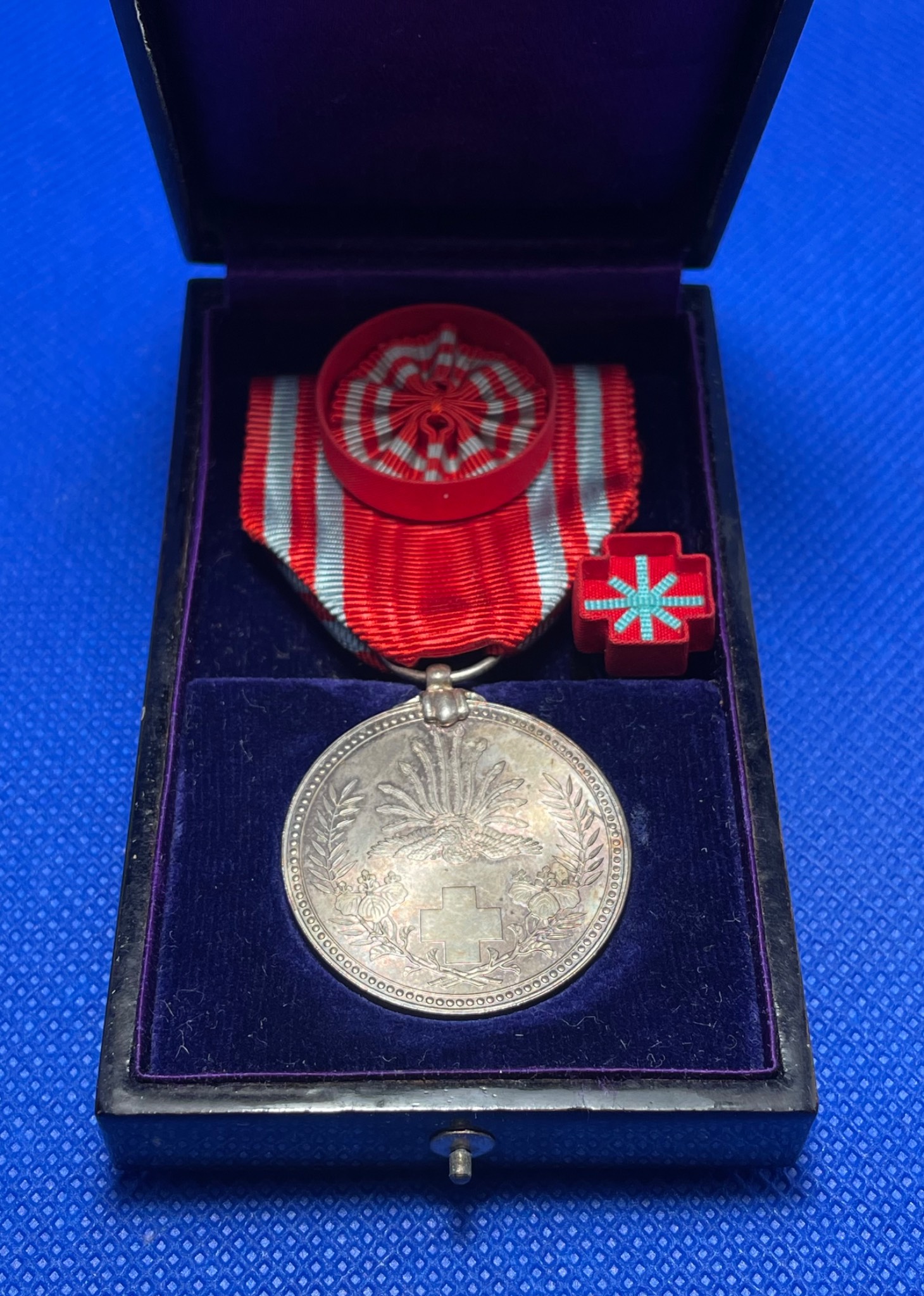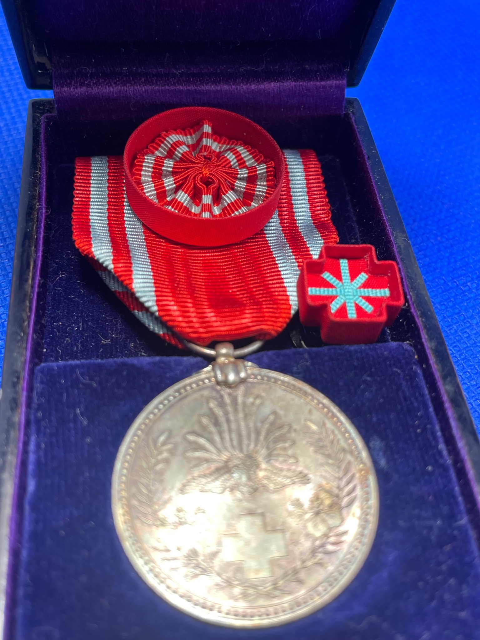 Японія. Медаль почесного члена товариства Червоного хреста Японії. Гарний комплект в нечастому футлярі урусі. Срібло 950.