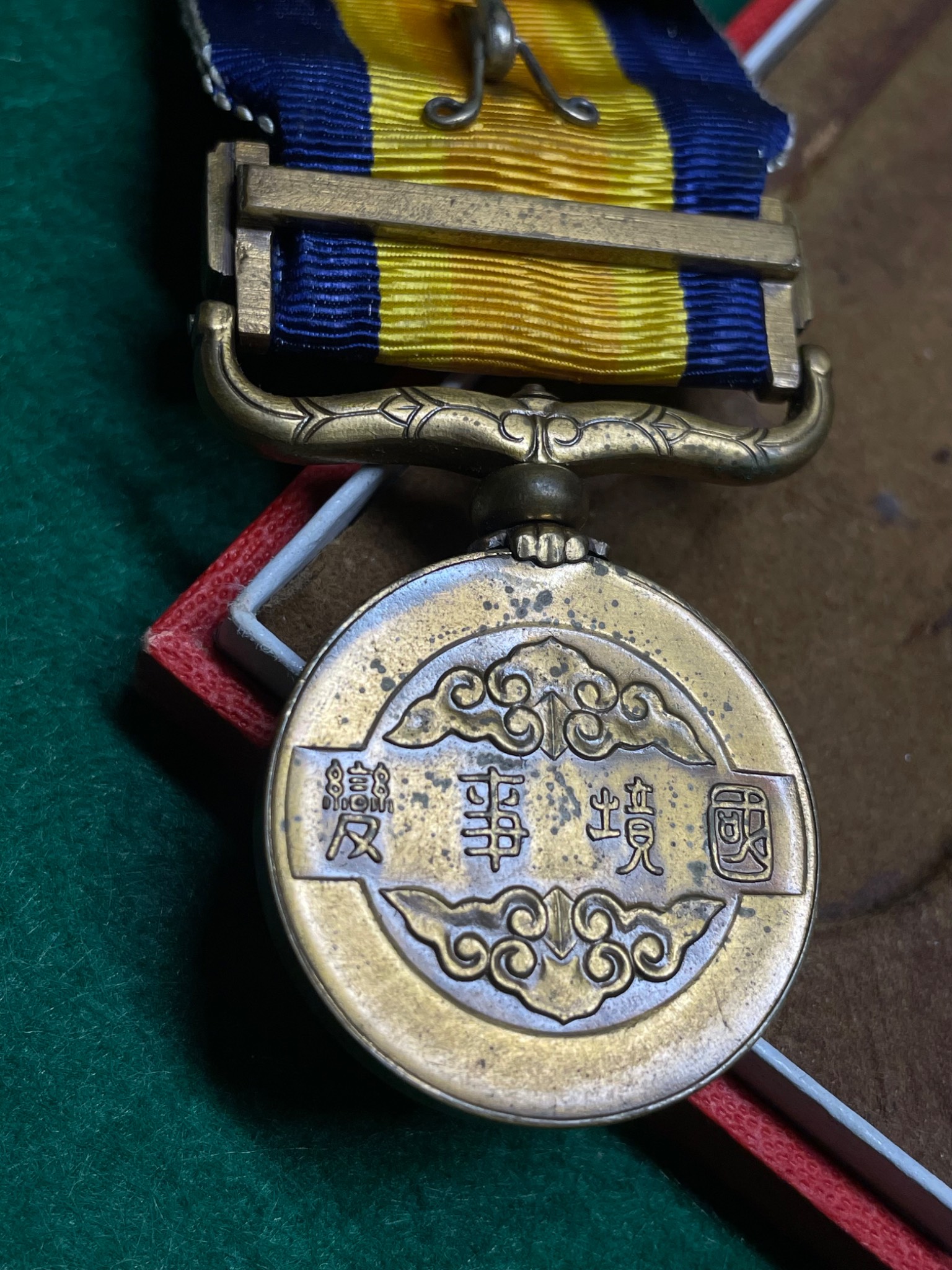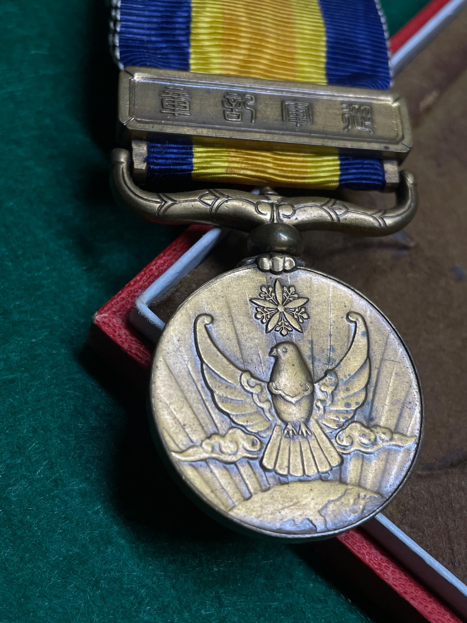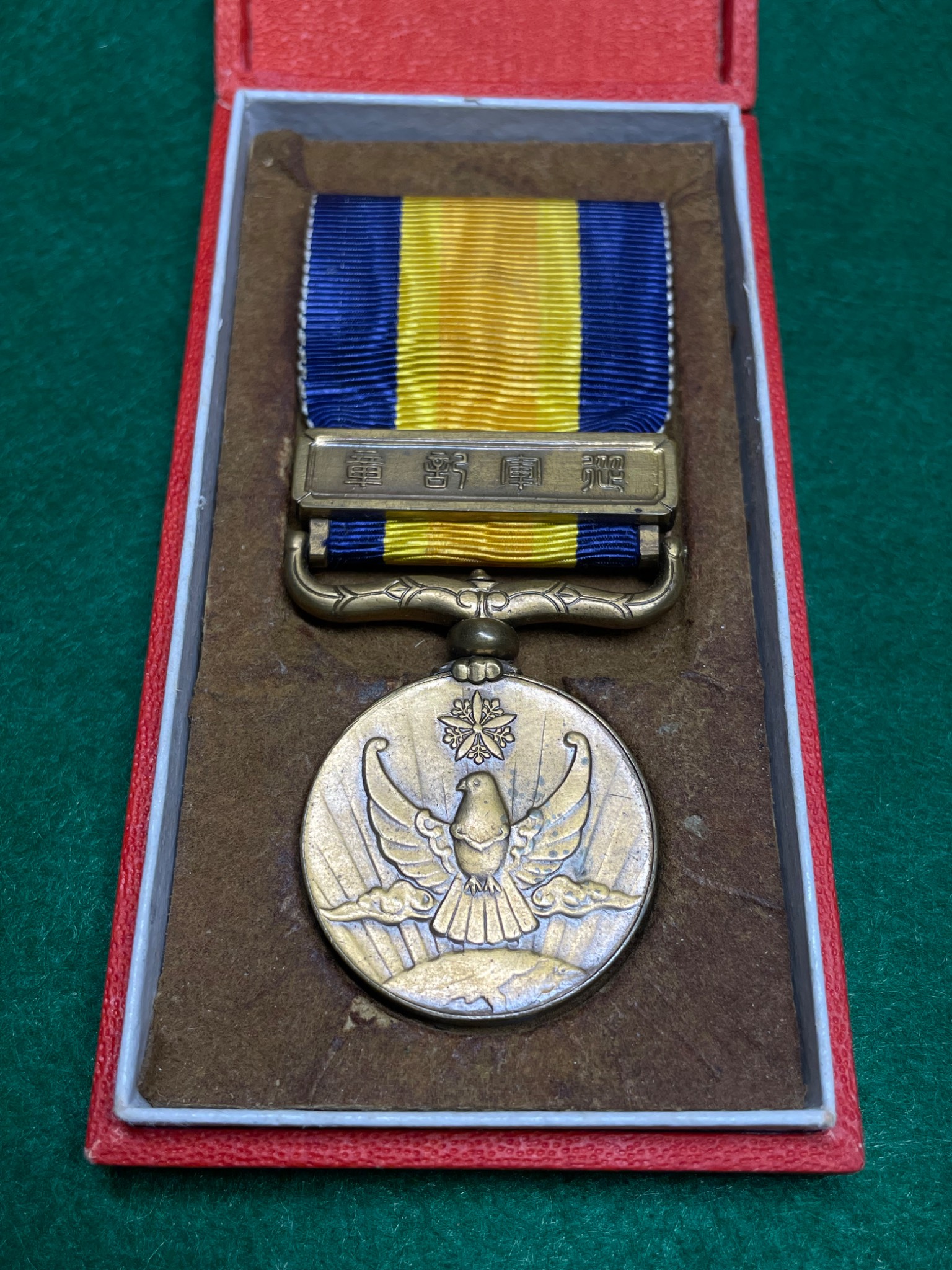 Японія. Медаль «За Номохан». Заснована 5 листопада 1940 року на згадку про бої з монгольськими та радянськими військами на Халкін-Голі в період з травня по вересень 1939 року. Виконана з латуні з шарнірною підвіскою та планкою. Варіант «товстий голуб». Чудове доповнення до вашої колекції.