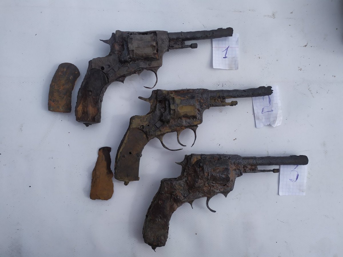 Вымочены в воде и очищены сверху механически от толстого слоя ржавчины. Внутри не чищено.Механизмы не разбирались. Смазаны маслом во избежание дальнейшей коррозии. Деактив временем.