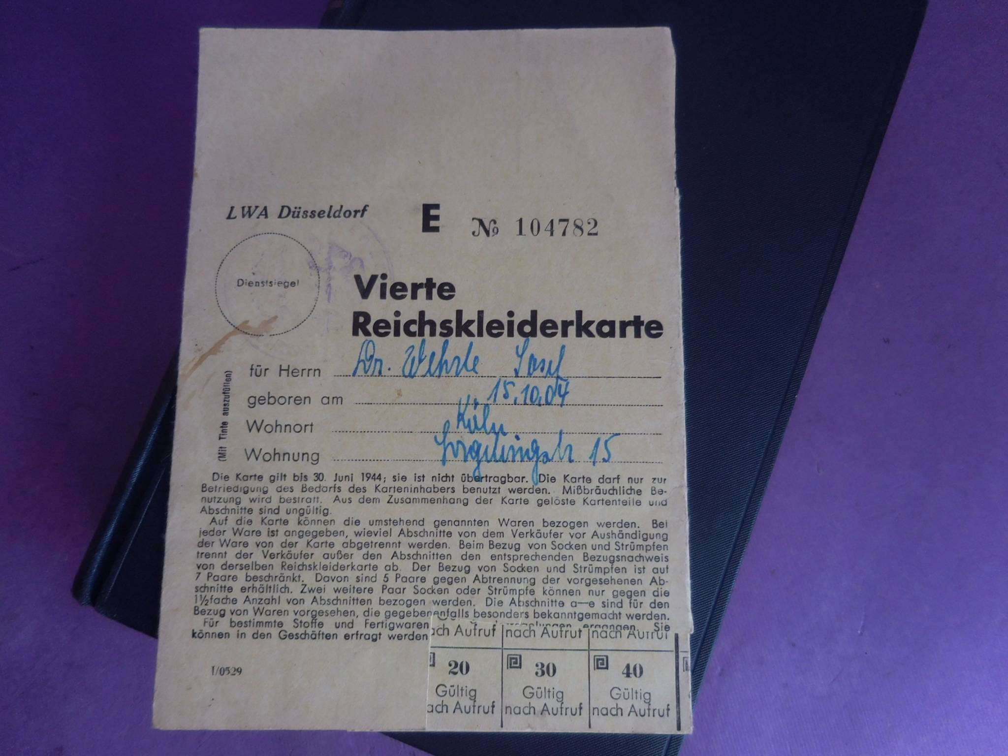 була видана Доктору Йозефу ВЕРЛЕ, 15.10.04 р.н.