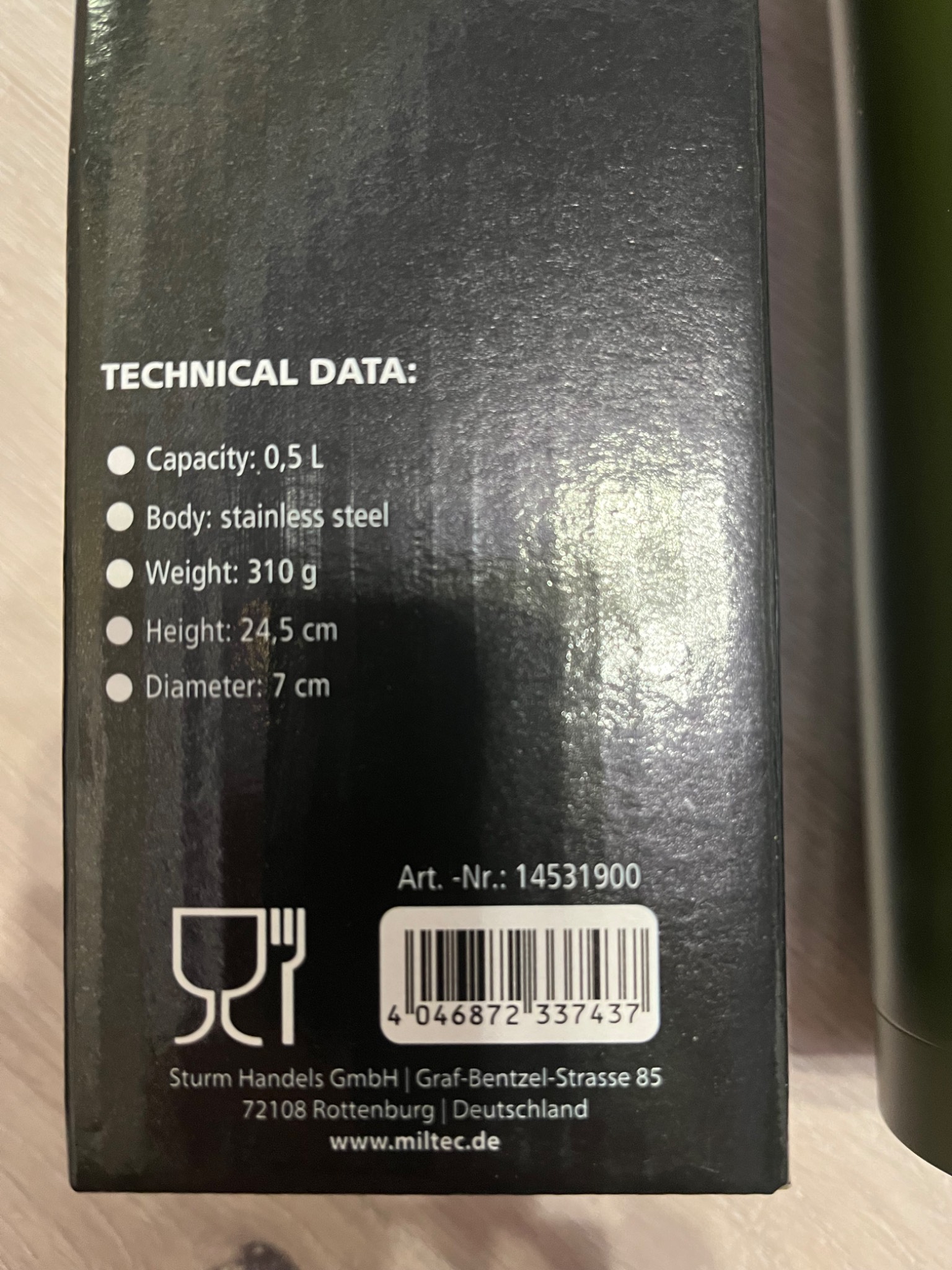 Mil-Tec - Термос из нержавеющей стали - 0,5 л - зеленый OD - 14531900 (в наявності 8 шт.)