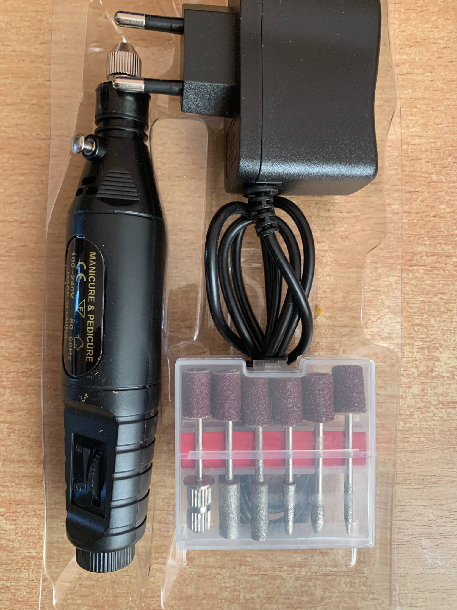 У комплекті йдуть:фрезер з адаптером від мережі 220В., набір фрез 6 шт. у герметичному футлярі, інструкція, пакувальна картонна коробка.