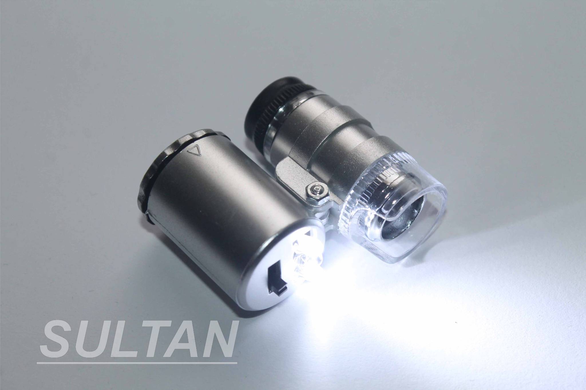 Міні-мікроскоп Лупа 60х із LED та ультрафіолетовою підсвіткою (сірий колір) (1531)