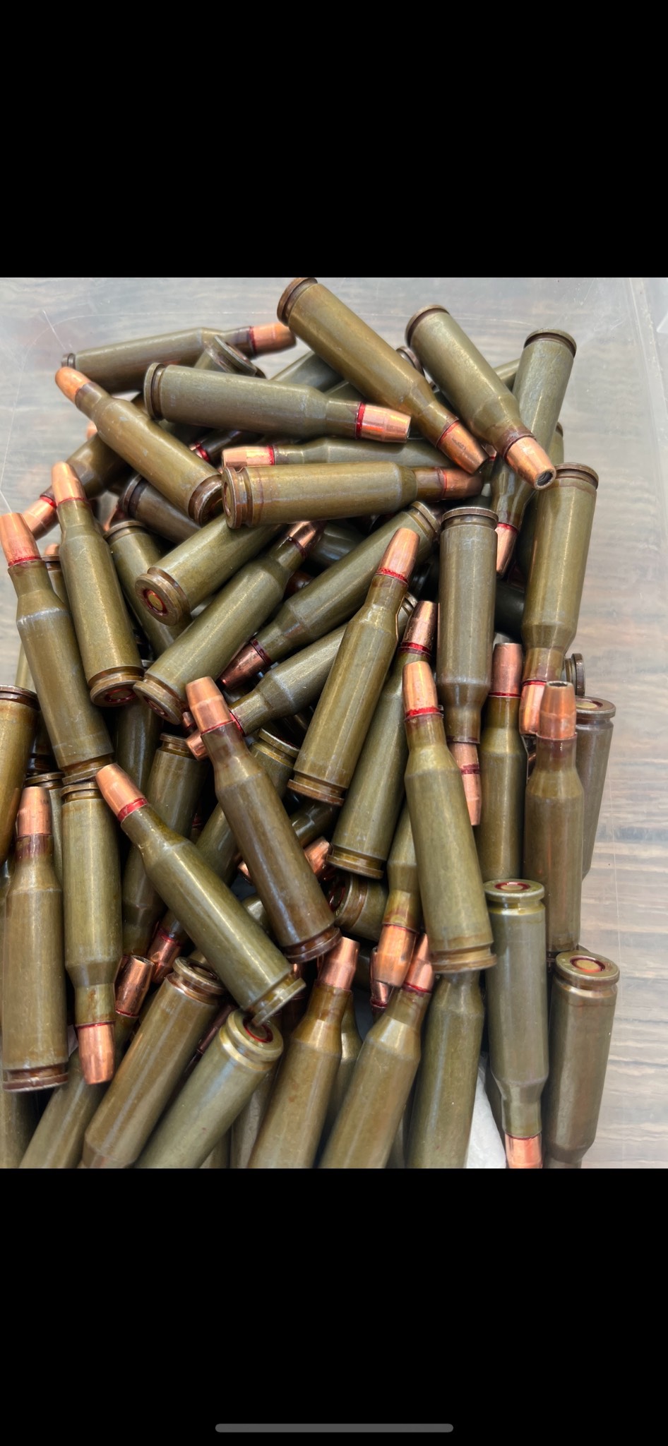ММГ патрона 5.45х39 в лоте 100 шт Пуля не стрелянная , гильза не стрелянная с родным капсулем. Фото пули Донца гильзы ( капсулы) на фото. Пуля без вмешательств. Вставлена в гильзу носиком вперед. Можно переставить . Порох отсутствует
