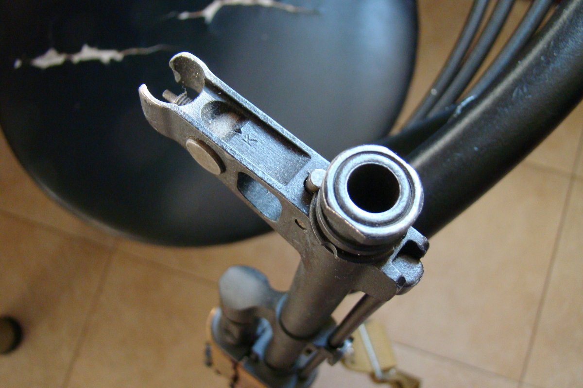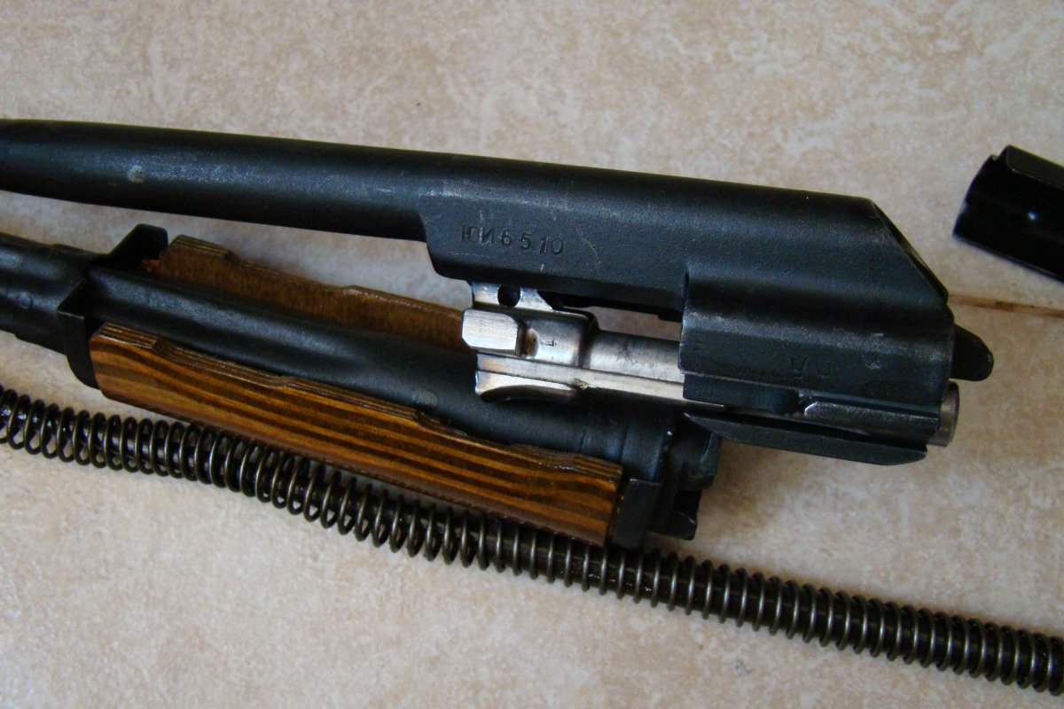 Пропилен ствол сверху за мушкой и снизу под цевьём, штифтов нет, визуально нарезы на месте.