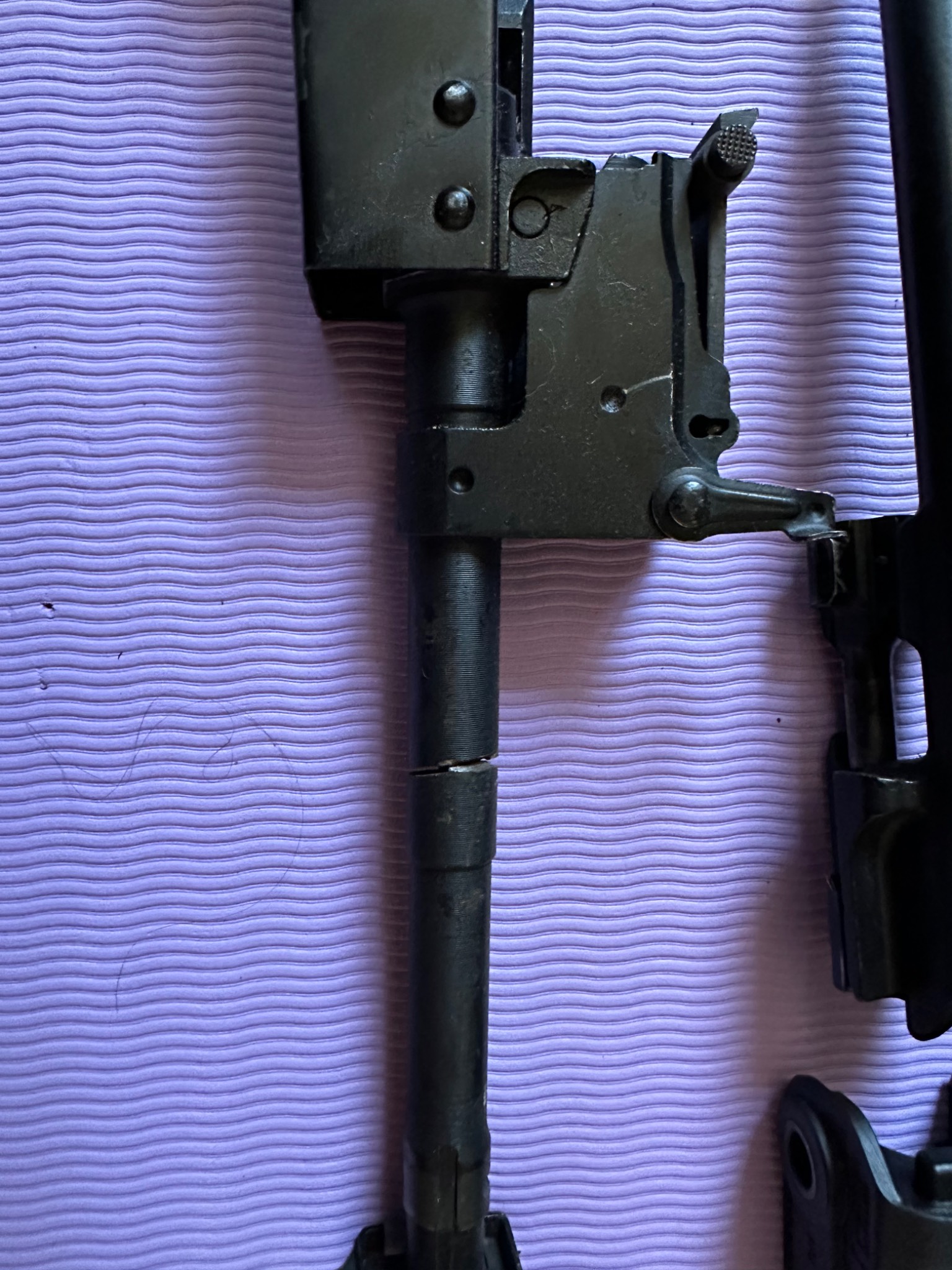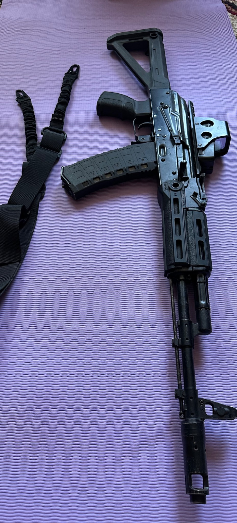 Деревʼяне «весло» та цівка з накладкою замінені на Magpul та Fab Defence. Кришка з планкою пікатіні- Крук, стала чудово, майже без ліфту.