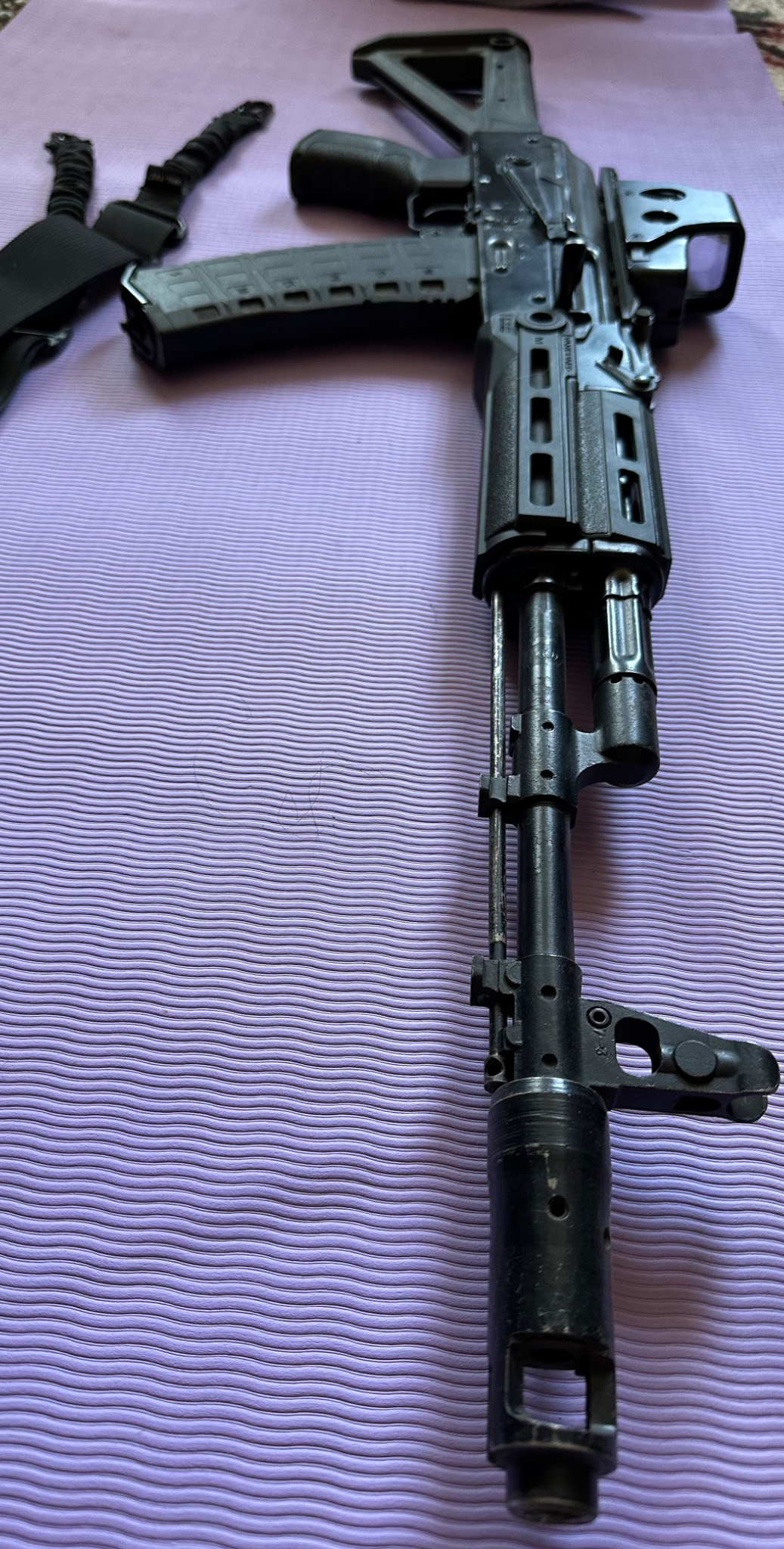 Вашій увазі трофейний АК-74. За трофейний ще в 2023 році в Бахмуті. Був майже в ідеальному стані, справно працював ще більше року, потім був деактивований, зараз являється ММГ.