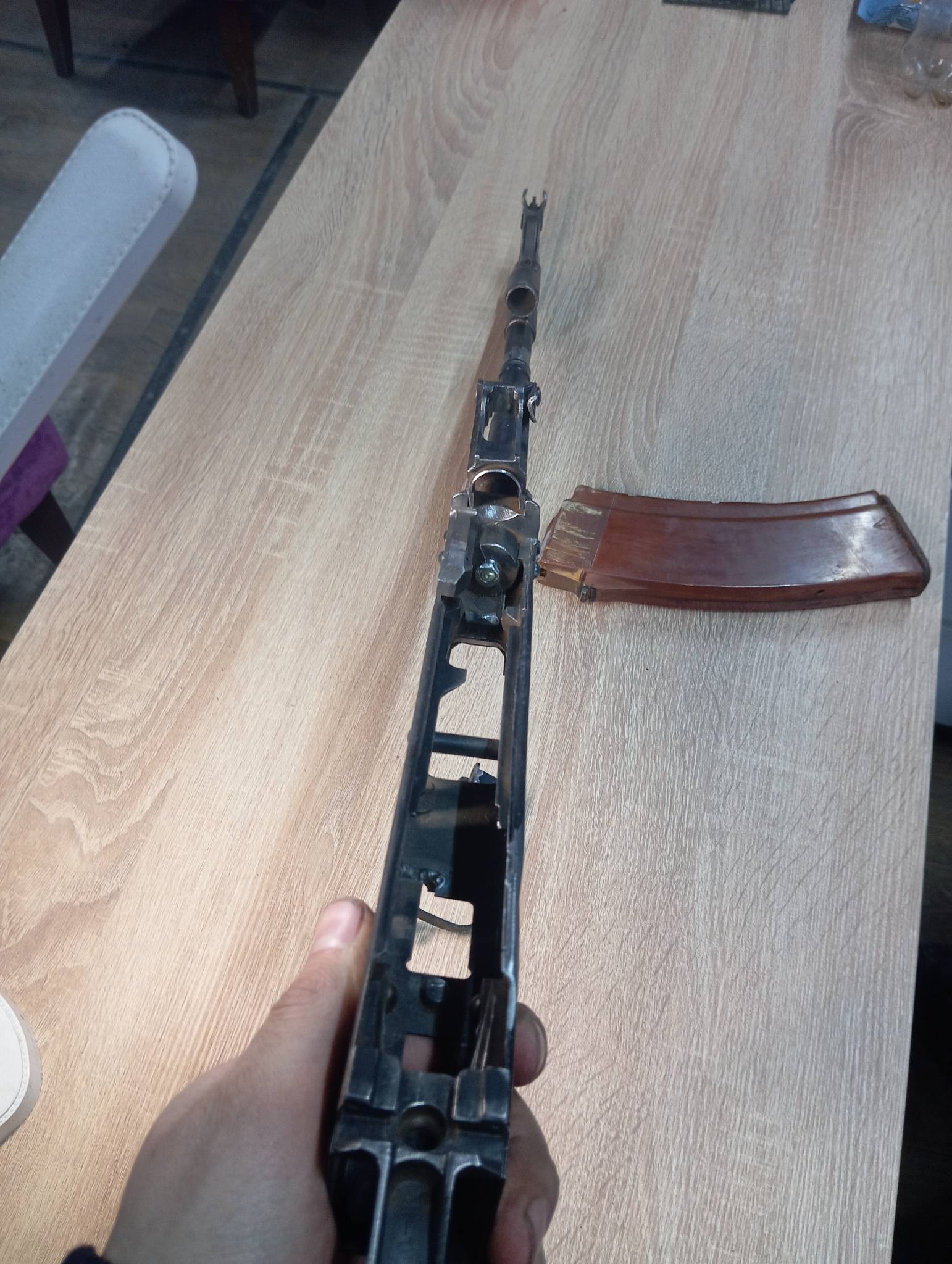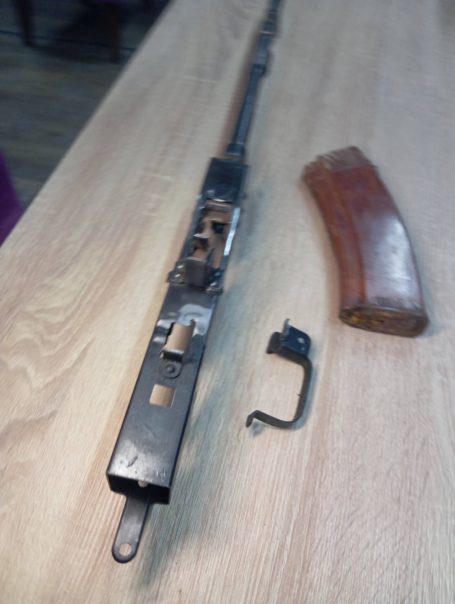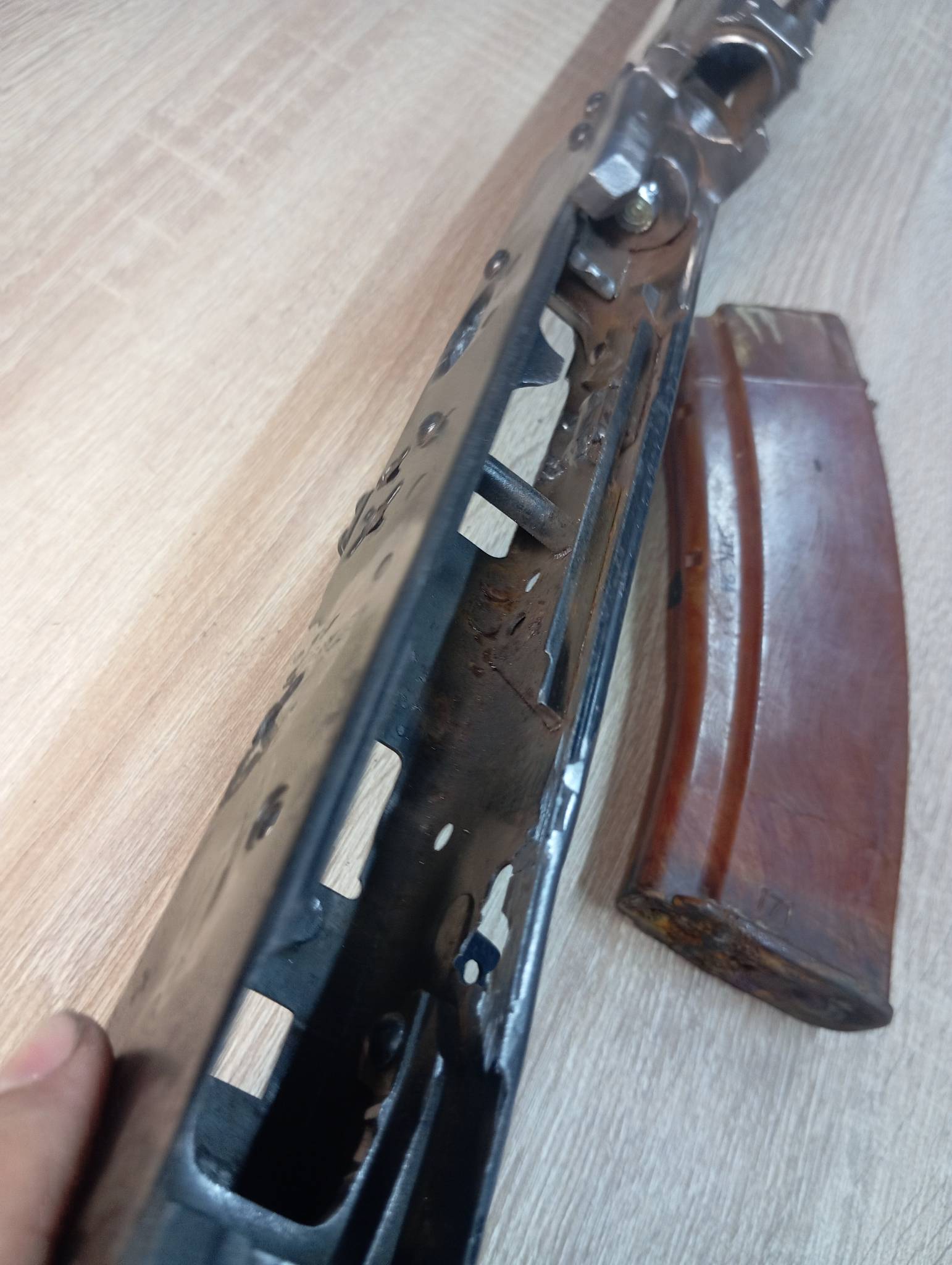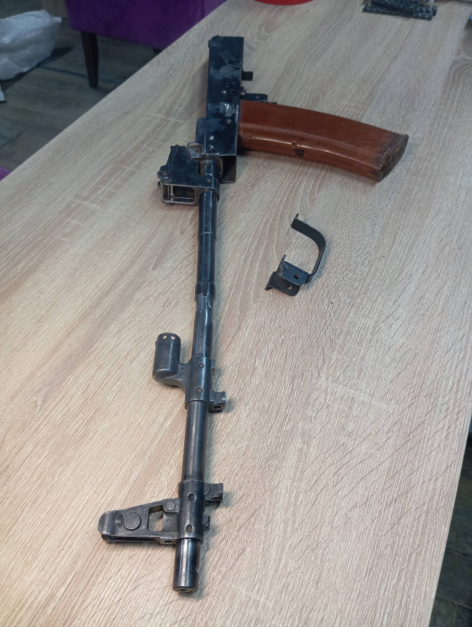 Ммг комплект фронтового АК-74. Механічна поверхнева чистка. Застібка магазину справна, пружинить, магазин вставляється в знімається легко. Прапорець газової трубки ходить. Скоба спускового крючка зарізана чи відламана, бонусом йде ціла скоба з іншої рами. Сама рама реставрувалась, непогана, дефектів по геометрії не видно. Був незрозумілий поріз в місці магазину, заварений, зашліфований.