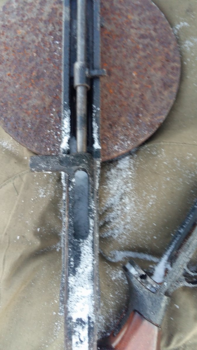 Затвора нет - в стволе грязь и ржавична- выстрел с него нельзя сделать ! В таком состояинии им только гвозди забивать-!!! ХОРОШИЕ ВАРИАНТ НА ПОЛОЧКУ, на усм и прикладе нет крепежного болта