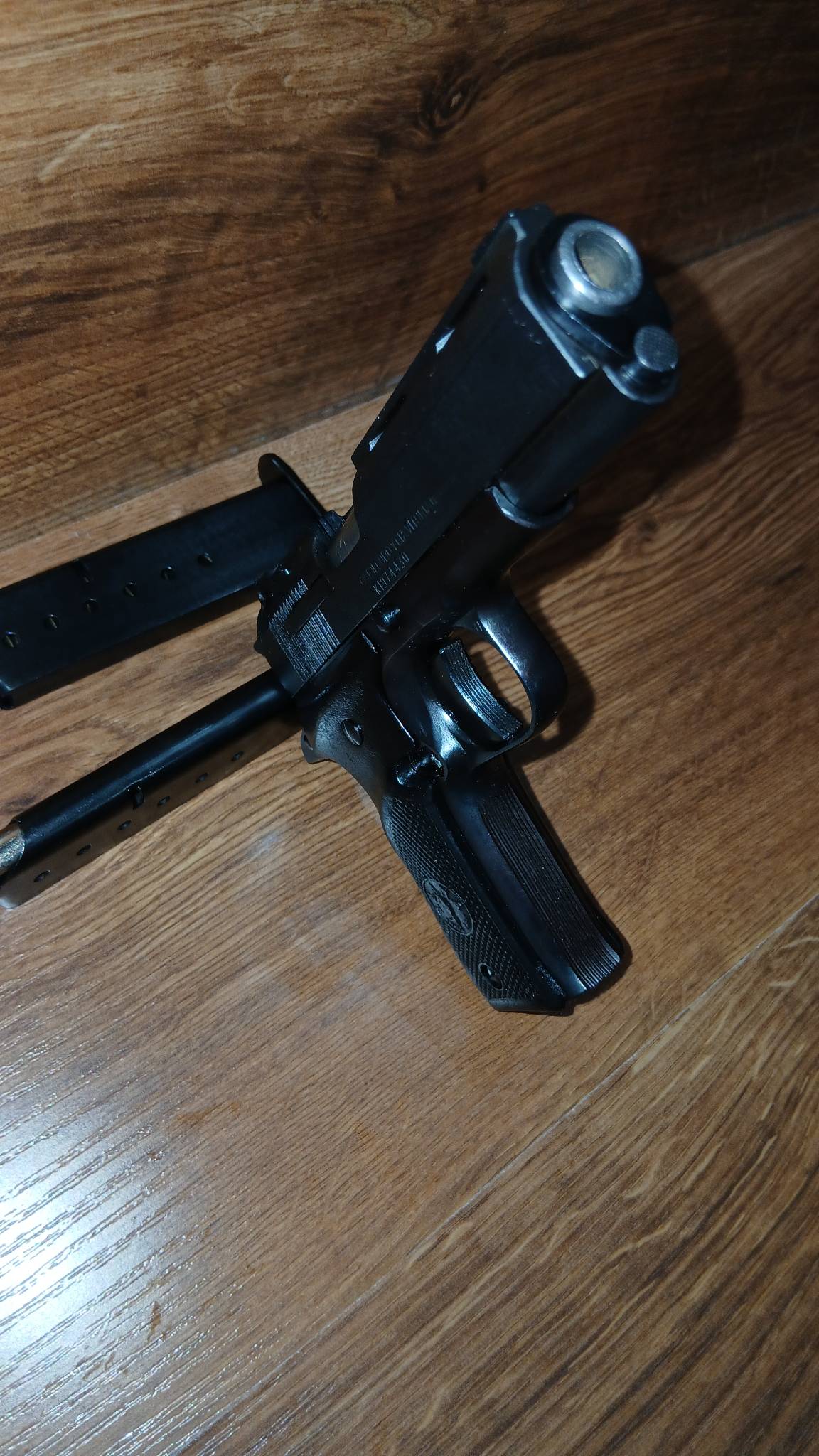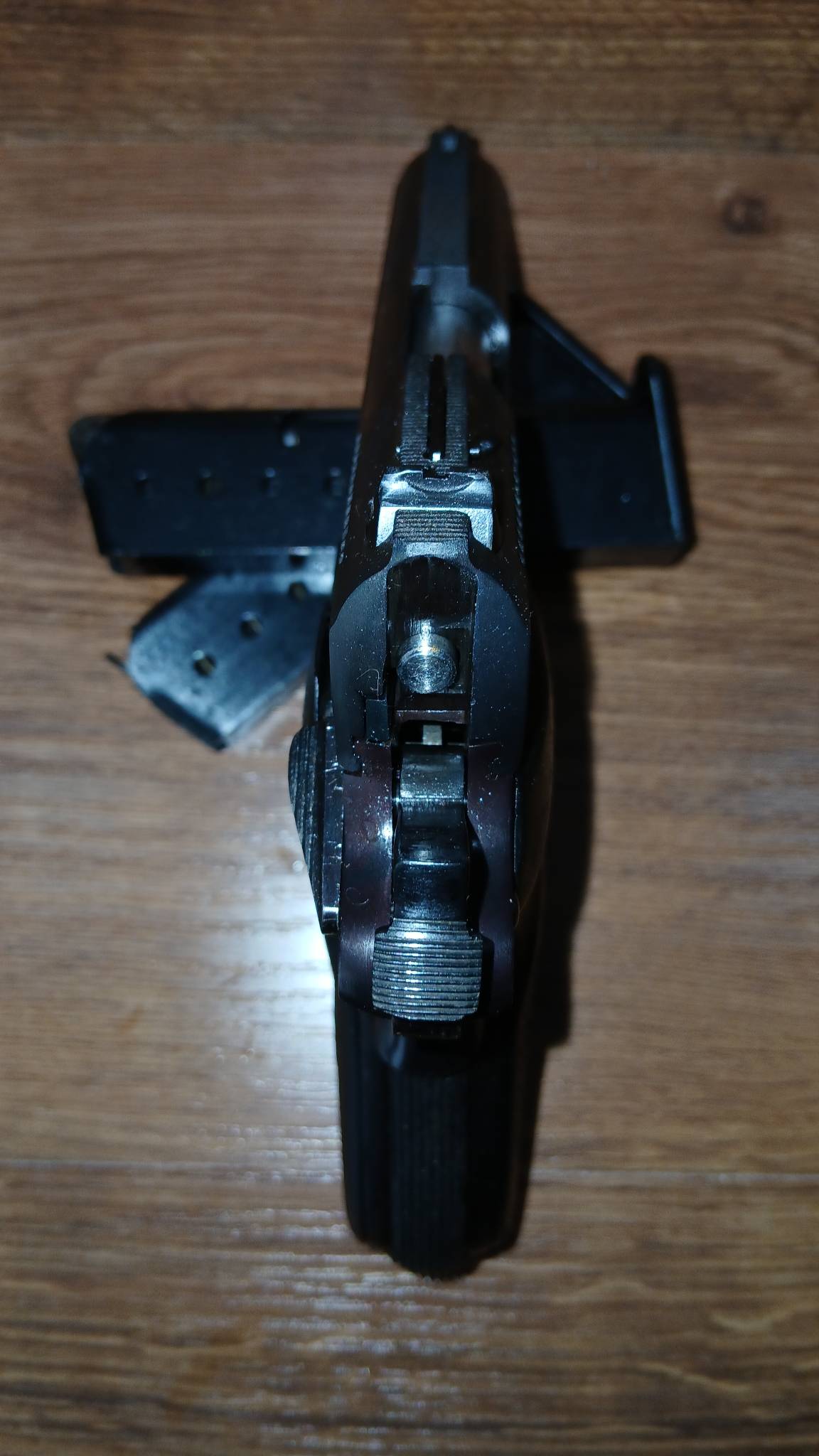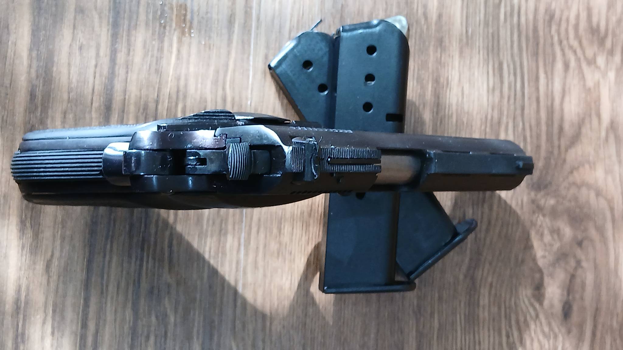 Зеркало затвора востановлено, курок востоновлен, на одном магазине востоновленна одна губа.