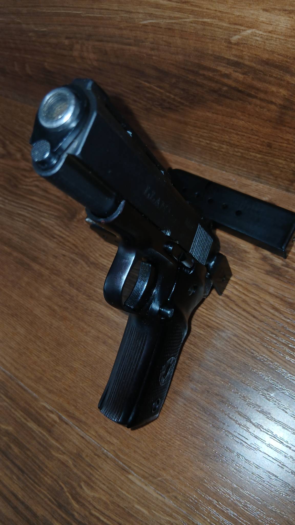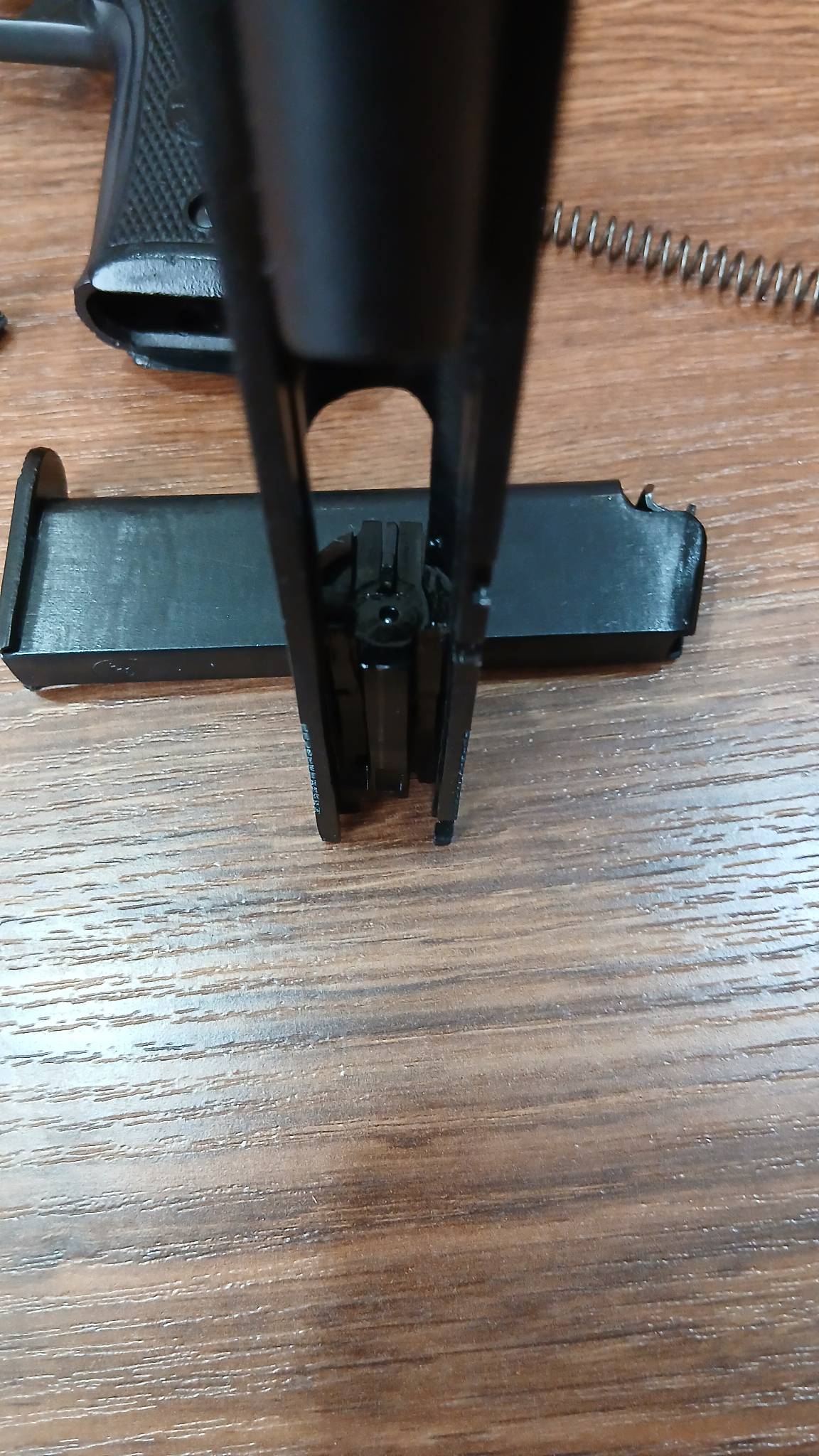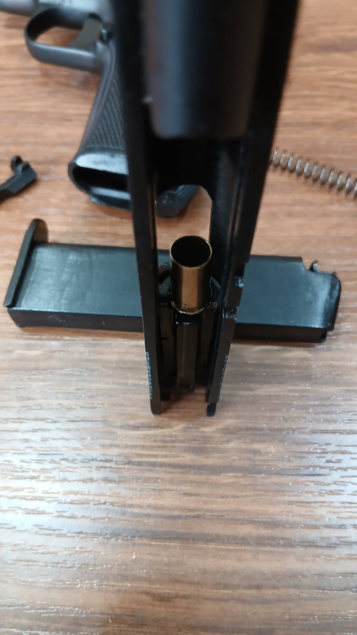 Зеркало затвора востановлено, курок востоновлен, на одном магазине востоновленна одна губа.