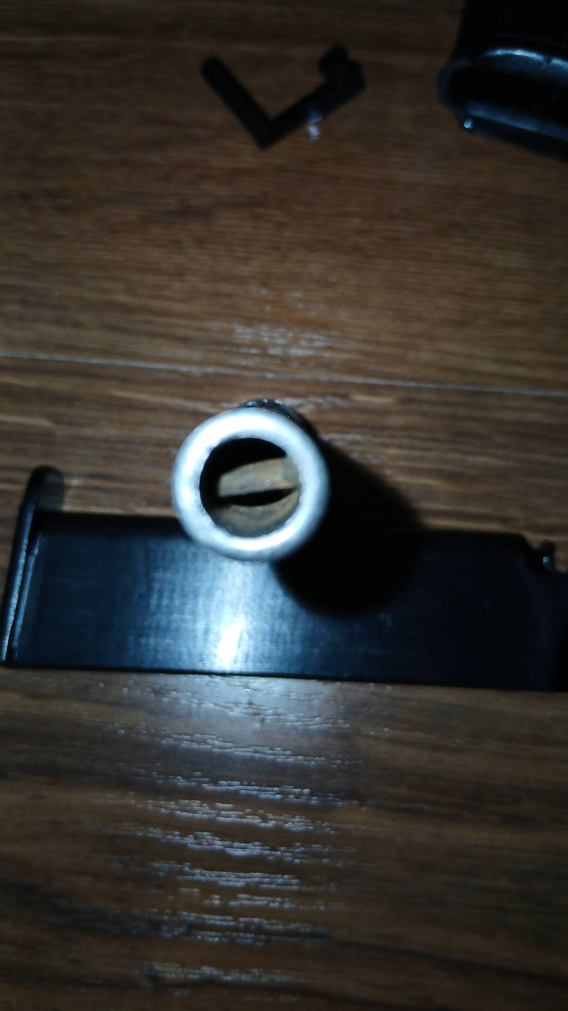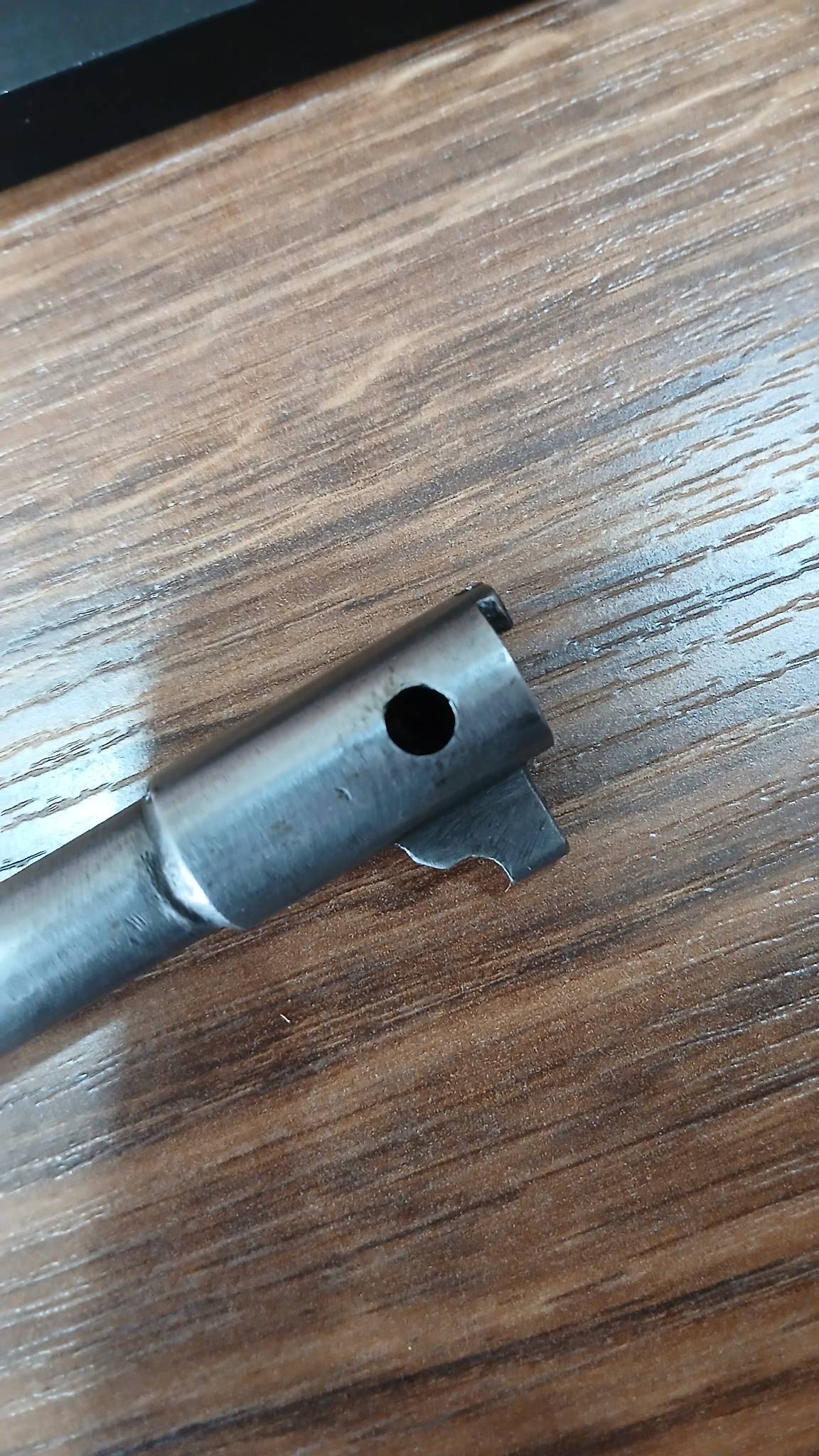 В СТВОЛЕ ВВАРЕН ПРУТ ПОЧТИ НА ВСЮ ДЛИНУ , ПРОСВЕРЛЕН ПАТРОННИК.