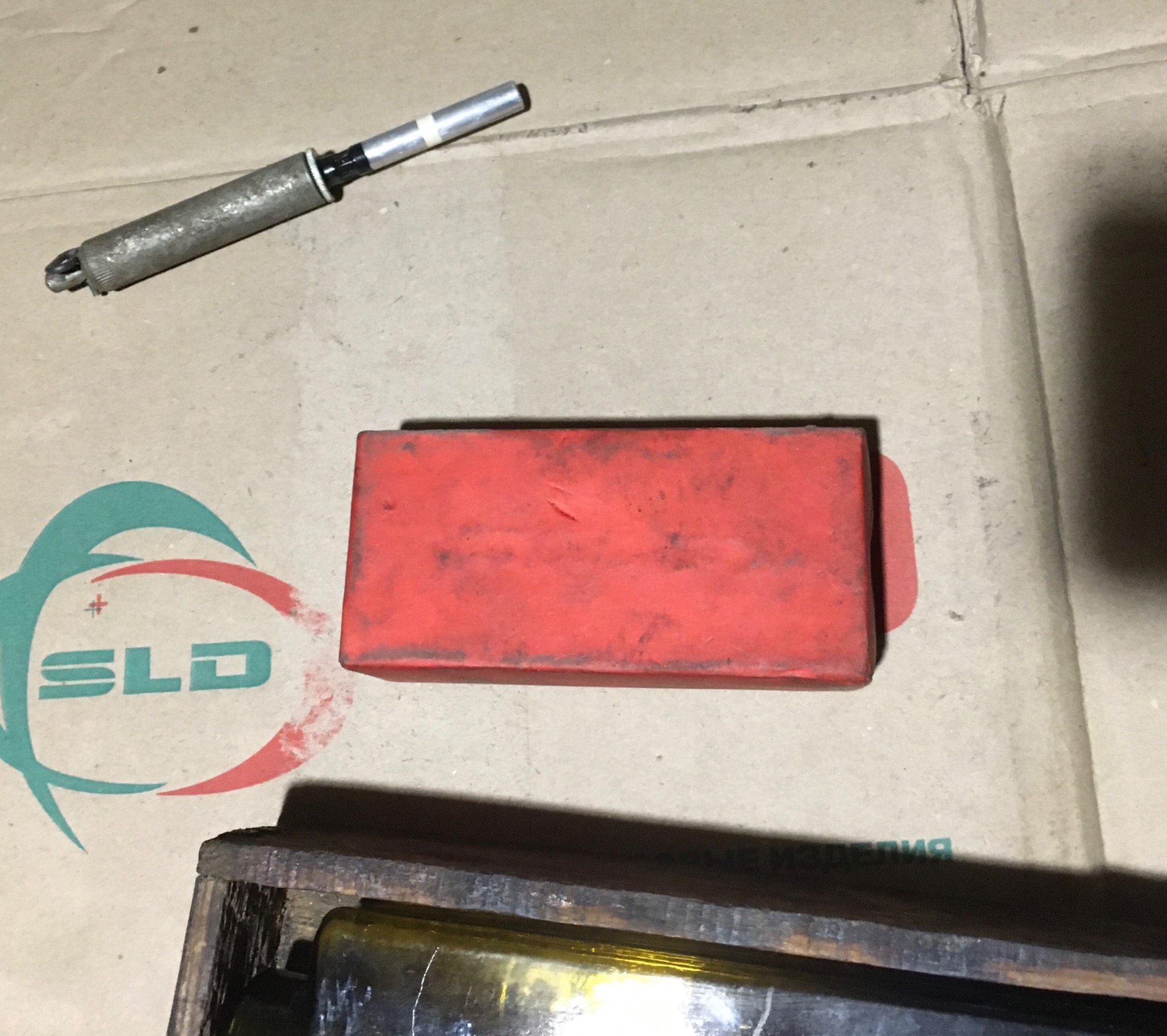 «Тротиловом шашка» выболнена из деревянного бруска.