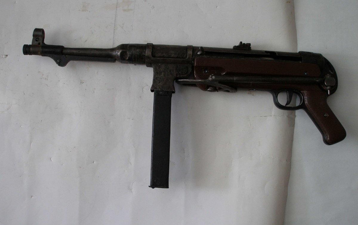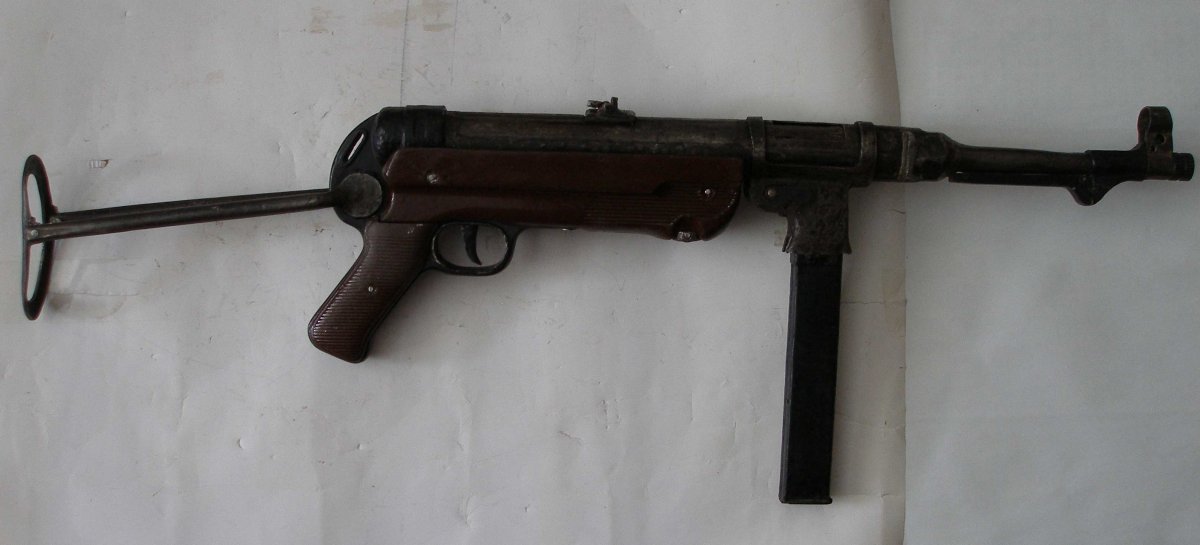 Рукоятка , накладки на неё, гайка на конце ствола ,прицельная планка и подствольная шина - новодел. Накладка цевья оригинал. Взводится щёлкает, пружина отличная. Ствол заварен. Обрезан выбрасыватель гильз.