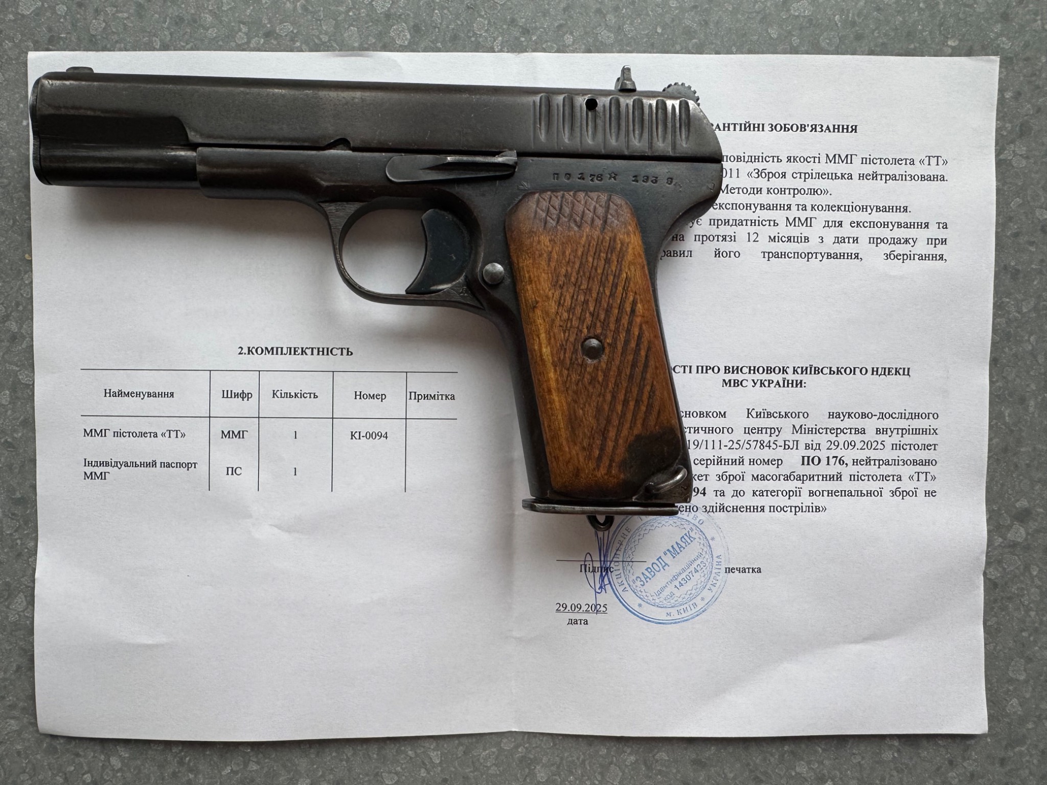 Продам ММГ ТТ 1939 р.в. свіжий деактив Маяк, який навіть кращий ніж знатна Балаклея. На одному номері, з аутентичними деревʼяними накладками. в доброму стані за вашу ціну. Якщо потрібно додаткові фото, звертайтесь зроблю. Вся комплектація на фото.