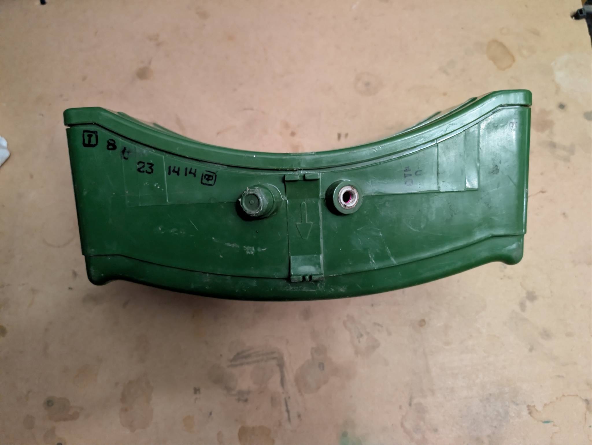 Корпус від МОН-90 із вражаючими елементами на задній стінці.