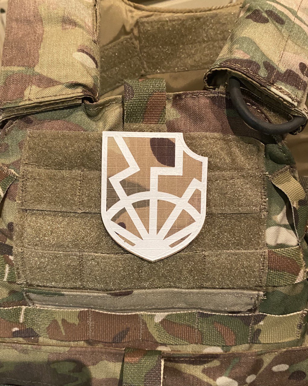 Морал патч «Black Sun Division» Multicam/люмінофор в формі геральдичного щита з зображенням фрагмента Чорного Сонця.
