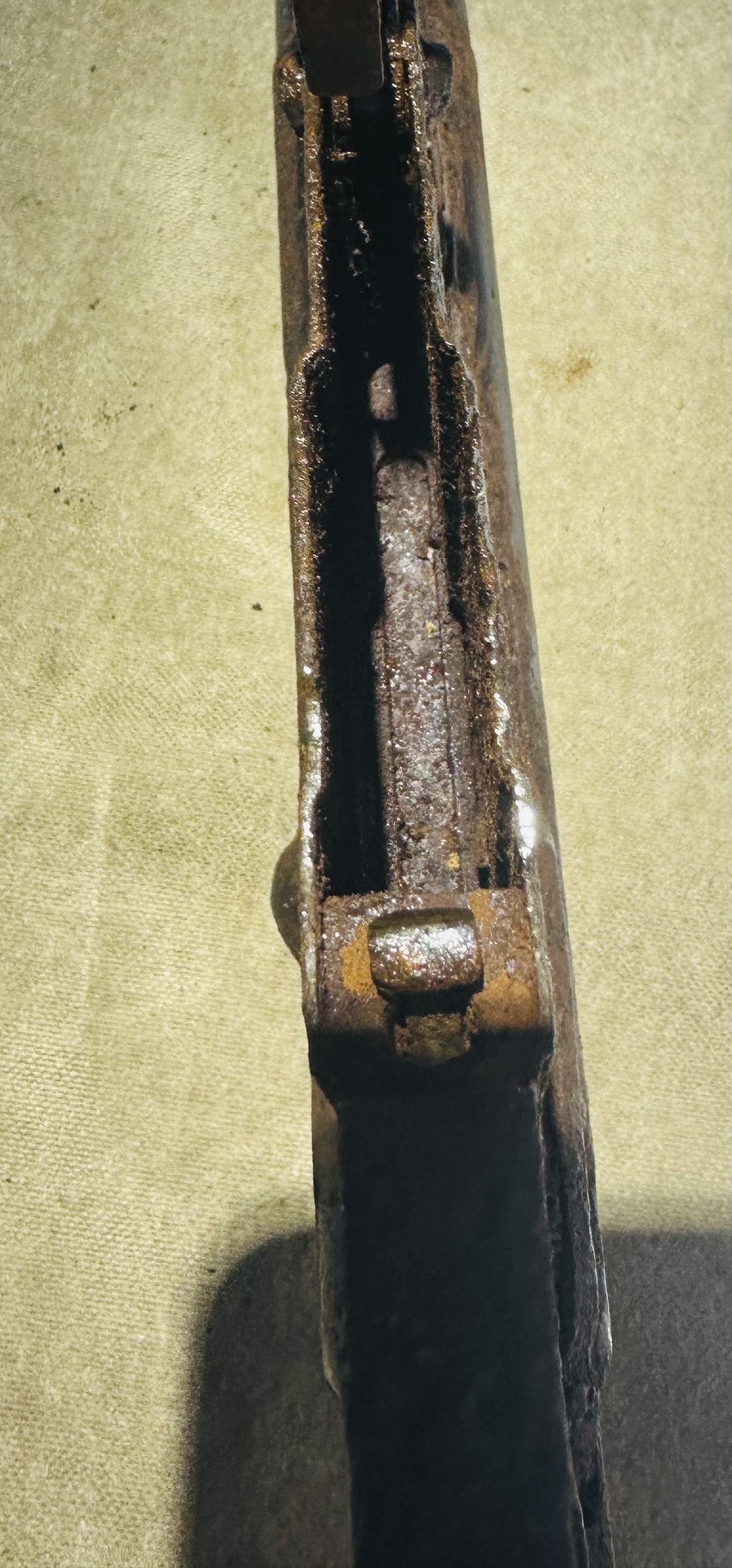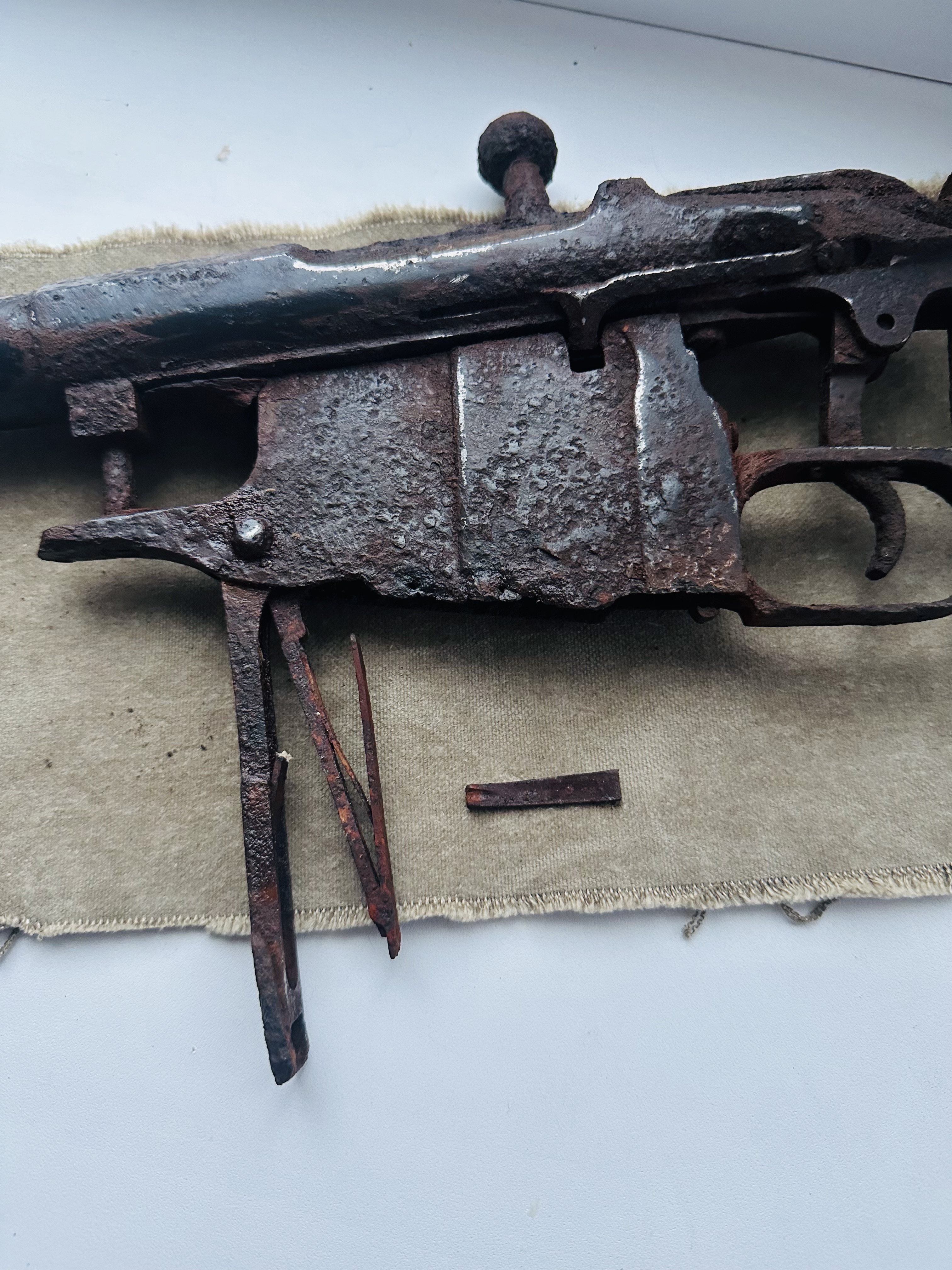 Копаний предмет у повному зборі. Стан металу дуже гарний. Поверхня мех. чистка, не розбиралася. Знайдена в лісі.