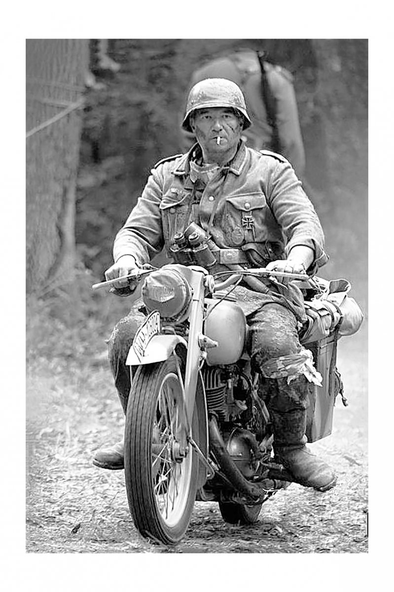 Мотоциклист вермахта на мотоцикле.