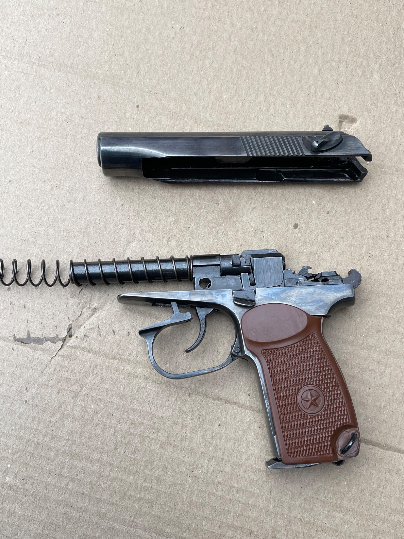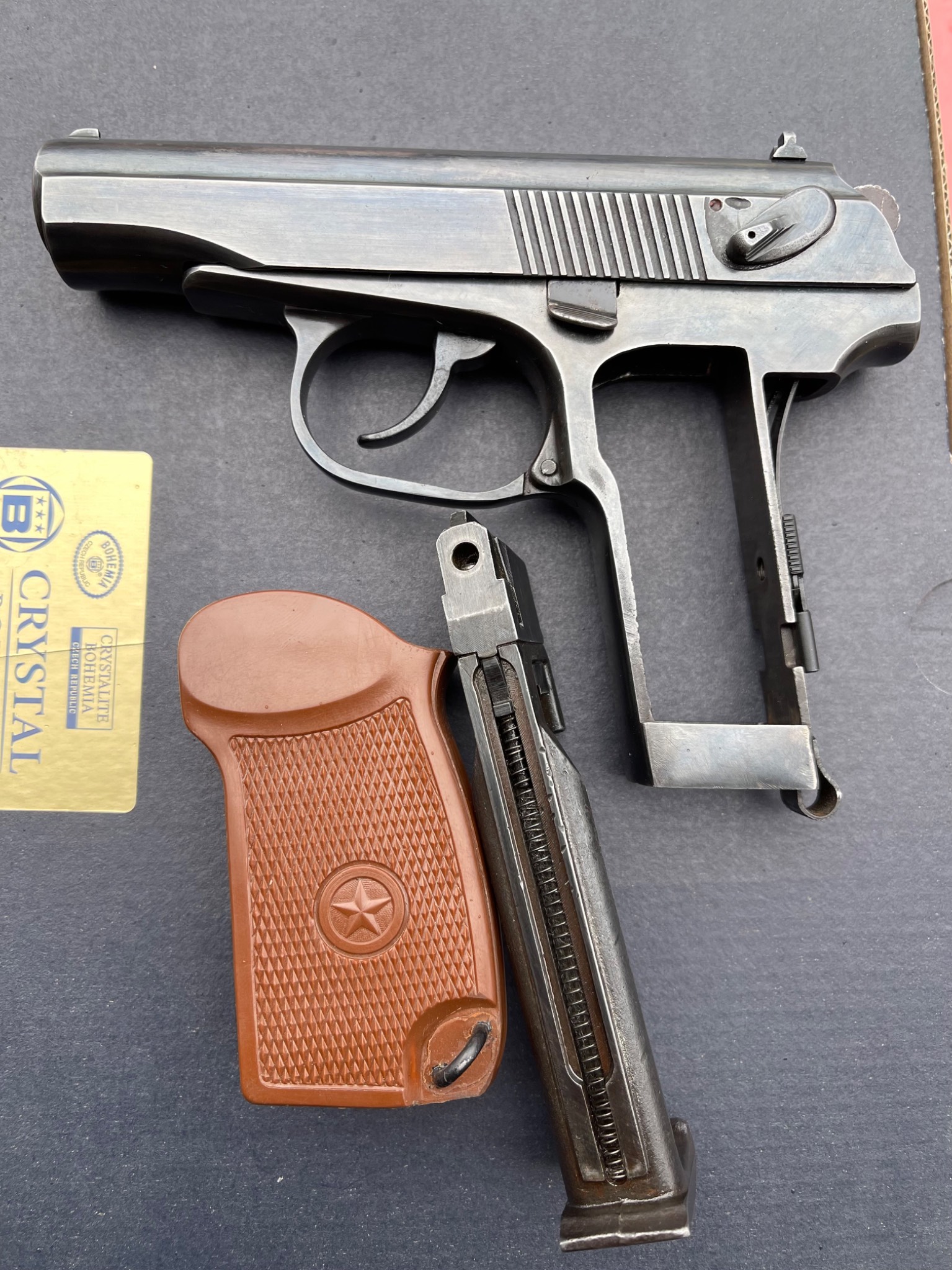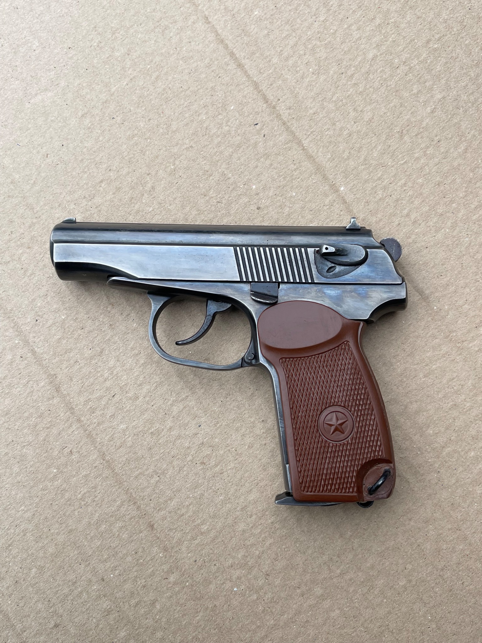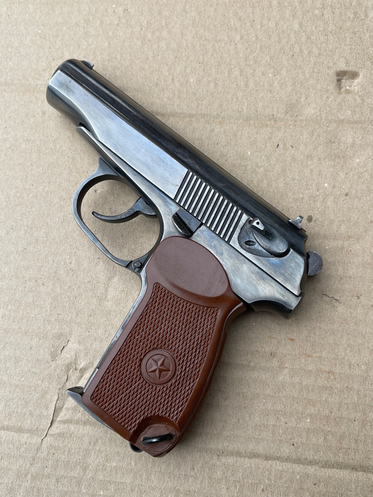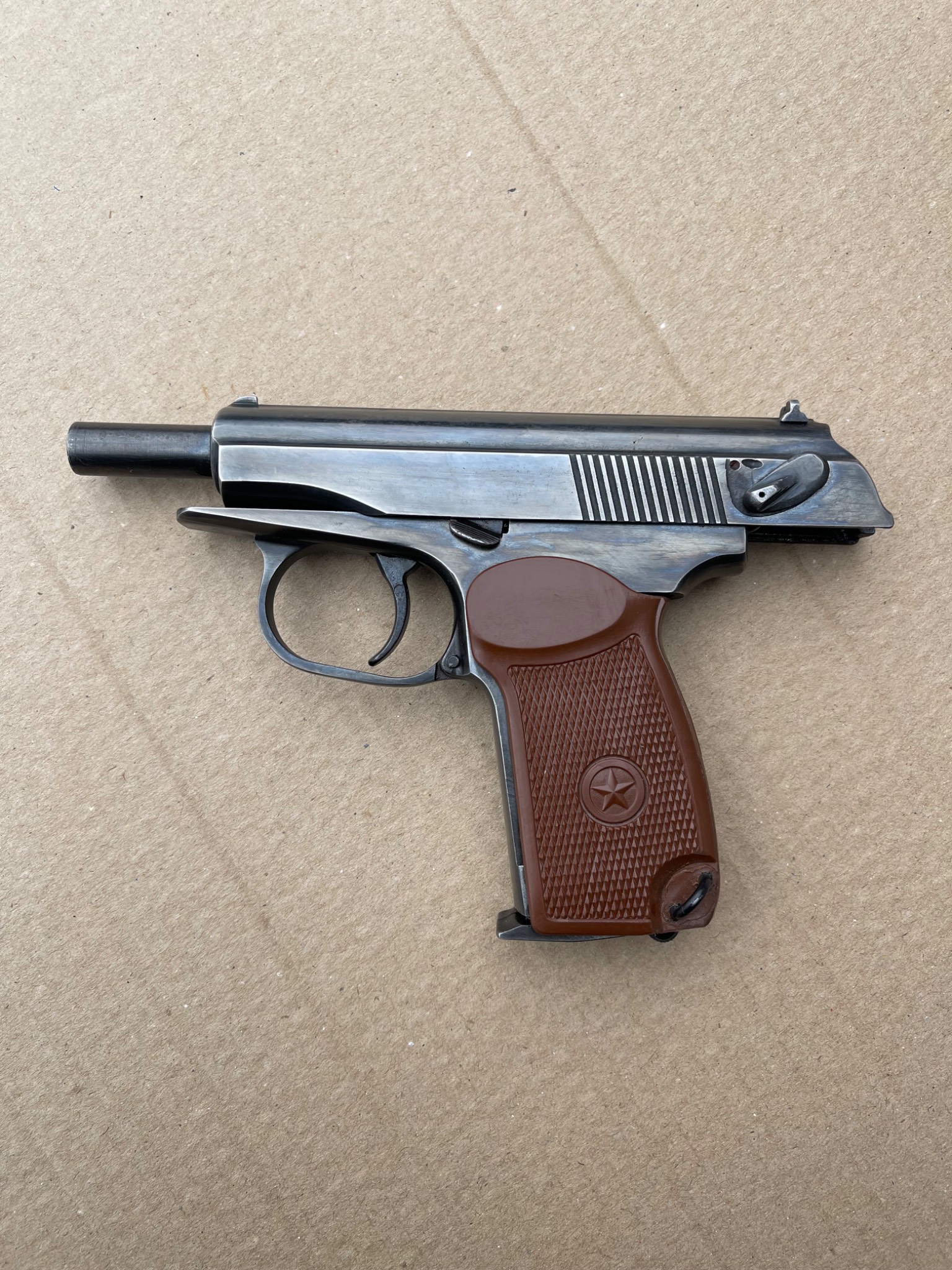 Пневматичний пістолет МР-654к 28-ї серії, в легкому тюнінгу,наварена борода,підігнана пластикова рукоятка,перемички не видалені повністю, тільки обточені, прихований притискний гвинт магазину, обточена пятка магазина,обточена спускова скоба, дульний зріз під 9мм, в принципі все видно на фото,магазин не перевіряли скоріш за все потрібна ревізія.