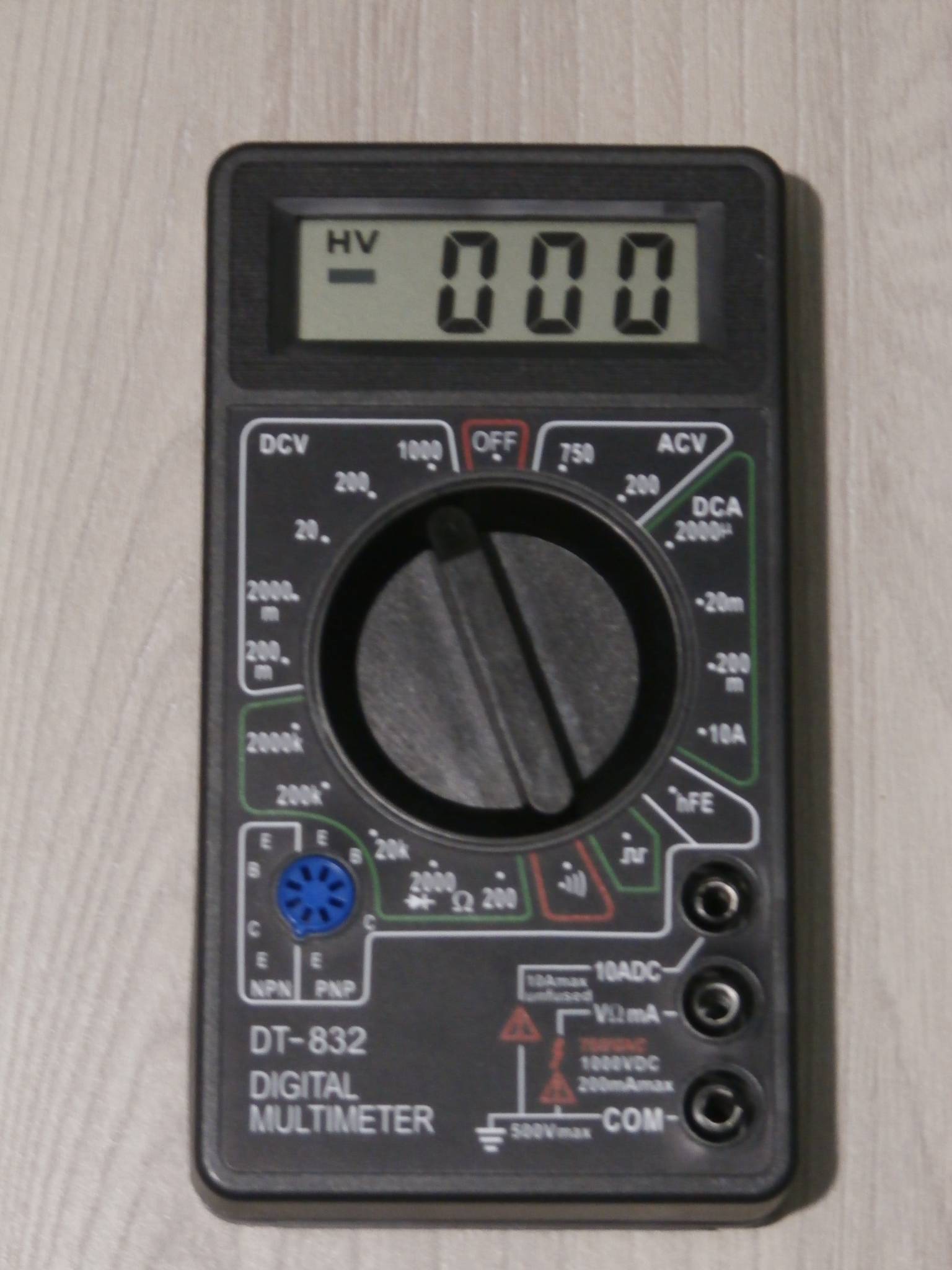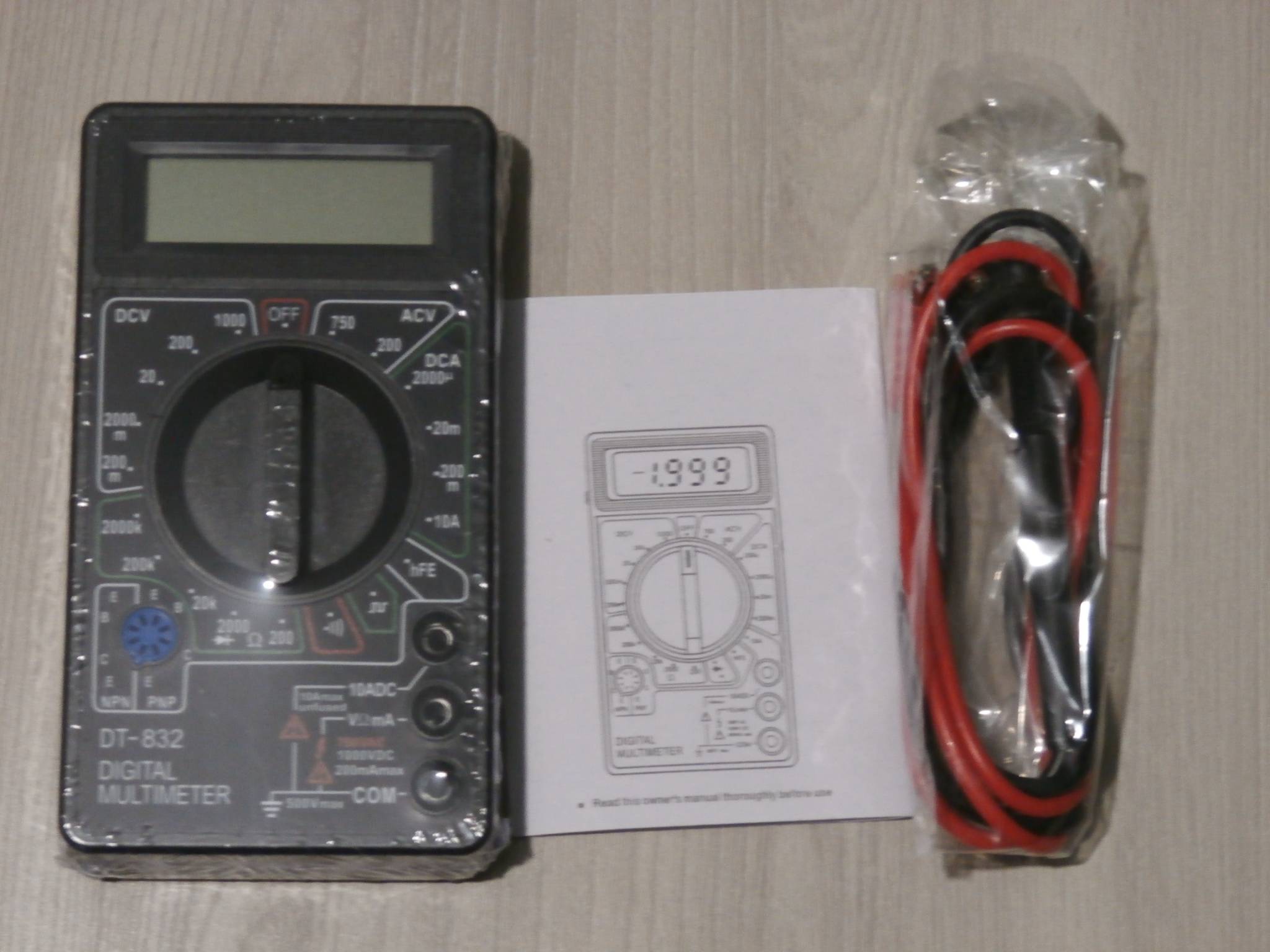 Також може проводити перевірку цілісності ланцюга за допомогою звукової прозвонки, а також діодний тест. Для проведення вимірювань коефіцієнта посилення транзистора не потрібно підключати щупи, для цього передбачені міні отвори для приміщення висновків радіодеталі. Потрібно під'єднати транзистор і вибрати відповідний режим. Генератор меандра. Цей недорогий різновид мультиметра володіє такою функцією, як генератор прямокутних імпульсів. Її наявністю може похвалитися не кожні більш дорогі вимірювальні прилади. Мультиметр DT 832 – простий пристрій, за недорогою ціною, яке здатне впорається з усіма основними завданнями. Купити цифровий мультиметр dt832 ви можете в будь-який час. Він підійде людям, які роблять свої перші кроки в радіоелектроніці або для нечастого домашнього використання.