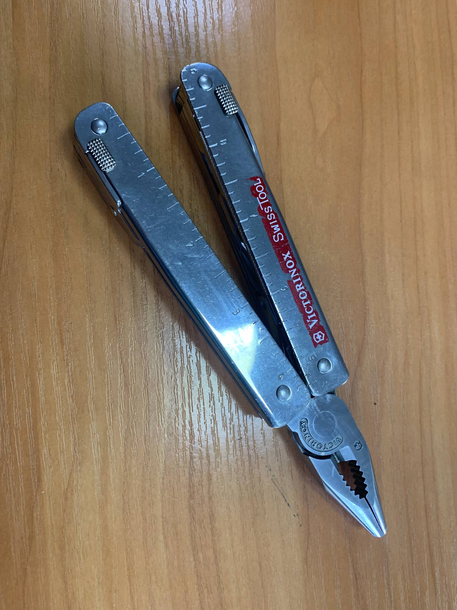 Мультитул Victorinox SwissTool в 100% робочому стані. Характеристики в мережі. Прихованих недоліків не має, все намагався відобразити на фото. Зазубрини на кусачках, то не сліди експлуатації, а інженерне рішення для кращої фіксації предметів, що перекушуються.