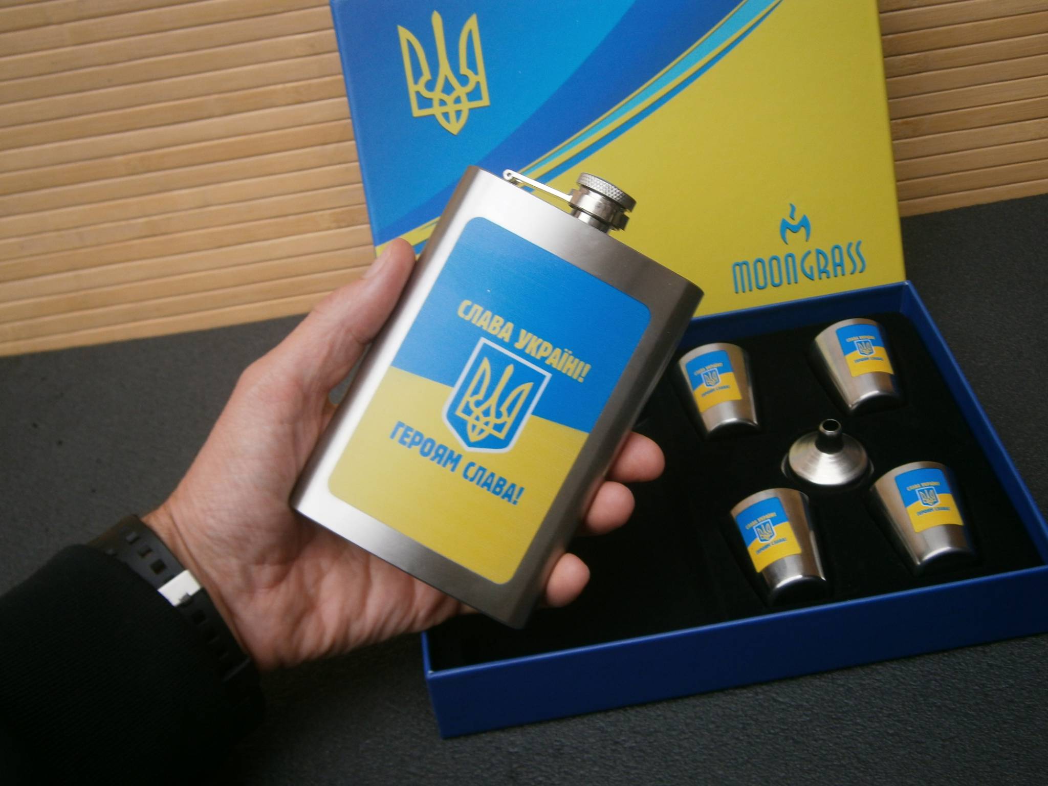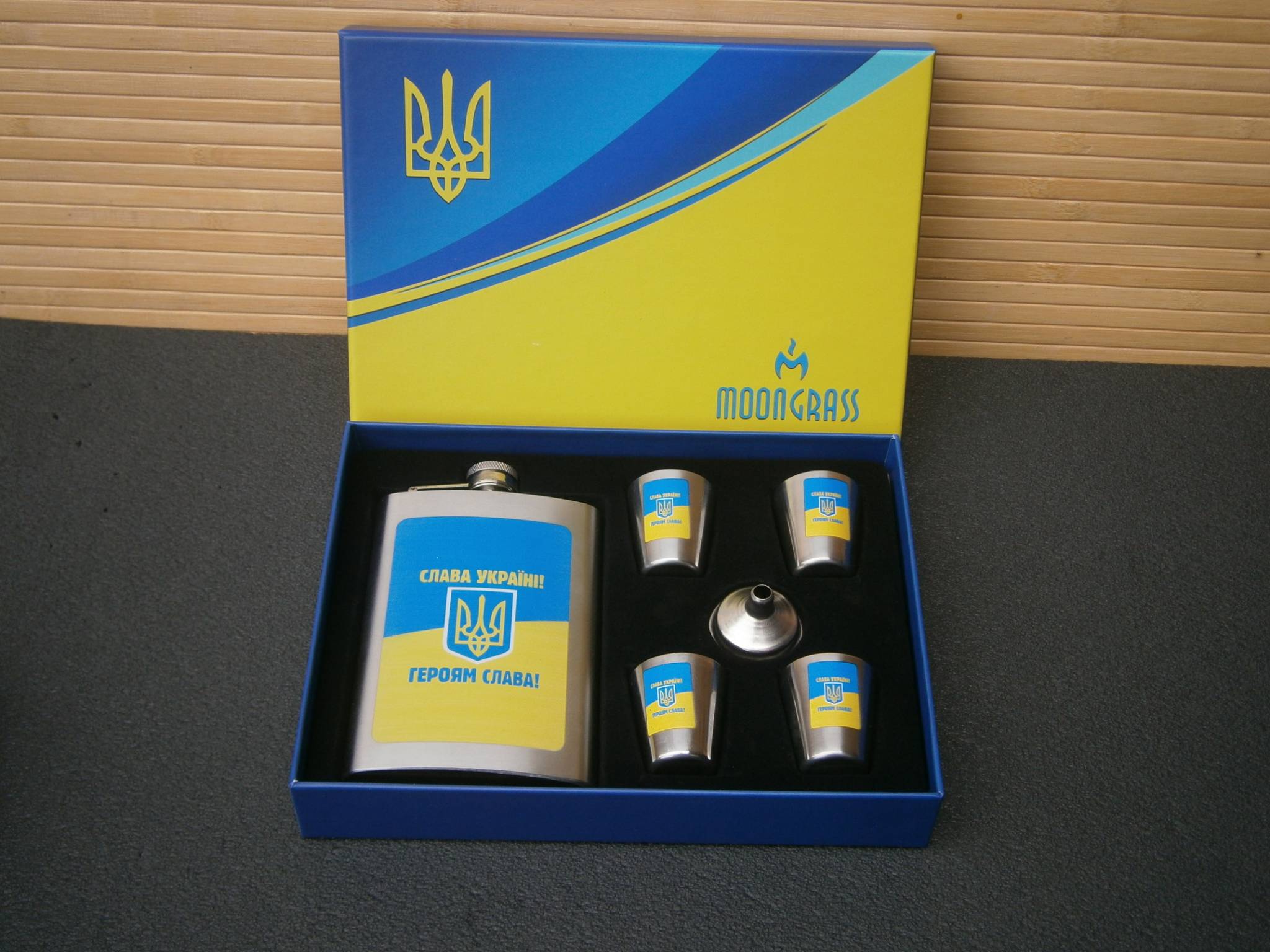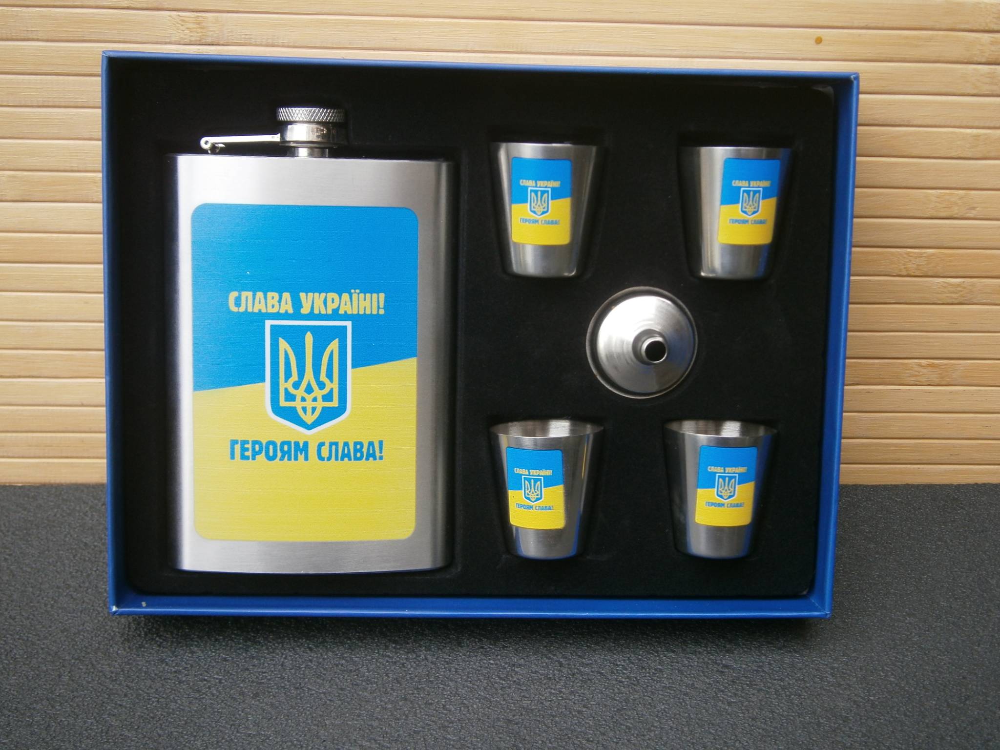 Набір подарунковий Україна фляга кишенькова з чарками та лійкою нержавіюча сталь