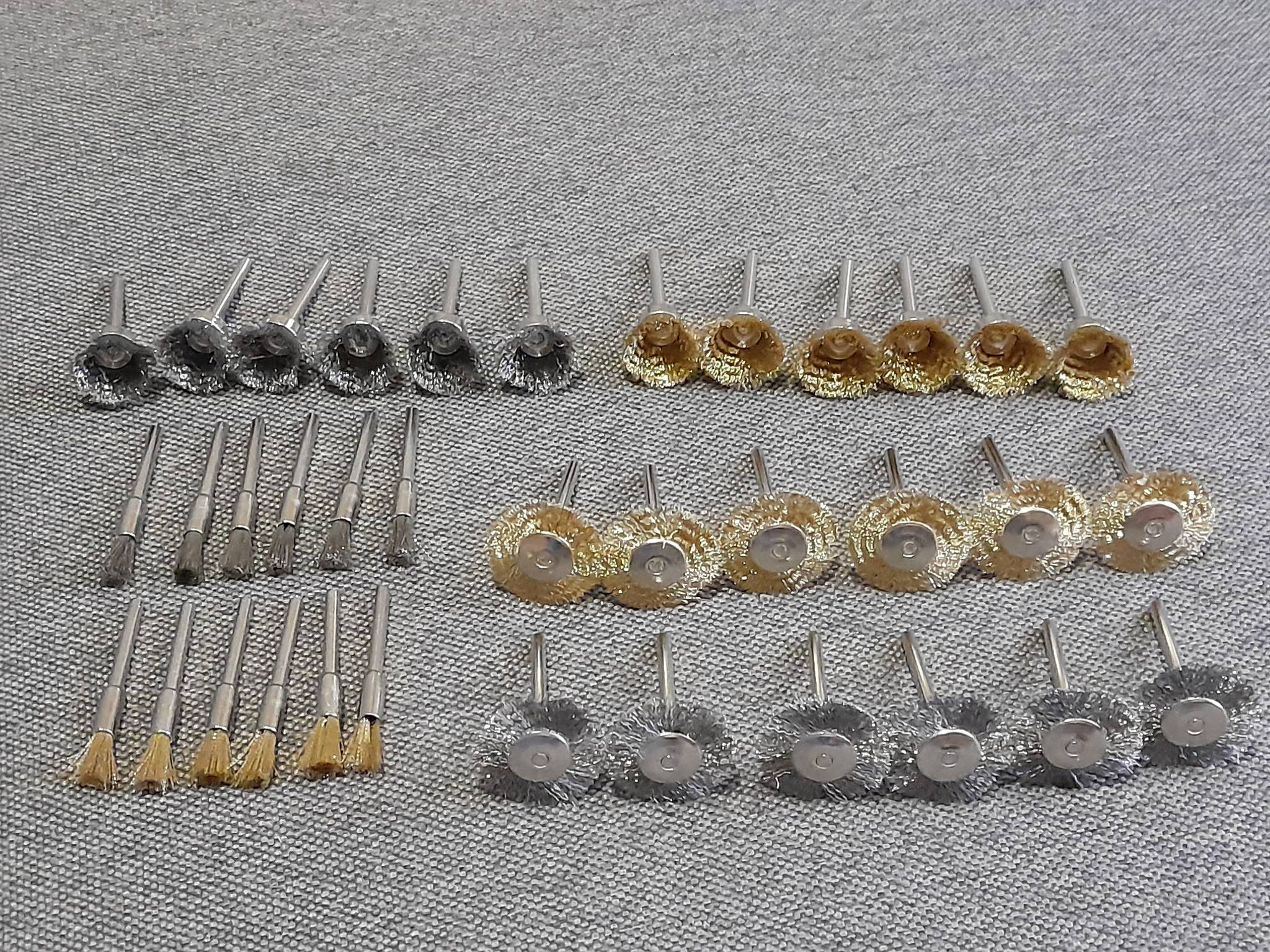 Набір з 36 металевих щіток різної жорсткості для гравера.