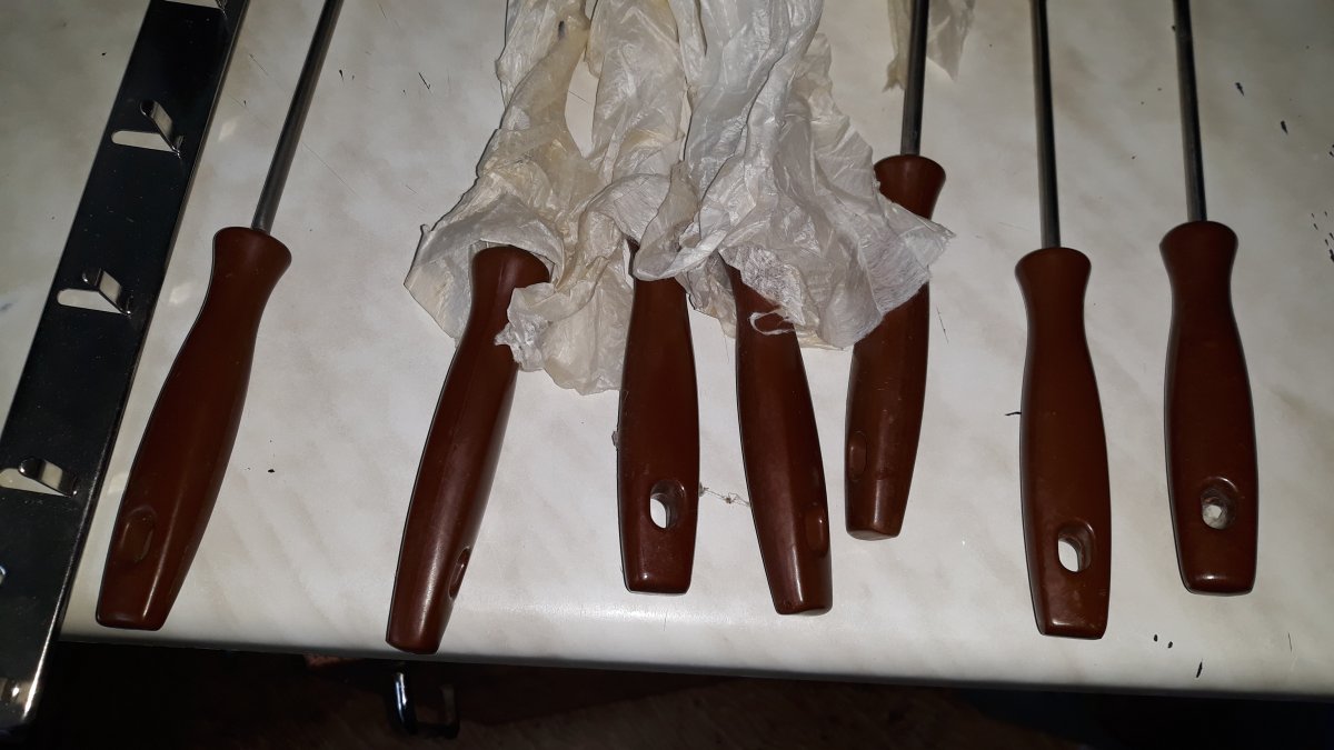 Набор для для приготовления пищи,включает 8 предметов,новый!,производство СССР,Калуга.Ручки бакелитовые.