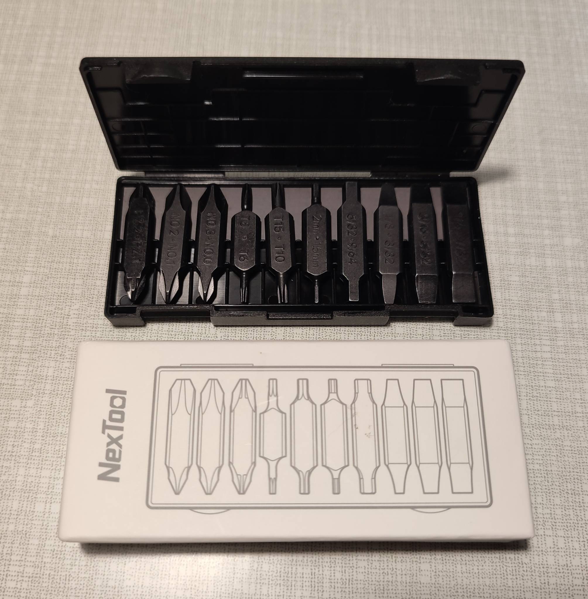 В комплекте 10 двухсторонних бит.