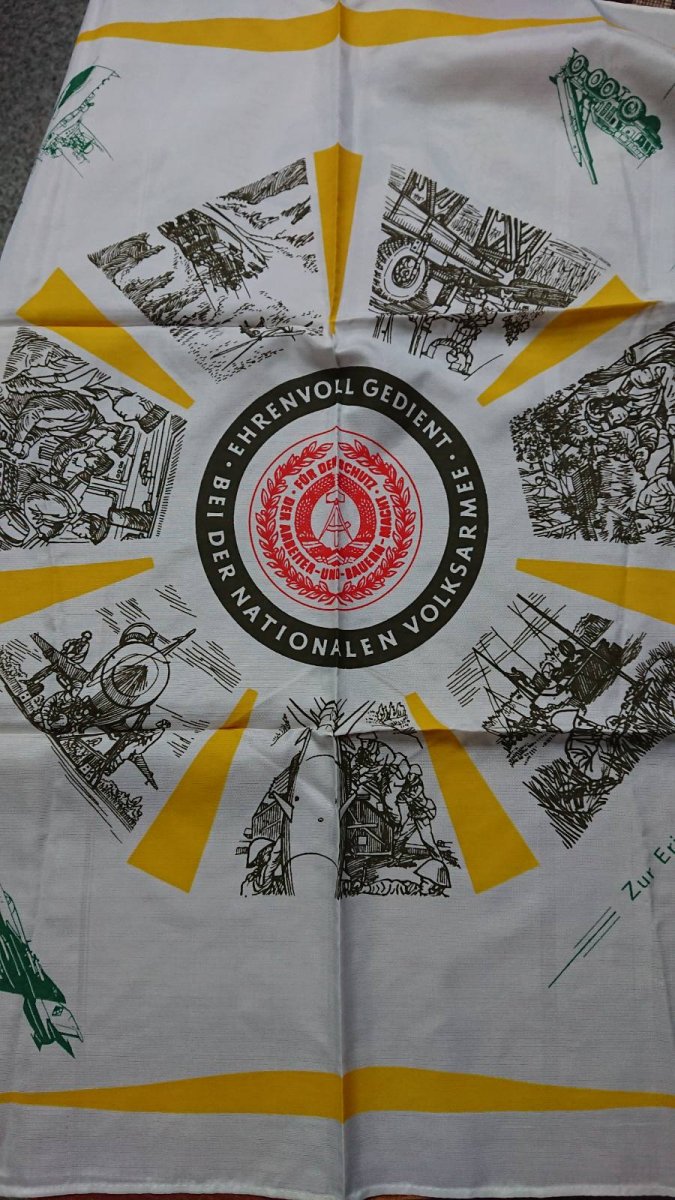 Платок резервиста с надписью «С честью служил сухопутным войскам НВА» (нем. Ehrenvoll gedient bei den Landstreitkräften der NVA) и салфетка резервиста с кружевом Плауэн (нем.Plauener. Плауэнские кружева и вышивка являются всемирно известной немецкой текстильной продукцией с многовековыми традициями) с надписью «Национальная народная армия»