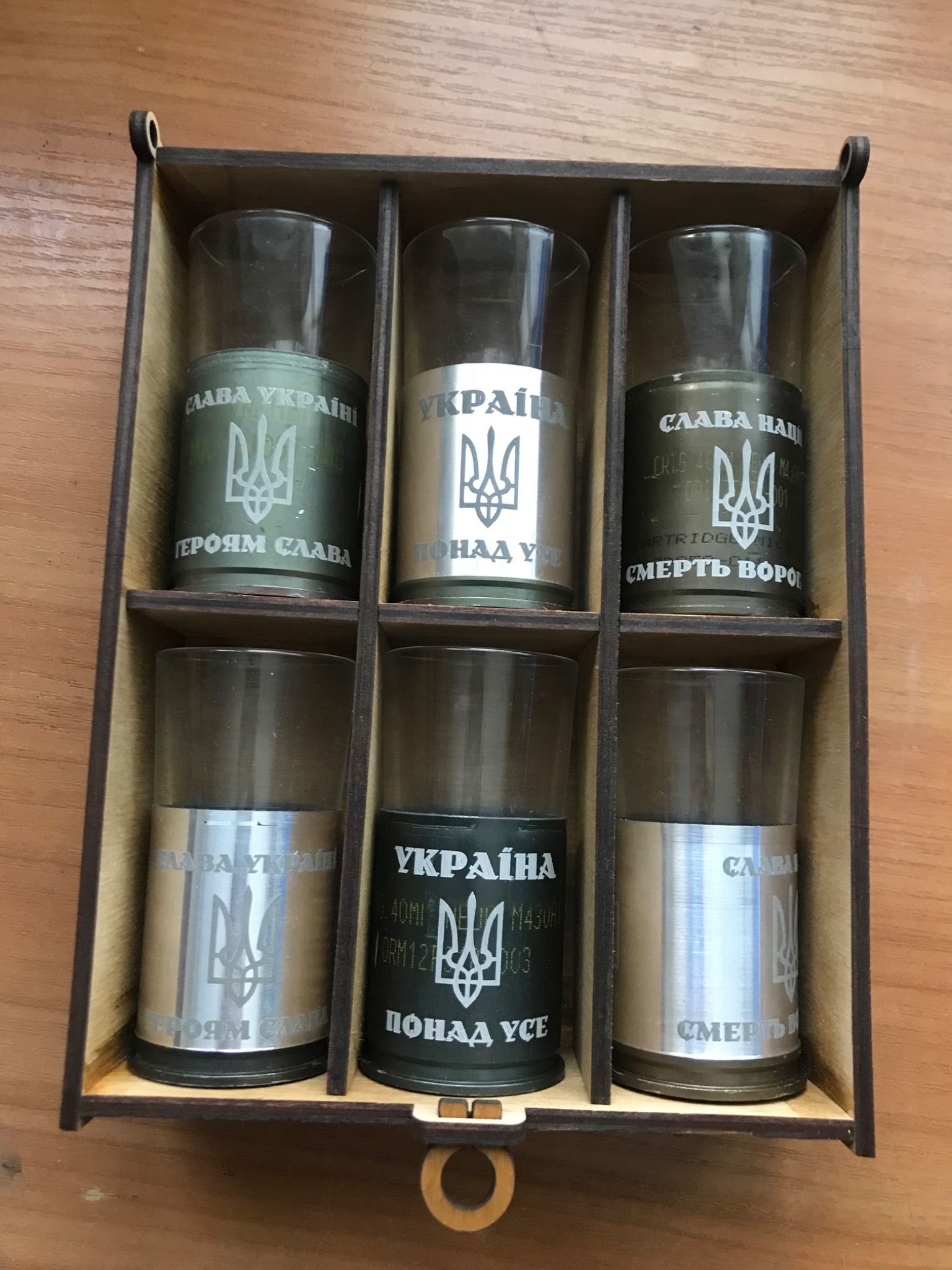 Изготовление подарочных наборов рюмок из гильз МК19 под заказ, с Вашими эмблемами, надписями. Так же возможно изготовление наборов со стандартными надписями как на фото. Возможна шлифовка гильз (5 фото)