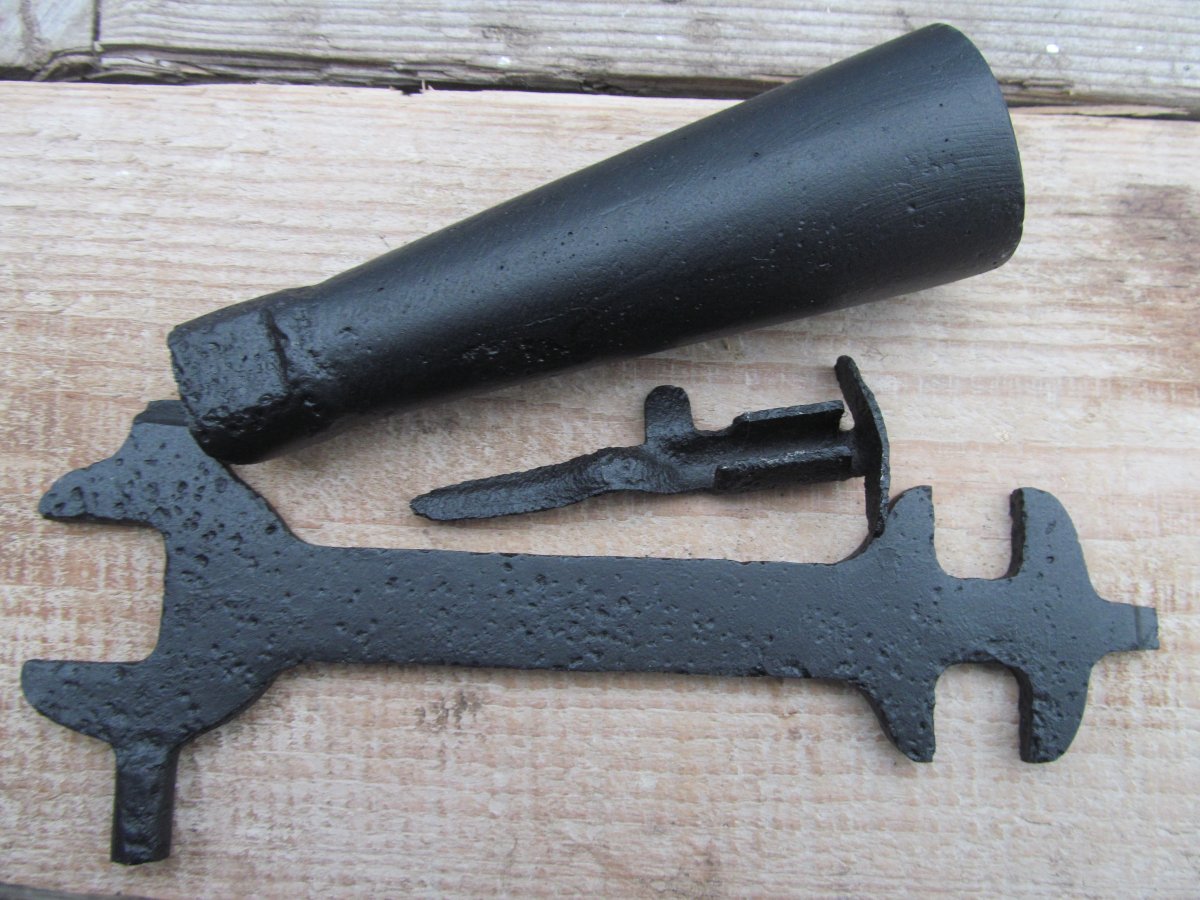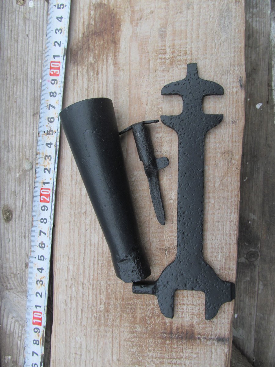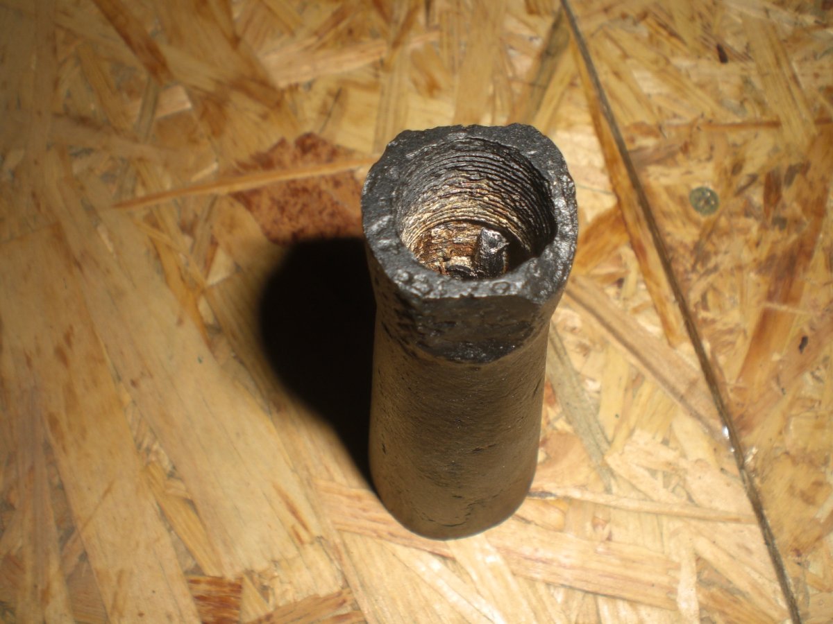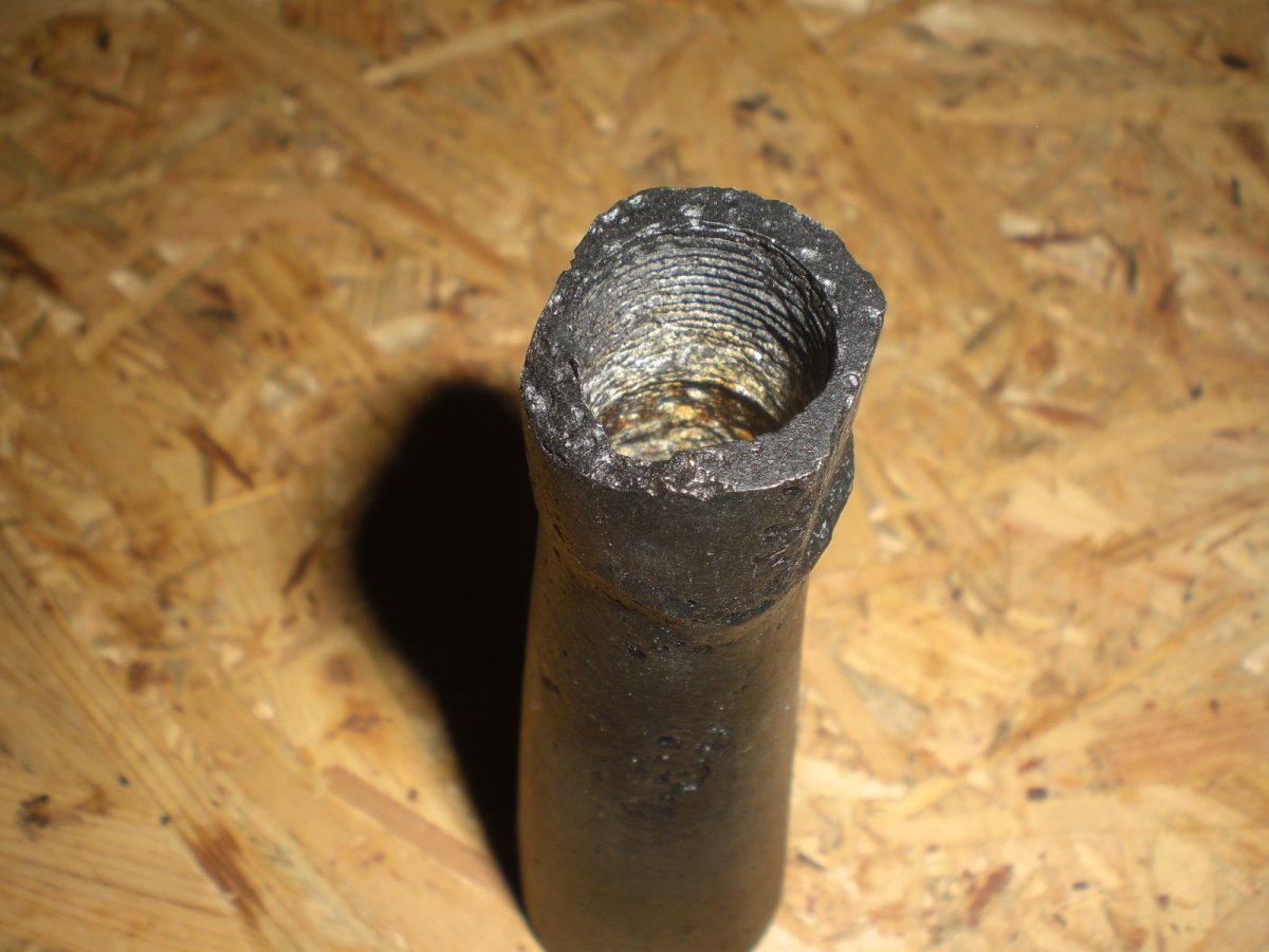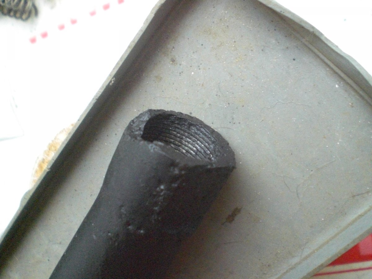 Вычищено до белого металла. На " юбке" рем вставка. Вырезана полоса 1 на 7 см. Металлическая вставка припаяна оловом. Залито эпоксидной смолой, для металла. Все раковины также заполнены. Зашлифовано и покрашено. Смола черного цвета. При возможных сколах светлых пятен, как при обычной шпатлевкой, не будет.Резьба чуть прослаблена, нужно прогонять на стволе. Остальное на фото. Перевыставляю. Случайно скинул в ЗАВЕРШЕНЫЕ.