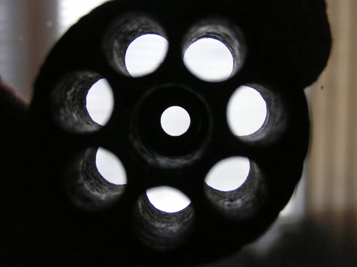 Всё на фото. Со вспышкой и без. Каморы на расшлифованы, родную схп гильзу не дует, мелкая сыпь некритична. Храповик под реставрацию, есть два пропуска, нужно доворачивать барабан рукой. Барабан имеет равномерную сыпь по окружности, практически одинаков со всех сторон. На фото показан с разных сторон.