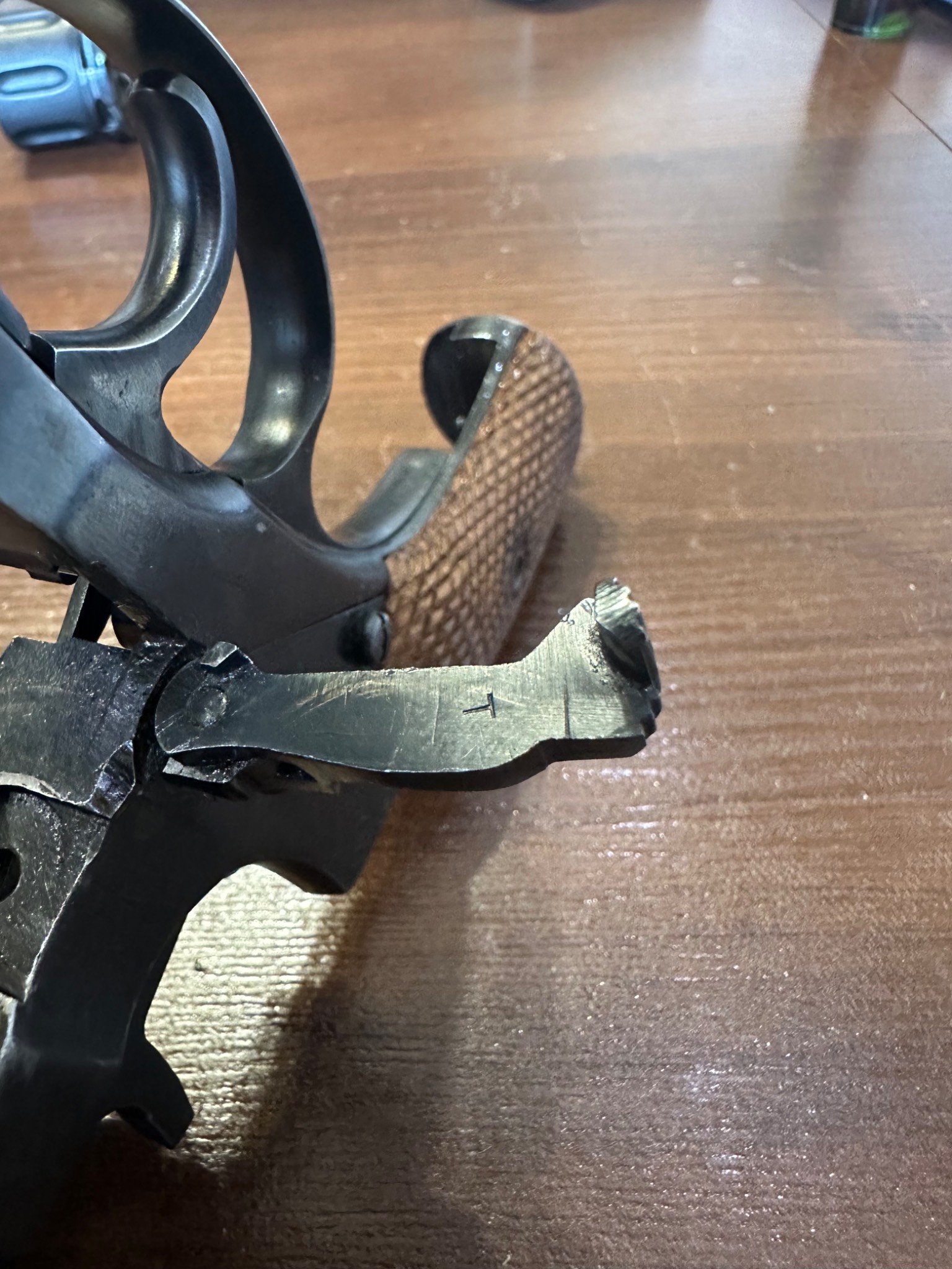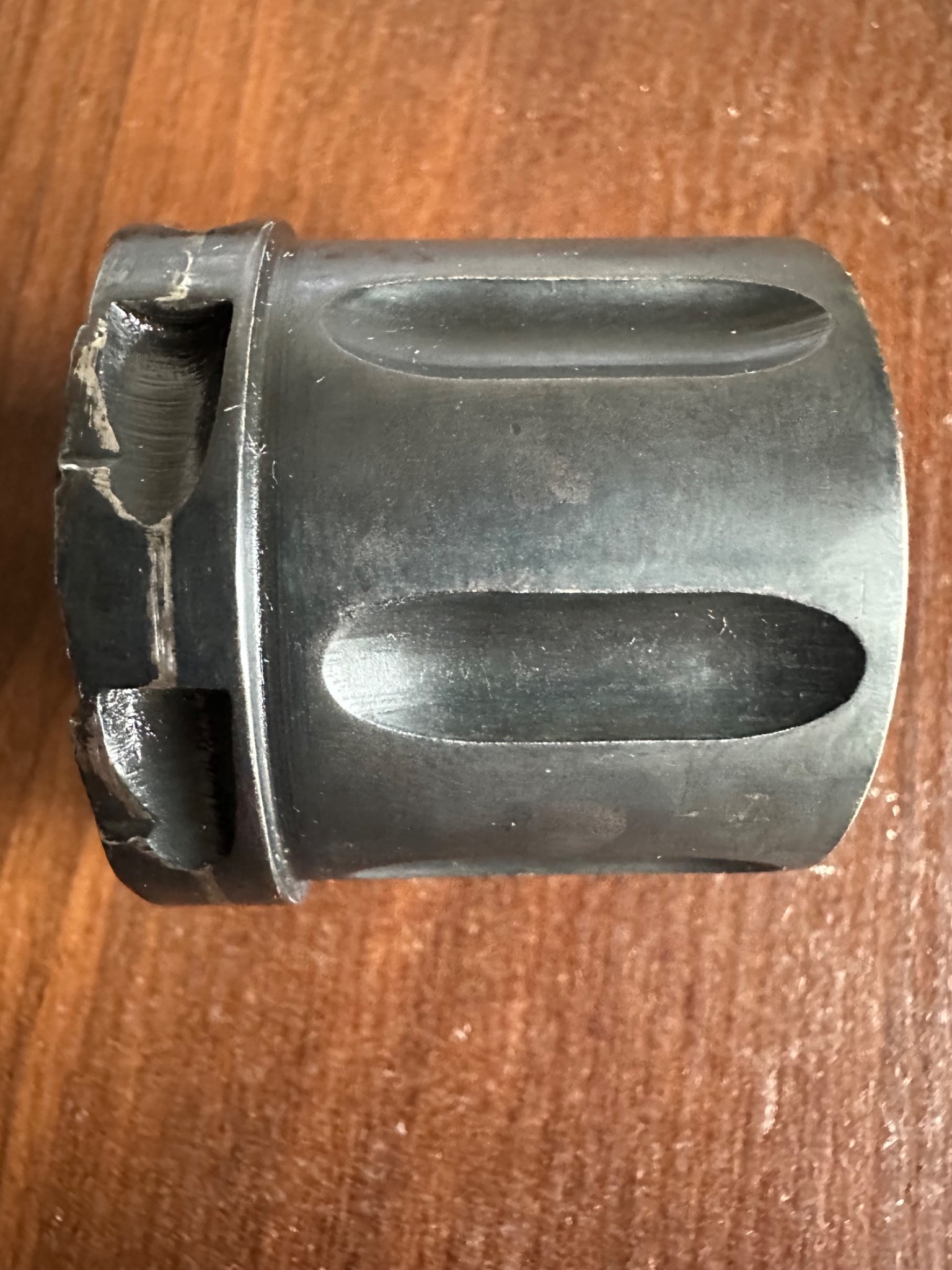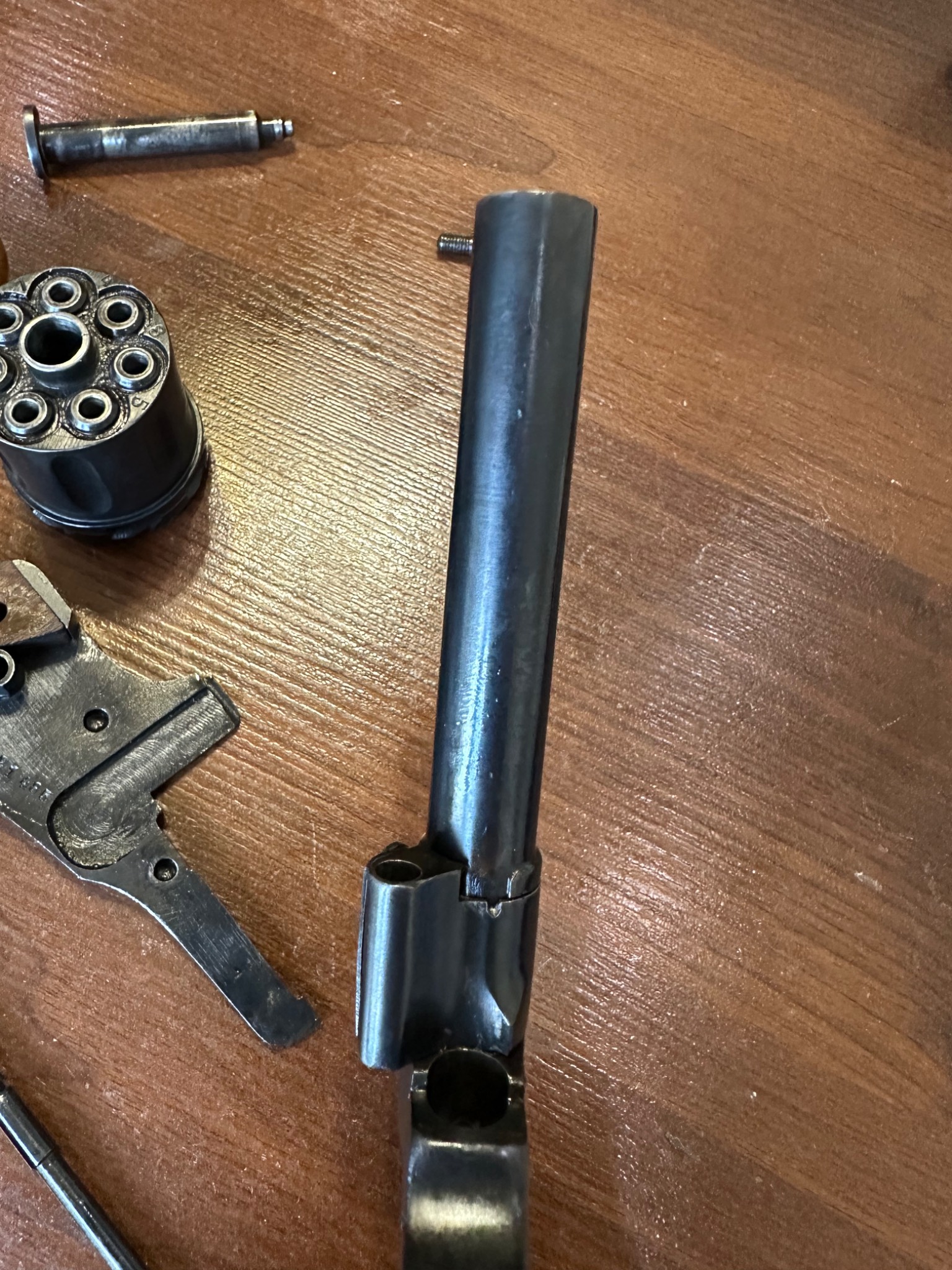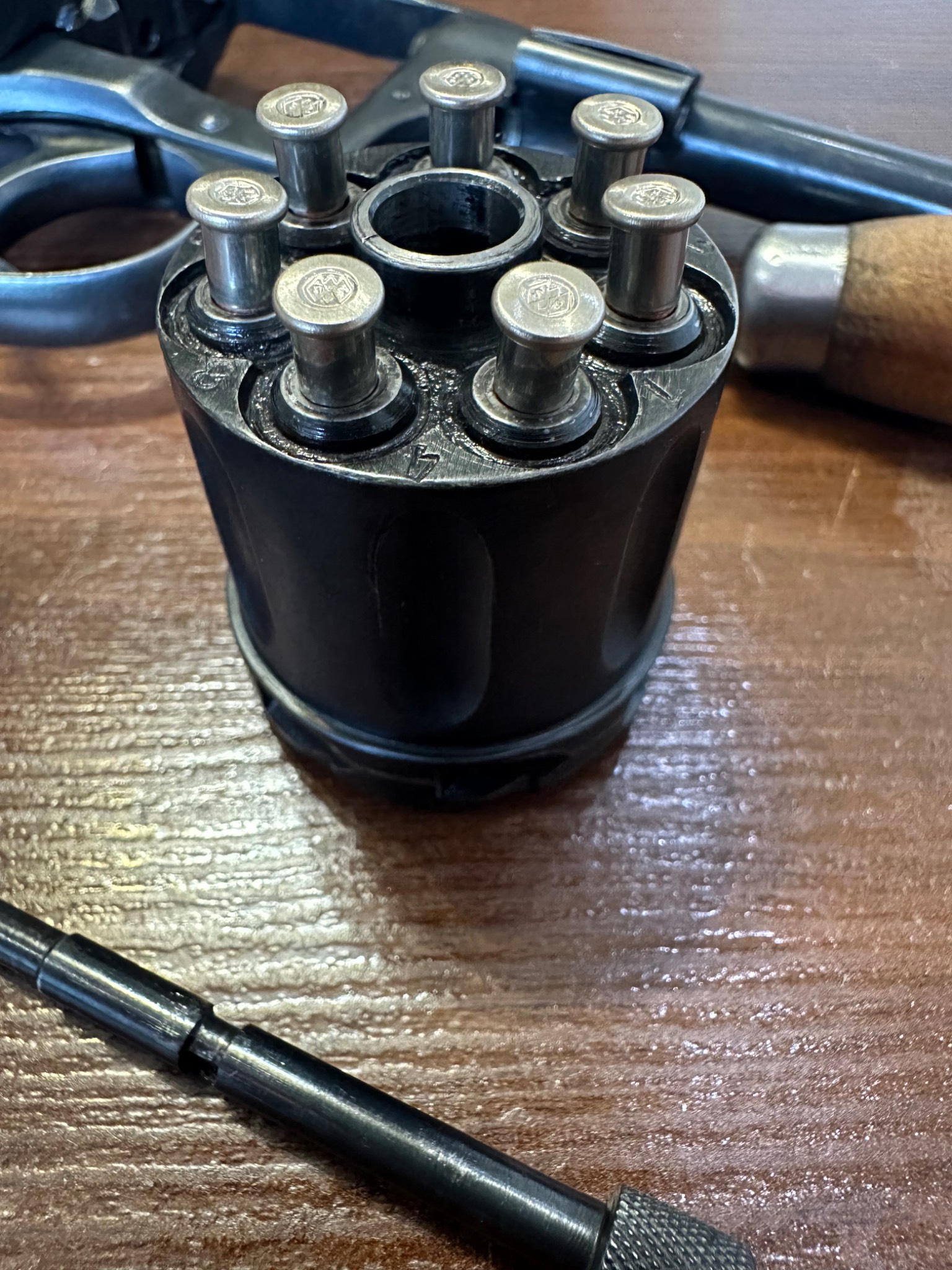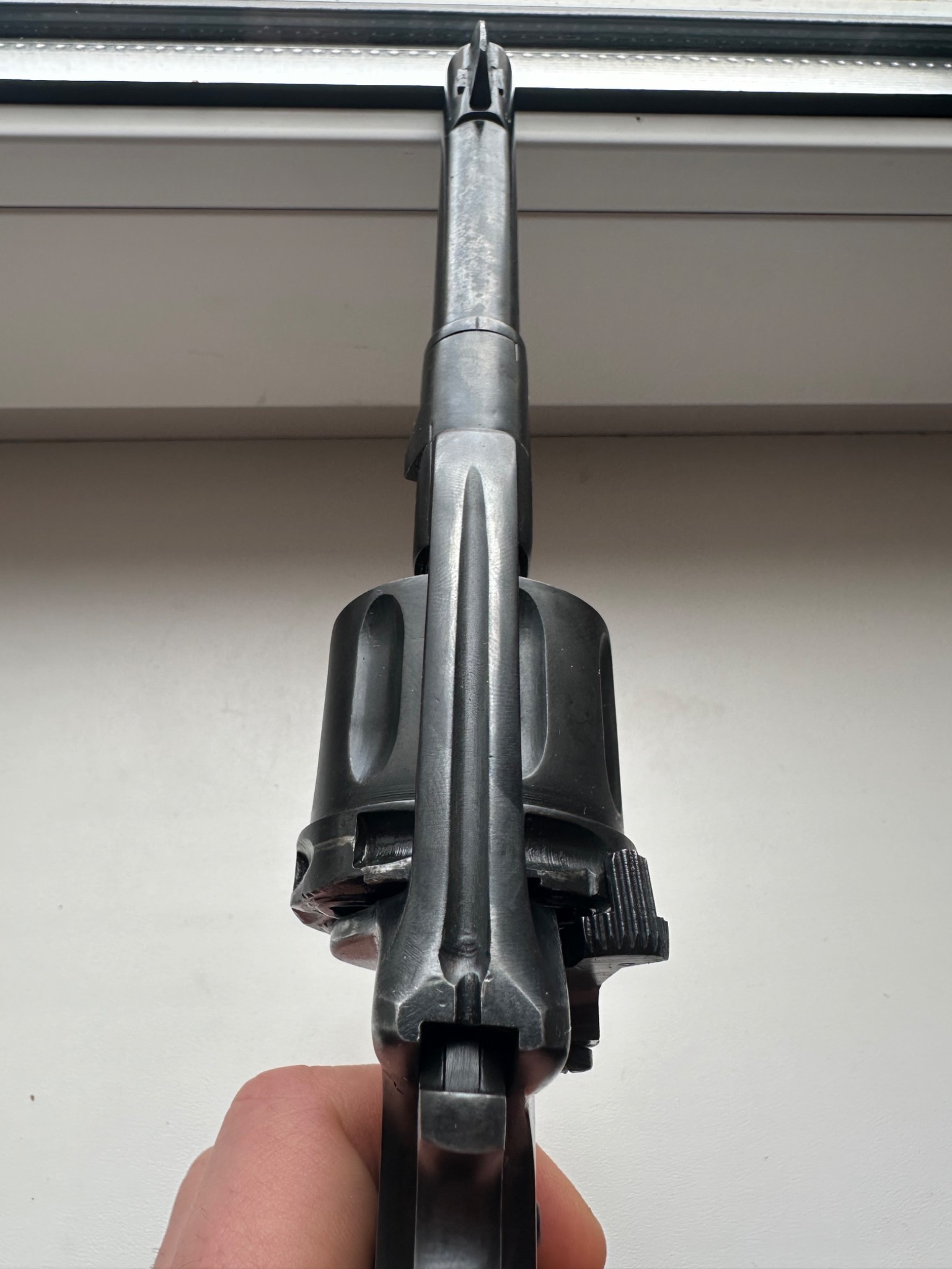 Наган Гром 1928 производства СОБР, почти все детали на молотках, ствол в родном калибре, на дульном срезе видны нитки, в стволе лейнер нарезной 4 мм, все каморы одного диаметра, скорость полета пули 300 м/с есть тесты через хронограф.