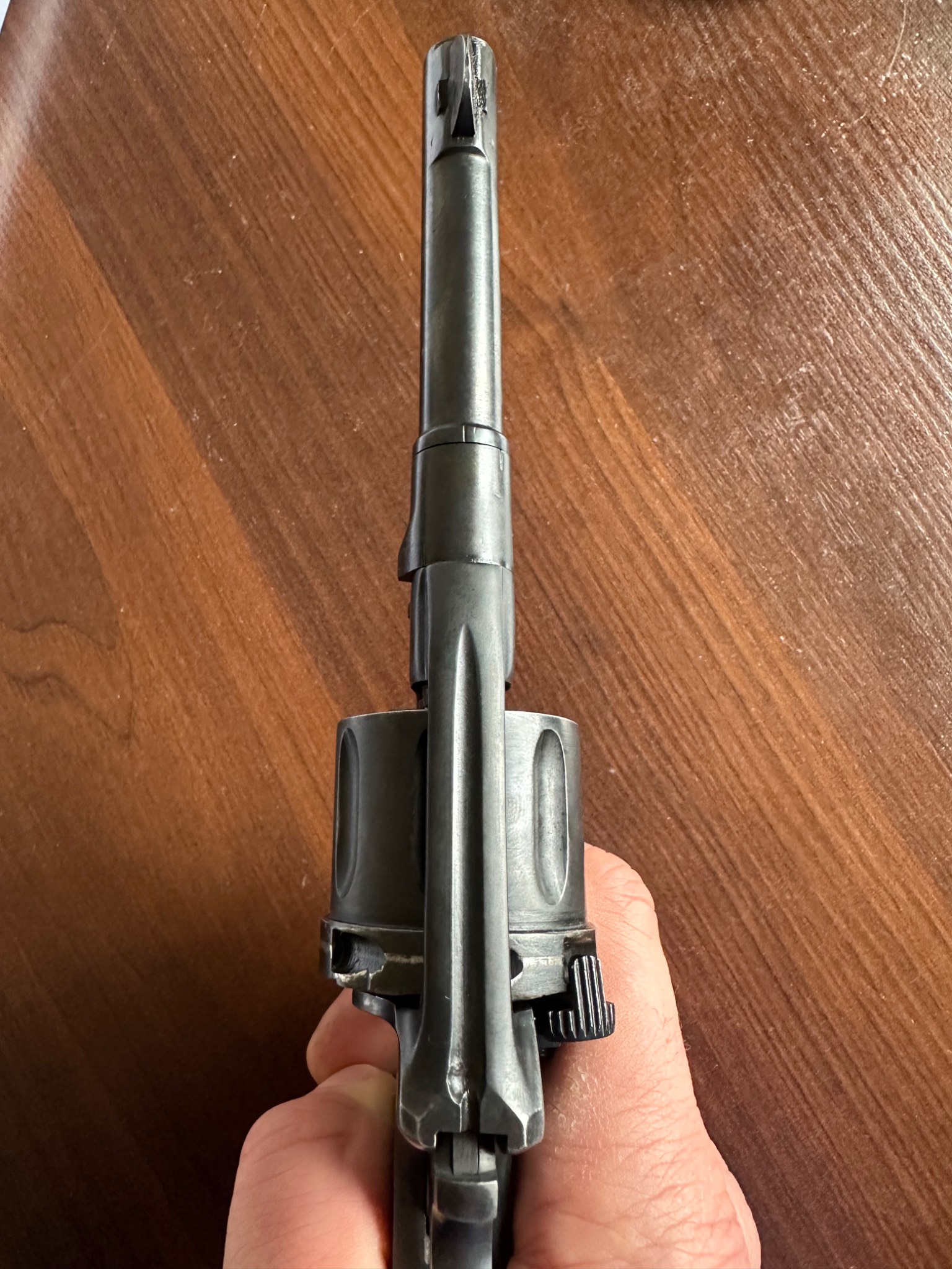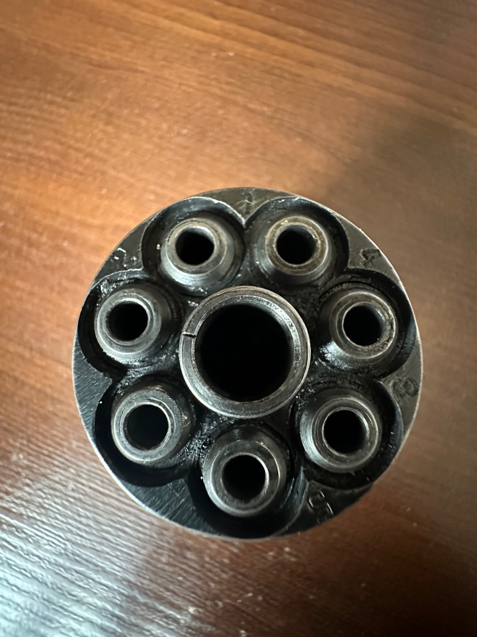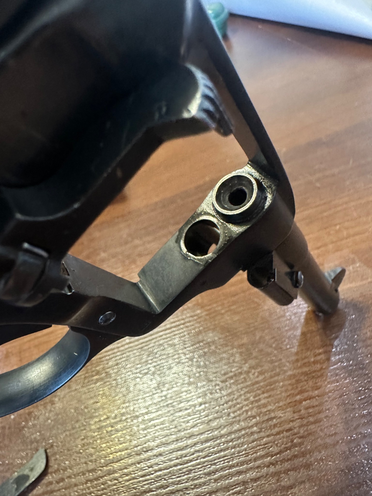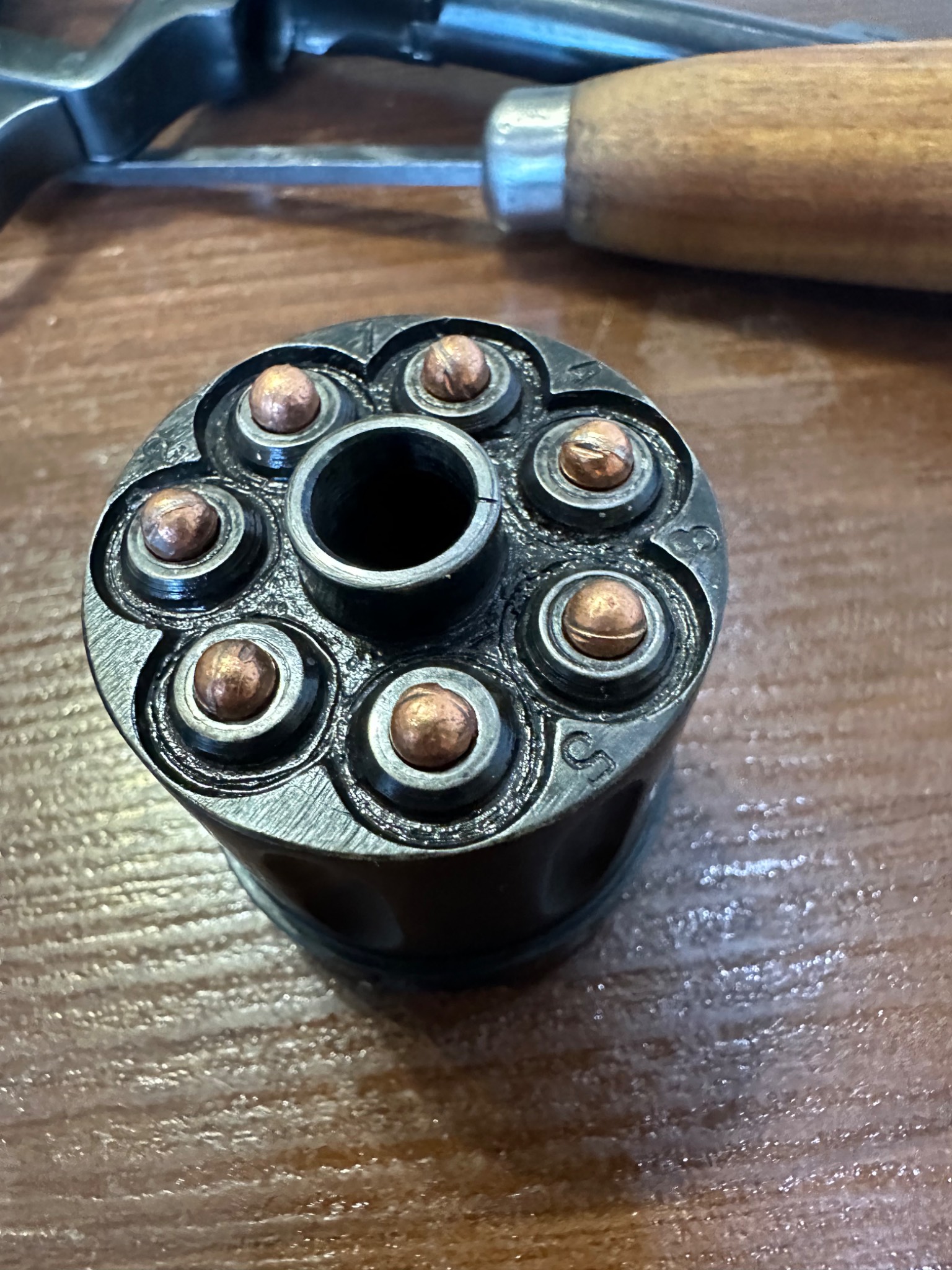 Наган Гром 1928 производства СОБР, почти все детали на молотках, ствол в родном калибре, на дульном срезе видны нитки, в стволе лейнер нарезной 4 мм, все каморы одного диаметра, скорость полета пули 300 м/с есть тесты через хронограф.
