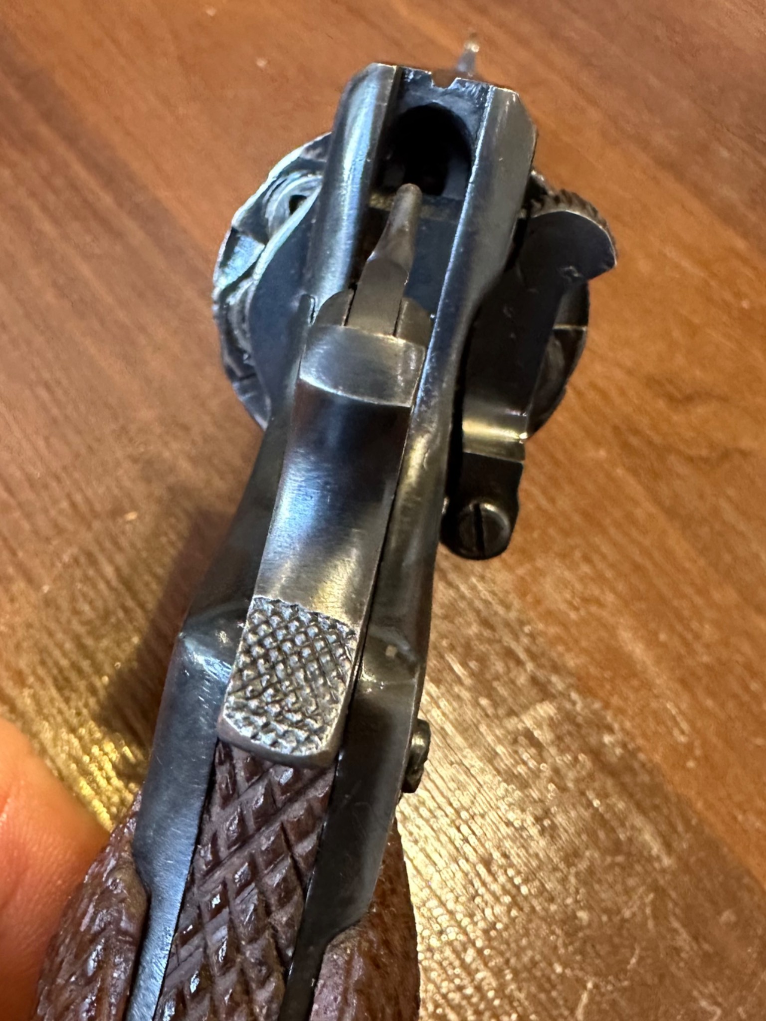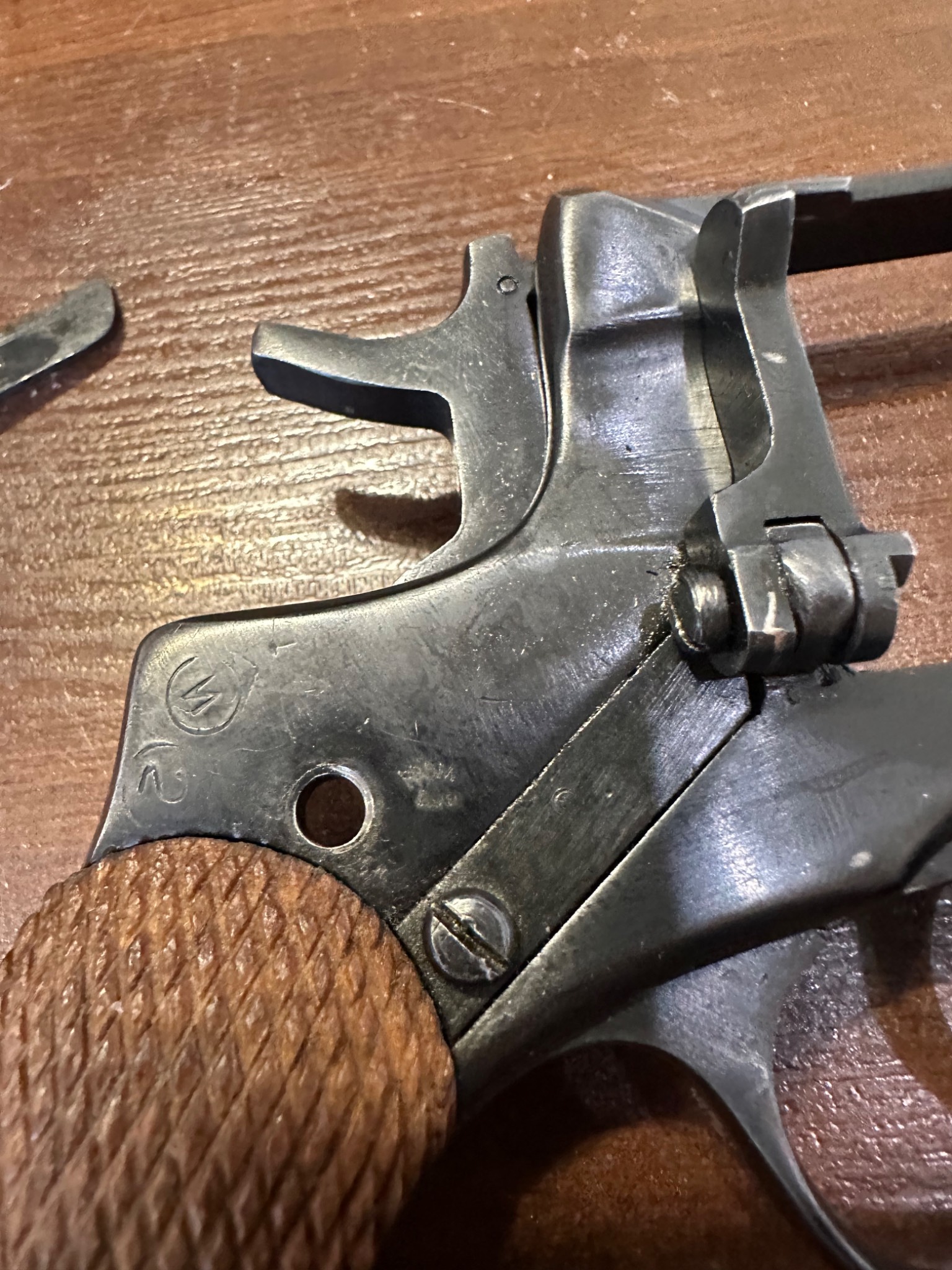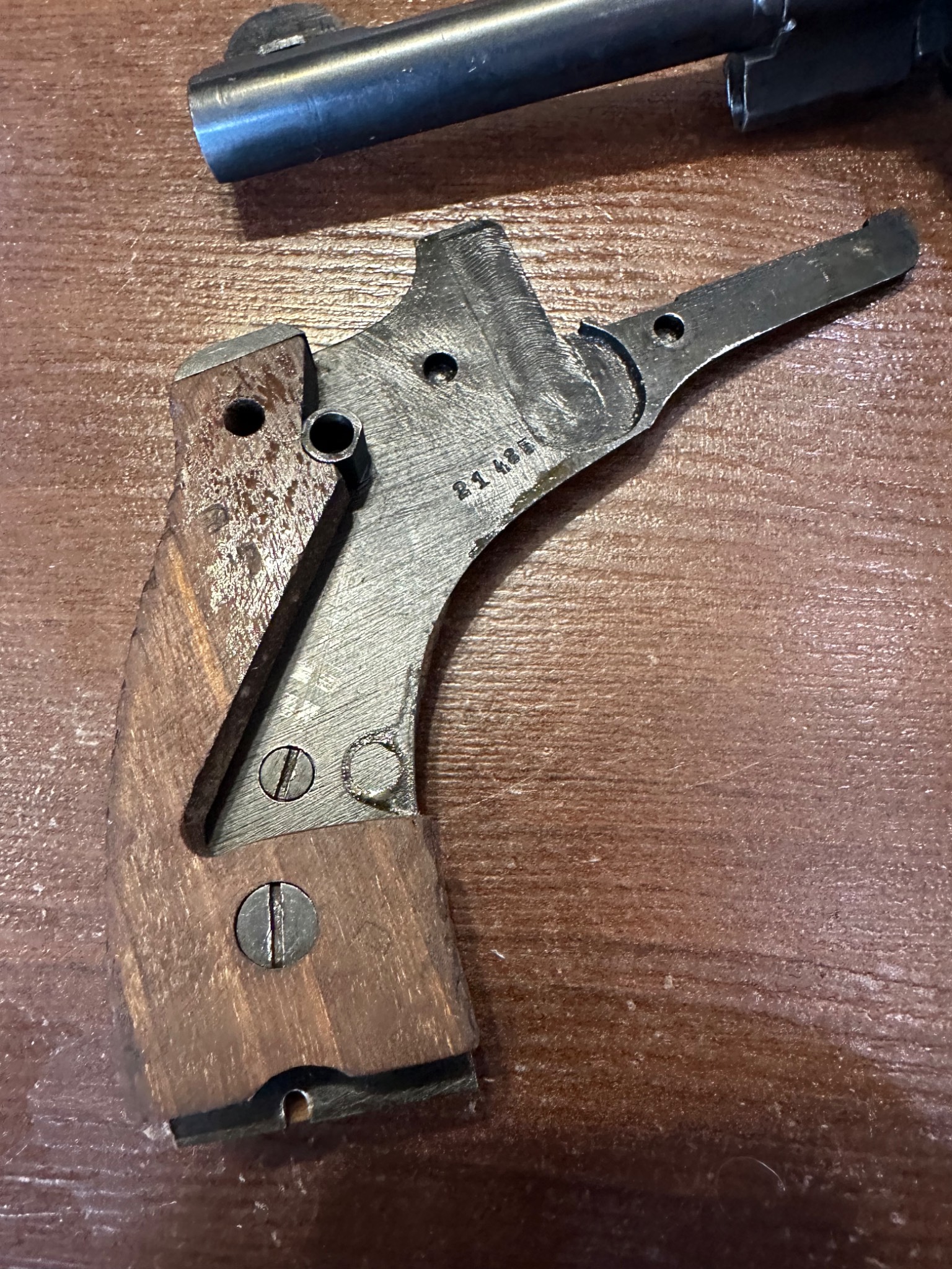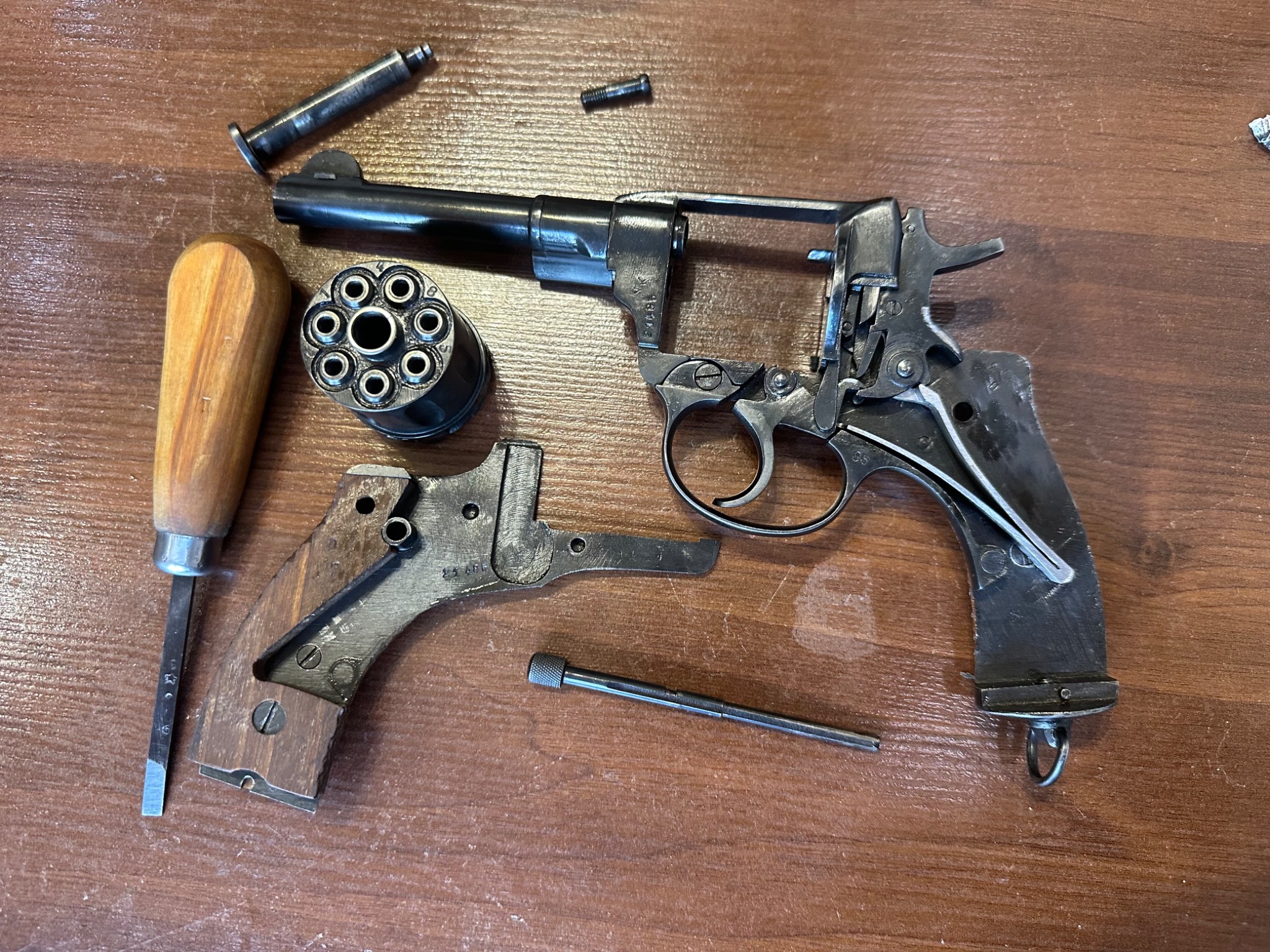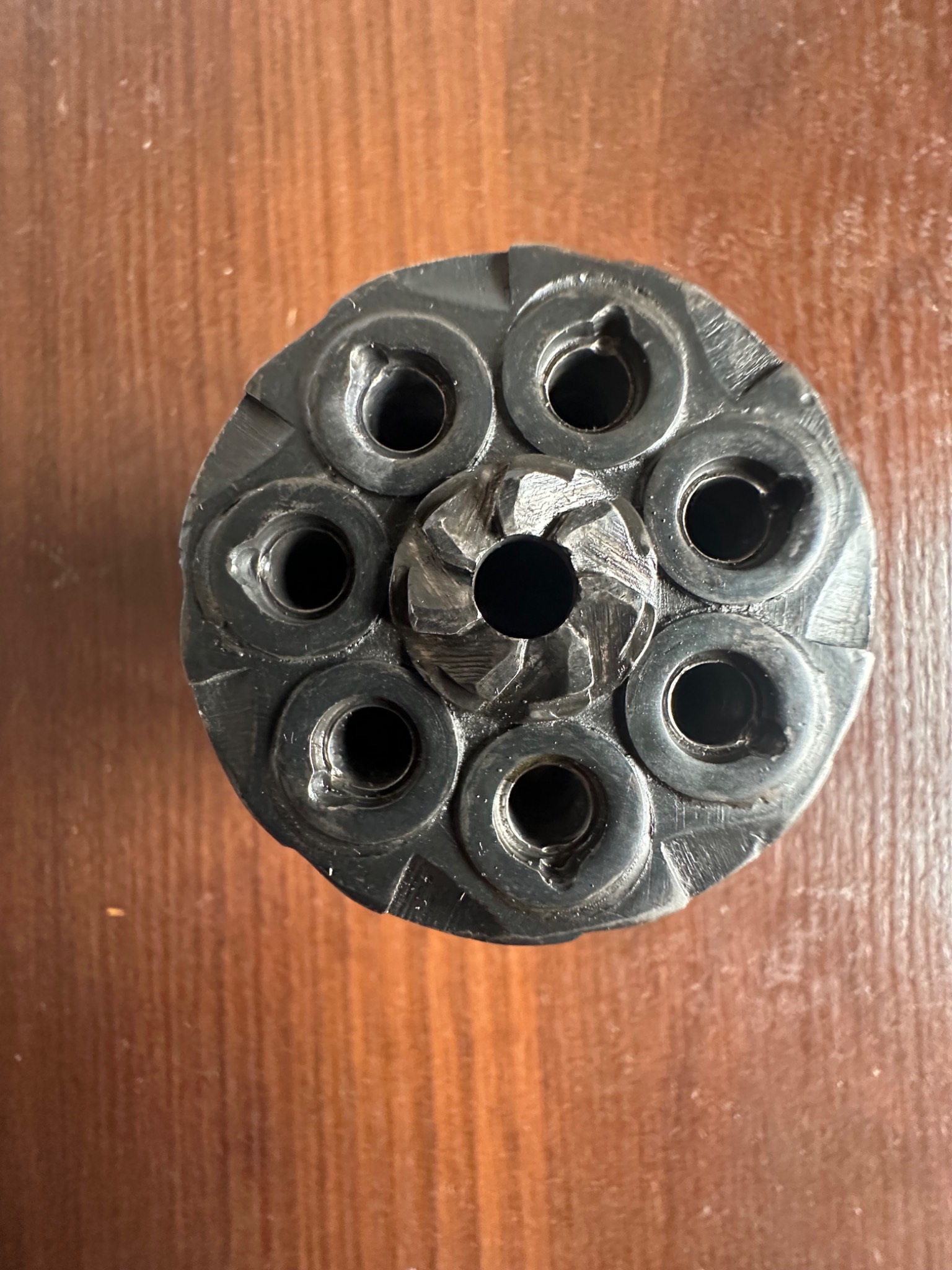 Наган Гром 1928 производства СОБР, почти все детали на молотках, ствол в родном калибре, на дульном срезе видны нитки, в стволе лейнер нарезной 4 мм, все каморы одного диаметра, скорость полета пули 300 м/с есть тесты через хронограф.