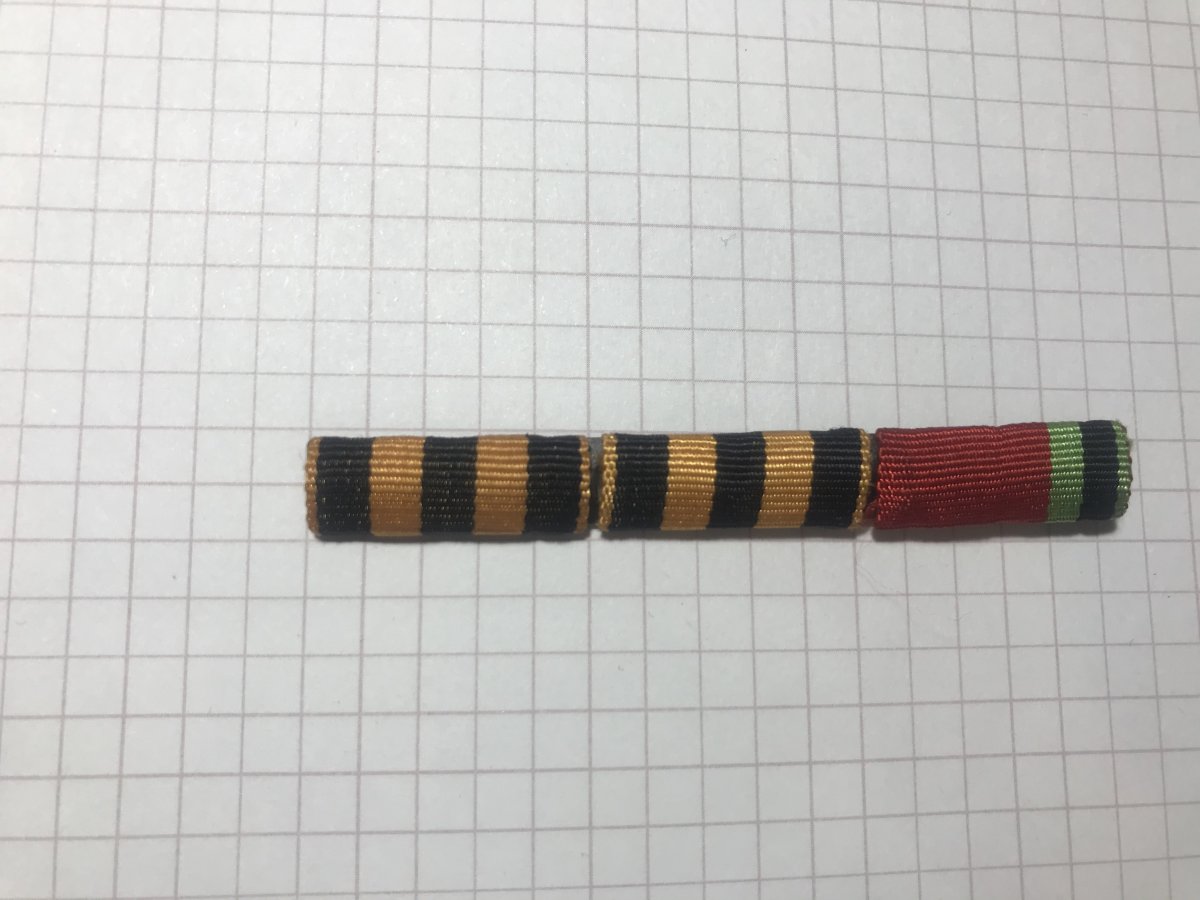 Наградная колодка на 3 награды («Орден Славы», медали: «За победу над Германией в Великой Отечественной войне 1941—1945 гг.», «Двадцать лет Победы в Великой Отечественной войне 1941—1945 гг.»)