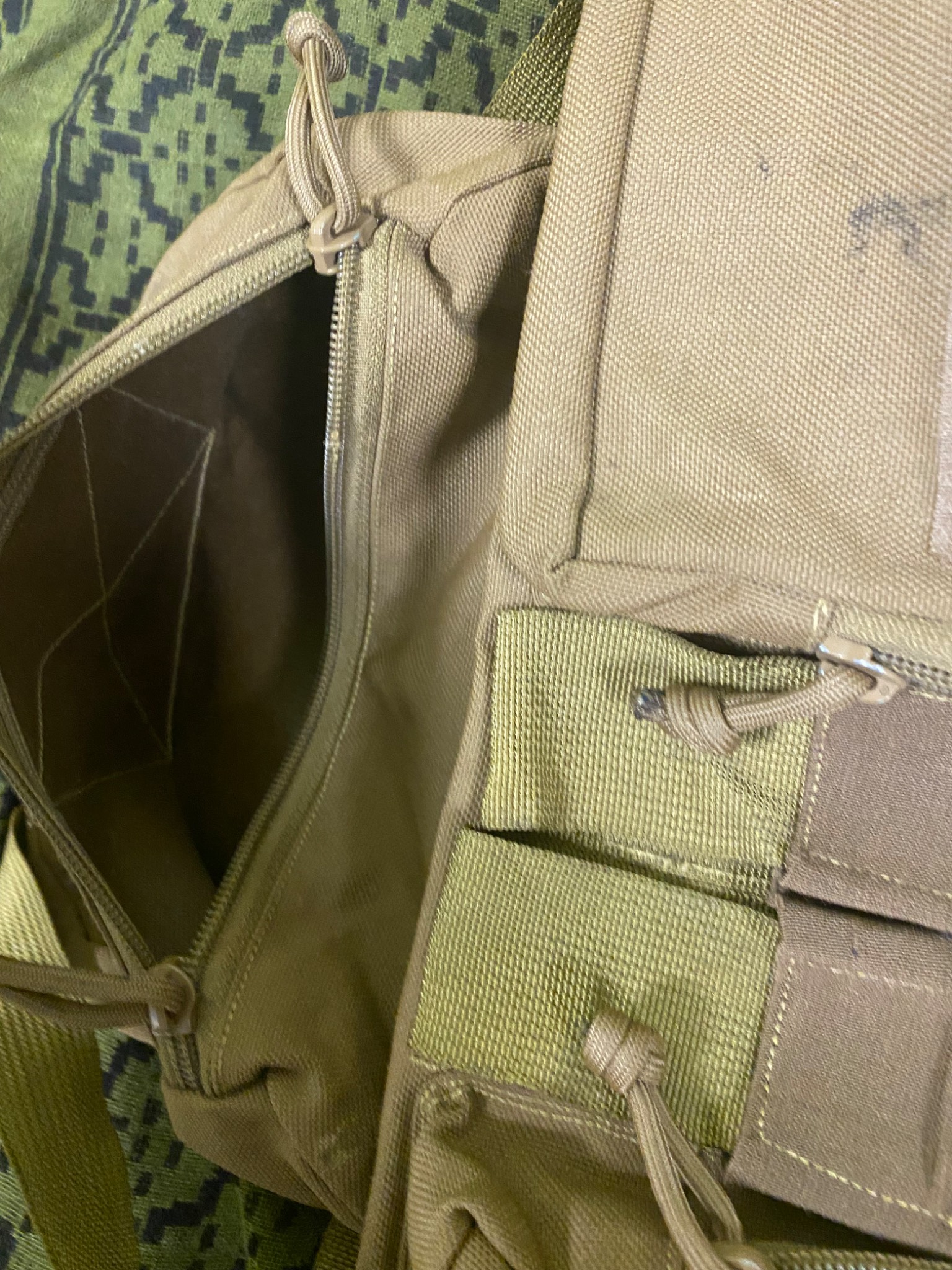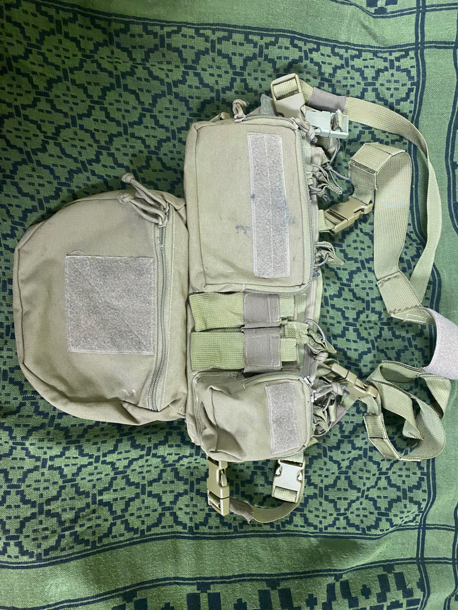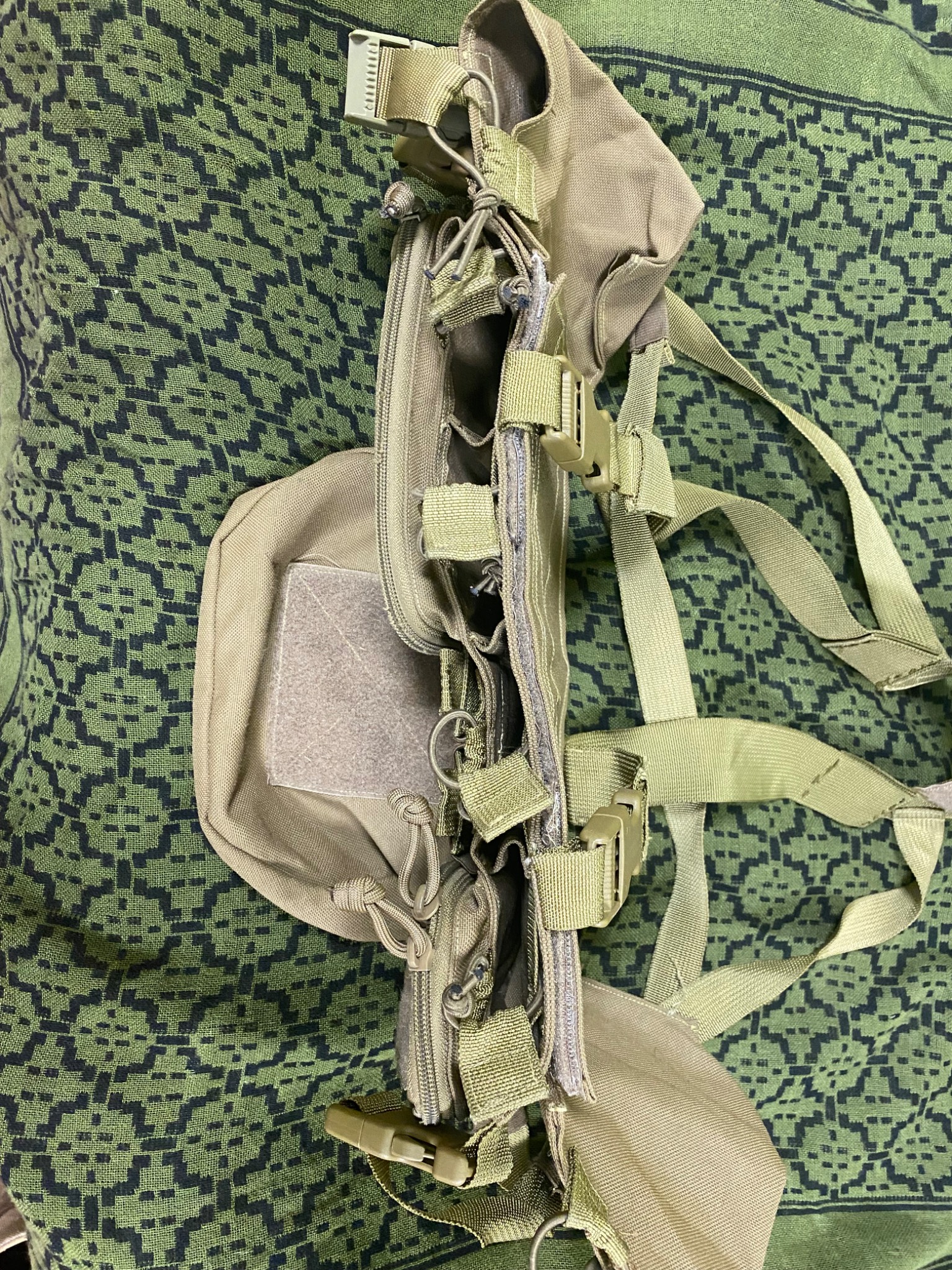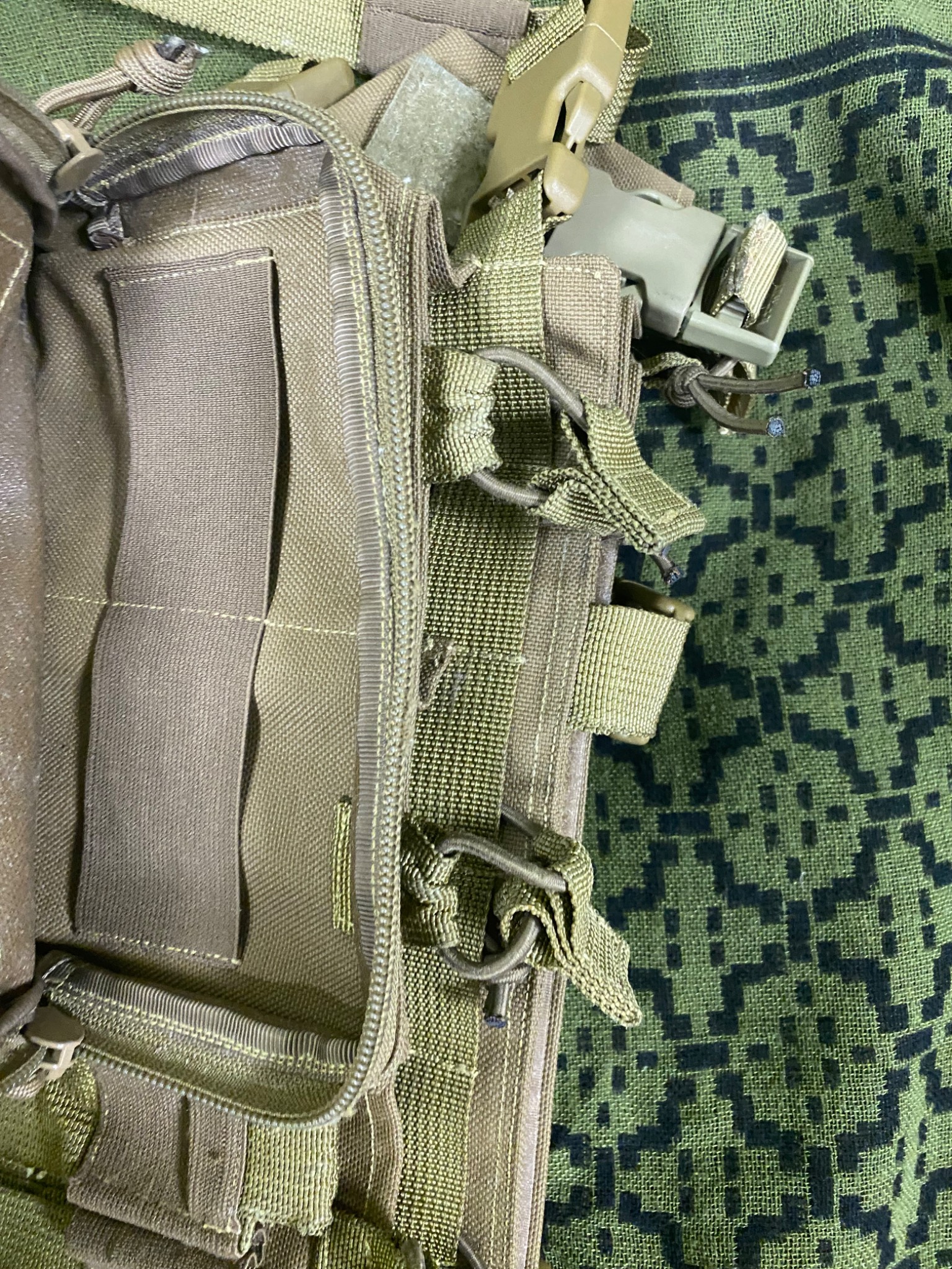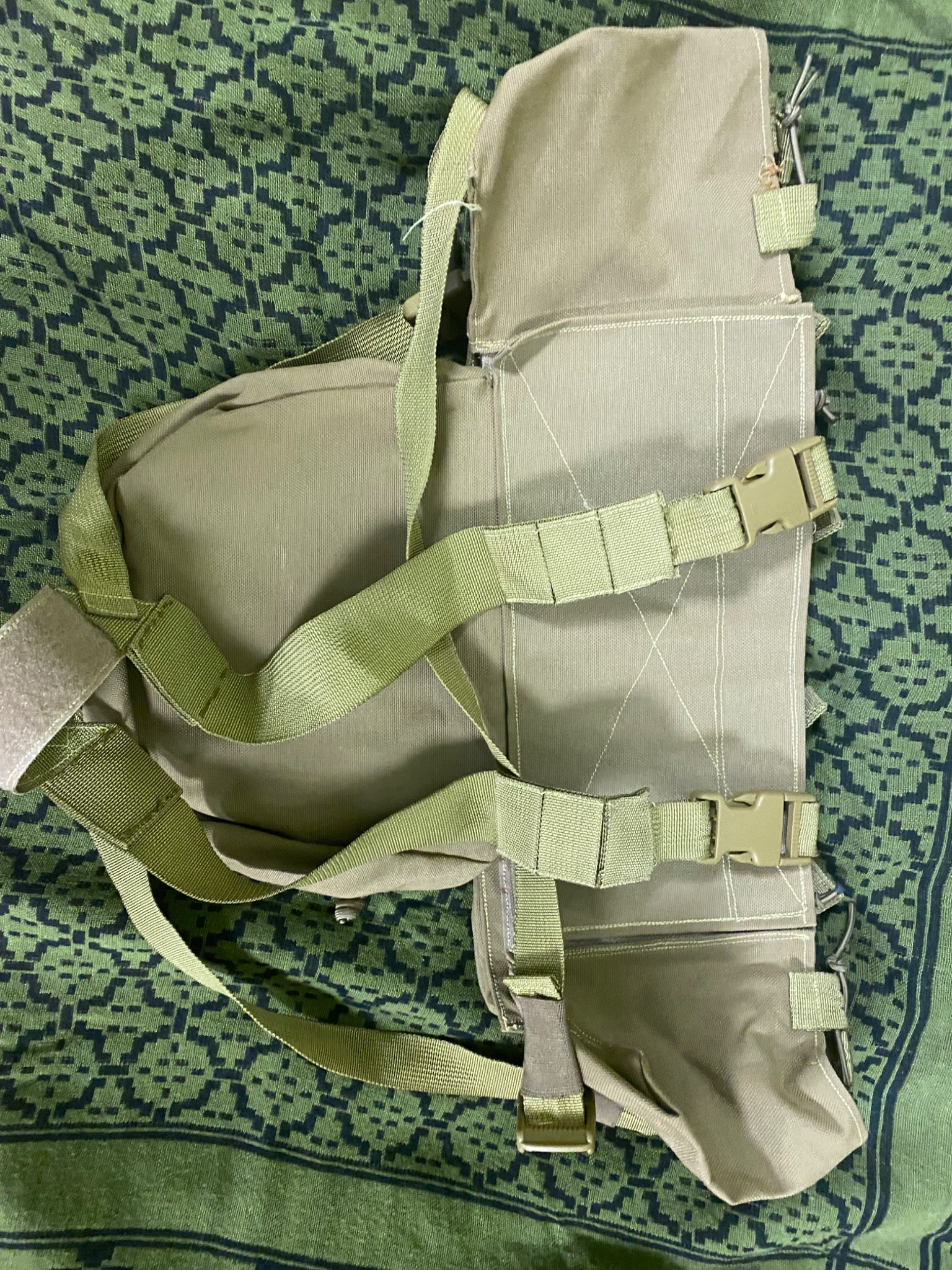 комплекс із 4 підсумками під магазини, два бічних (можна під флягу, два магазини, рації ), напашний вантажний, подвійний під пістолетні магазини, великий та малий вантажні підсумки. «Н» подібні плечі. Все працює досконало. Присутні незначні забруднення, на функціонал не впливають.
