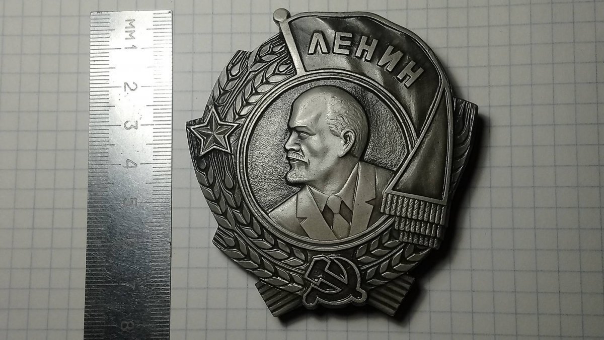 СССР. Накладка в виде высшего ордена Советского Союза — ордена Ленина. Неизвестная мастерская, СССР, 1970-1980 гг. Алюминиевый сплав, 51,36 гр. Размер 77х76 мм. Вещь редкая .