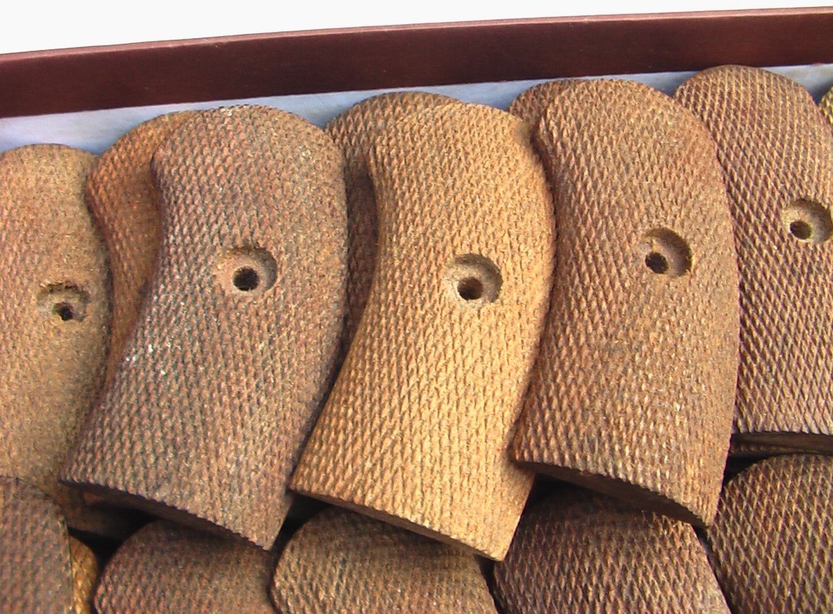 Продам оригинальные новые левые накладки к Нагану.Мелкая насечка-ближе к Бельгийскому типу-плоские- НЕ горбули.Клейм ярковыраженных нет.Ничем Не обрабатывались-состояние -минт.